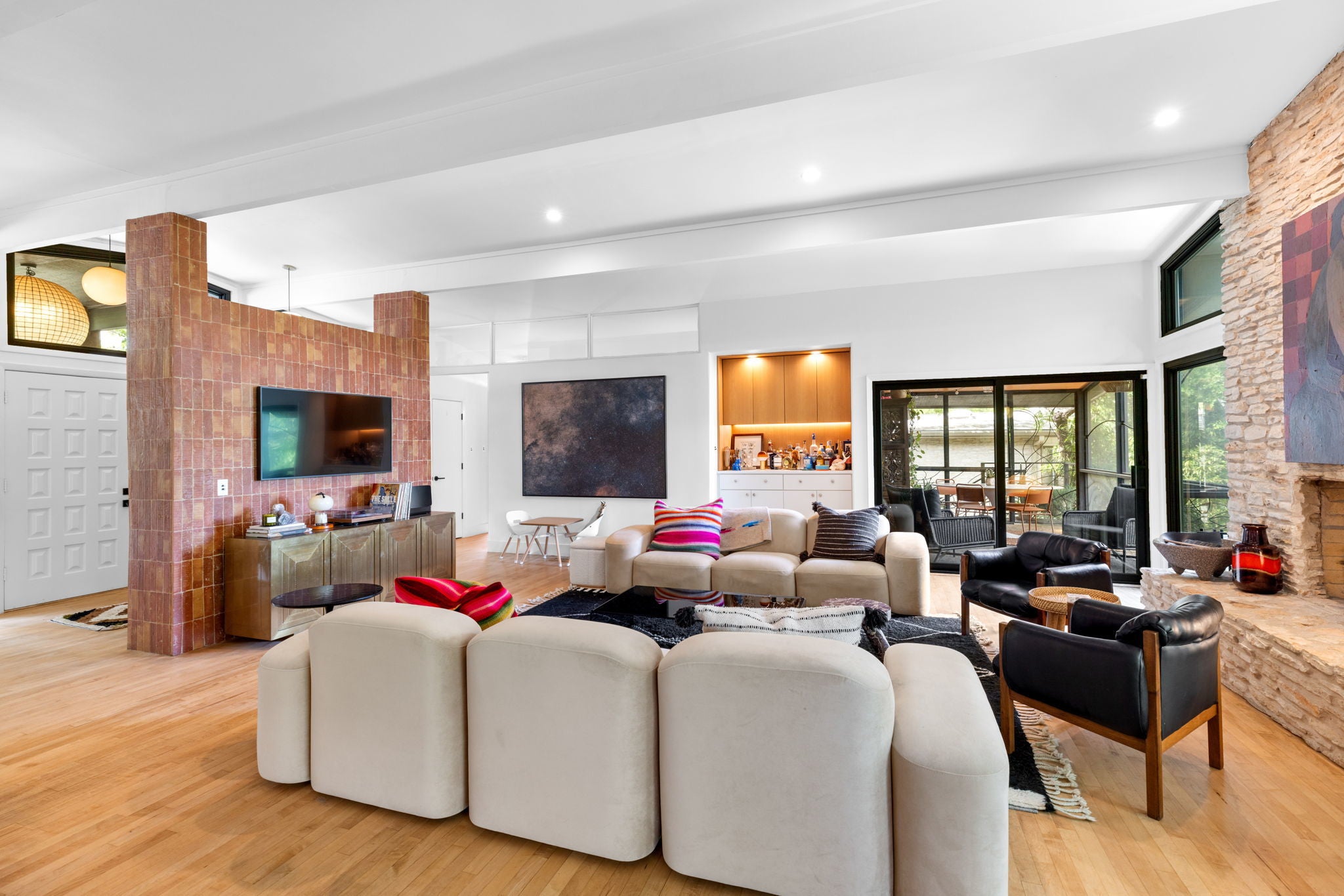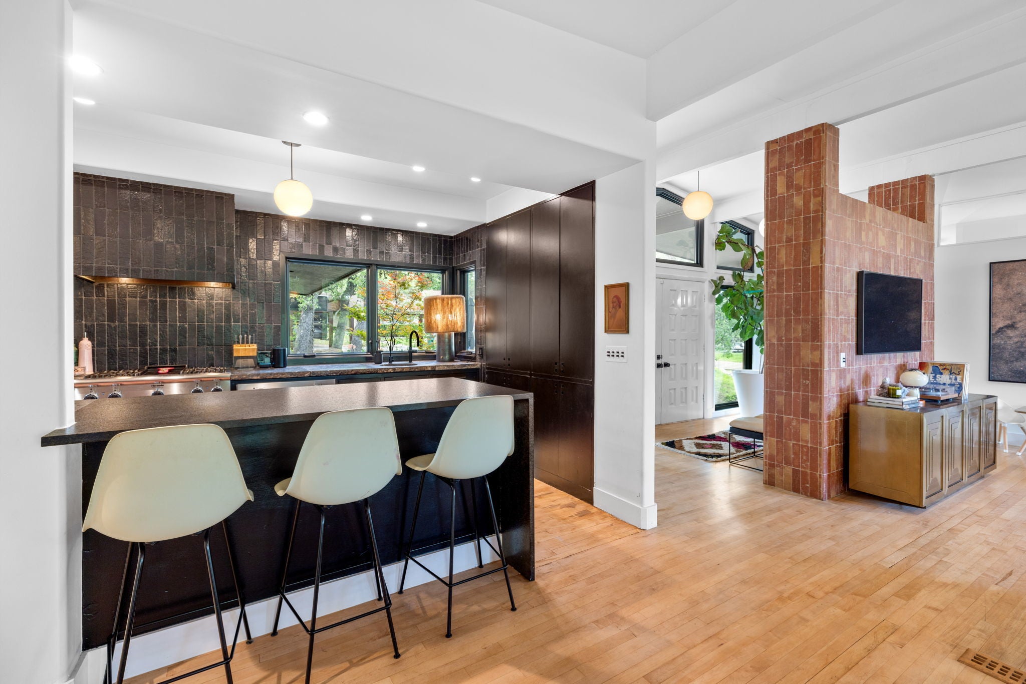 Nestled in the heart of Barton Hills, 1805 Brookhaven blends timeless mid-century architecture with a designer remodel in 20212024. Every detail was elevated by Trailway Builders and ADLA Studio, with extensive upgrades inside and out. Step into light-filled living spaces featuring vaulted ceilings, Windsor + Panoramic Doors with panoramic glass sliders. The chefs kitchen stuns with a custom infinity island, cabinetry by CK&R, floating shelves, black steel cabinetry, and designer appliancesdesigned for both entertaining and everyday ease. The primary suite and bathroom is a true retreat: custom closets (California Closets + CK&R), spa-like bath with new window, soaking tub, designer tile, luxe fixtures, and reconfigured plumbing. Each additional bath was fully reimagined with new cabinetry, finishes, and lighting. Notable highlights: Converted garage (custom doors, mini split) Downstairs 4th bedroom/office with exterior access Custom built-ins throughout (closets, mudroom, laundry) Whole-home updates: all doors, fixtures, rotary light switches, sliders, dimmers, plus Renewal by Andersen windows (2023) Exterior transformation by ADLA (2022) Landscaping, fencing, lighting, and front deck Recent grinder pump (2024) Blending modern craftsmanship with Barton Hills serenity, this home offers effortless indoor-outdoor living, moments from Zilker Park, Barton Springs, and South Congress.
