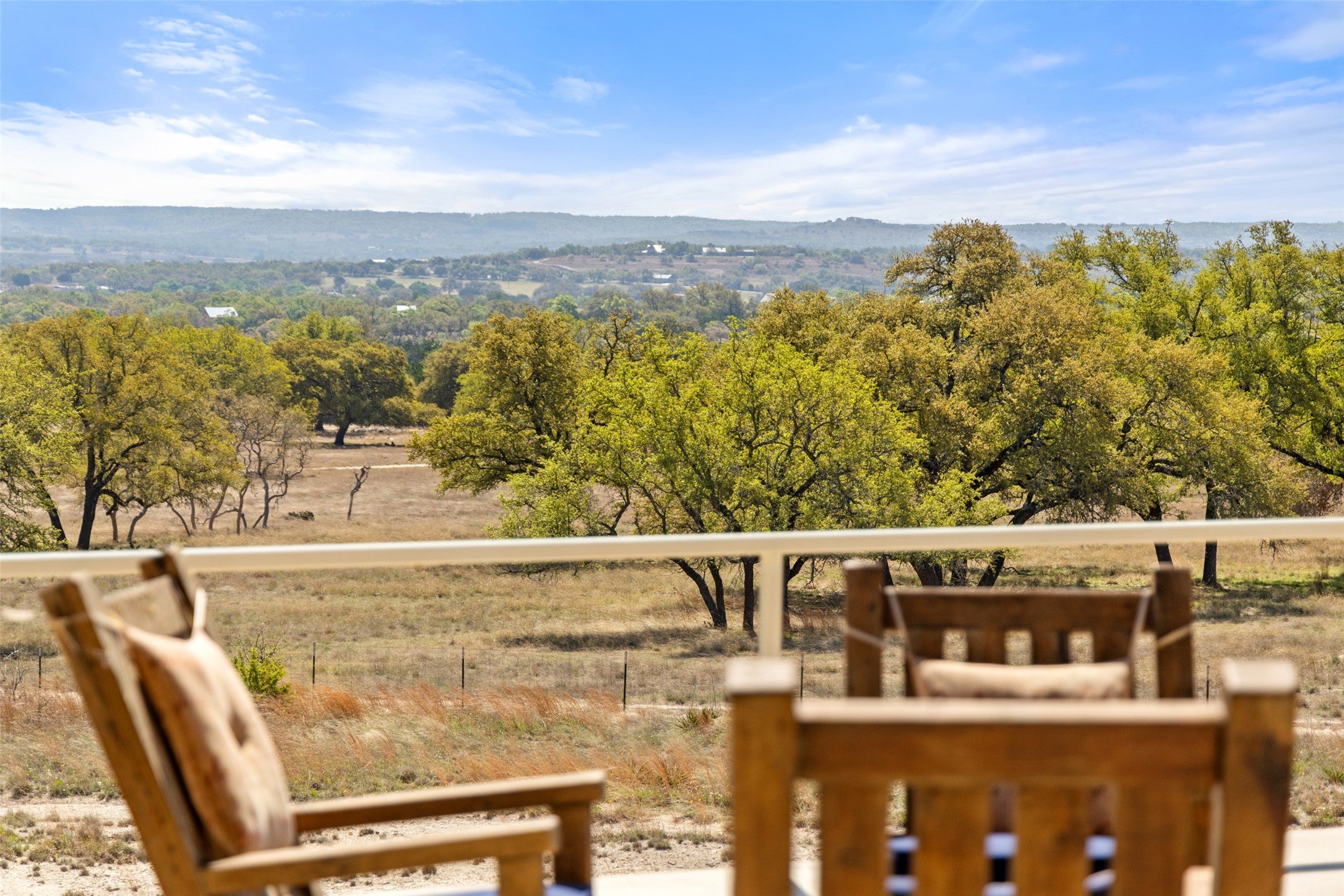 Discover the perfect blend of luxury, functionality, and wide-open Texas living on this exceptional 25-acre Ag-exempt property. Designed for comfort and versatility, this unique estate features two homes, extensive improvements, and stunning panoramic views. The 2,206 sq ft main home offers 3 bedrooms and 2 baths with energy-efficient 2x6 construction, foam insulation, heat pump, central air, and wood stove. Vaulted ceilings and circle-sawn yellow pine floors enhance the kitchen, living area, and primary suite. The kitchen is anchored by a large live-edge granite island, custom cabinetry, and handcrafted wood details throughout. The primary suite includes a double shower, while the home also features an iron front door, restored mahogany doors, central vacuum, CAT5 wiring, and generator-ready setup. Enjoy outdoor living on the expansive 1,700 sq ft porch with sweeping views. The 1,392 sq ft barndominium includes 2 bedrooms, 1 bath, full kitchen, and comes furnished (excluding dining table and beds), ideal for guests, rental income, or multi-generational living. Additional improvements include a 1,547 sq ft heated hangar/shop with hydraulic door, half bath, and attic storage. Each home has its own septic system, with a shared well, propane, tankless water heaters, RO systems, and water softeners. Property features a 500-ft private runway, horse facilities, hay/tack barn, round pen, chicken coop, equipment cover, irrigated garden, and peach orchards. Fully fenced with gated entry and paved roads. Minimal deed restrictions offer flexibility without sacrificing quality.