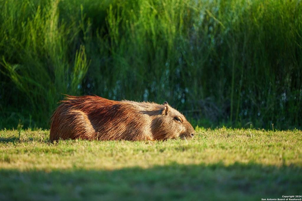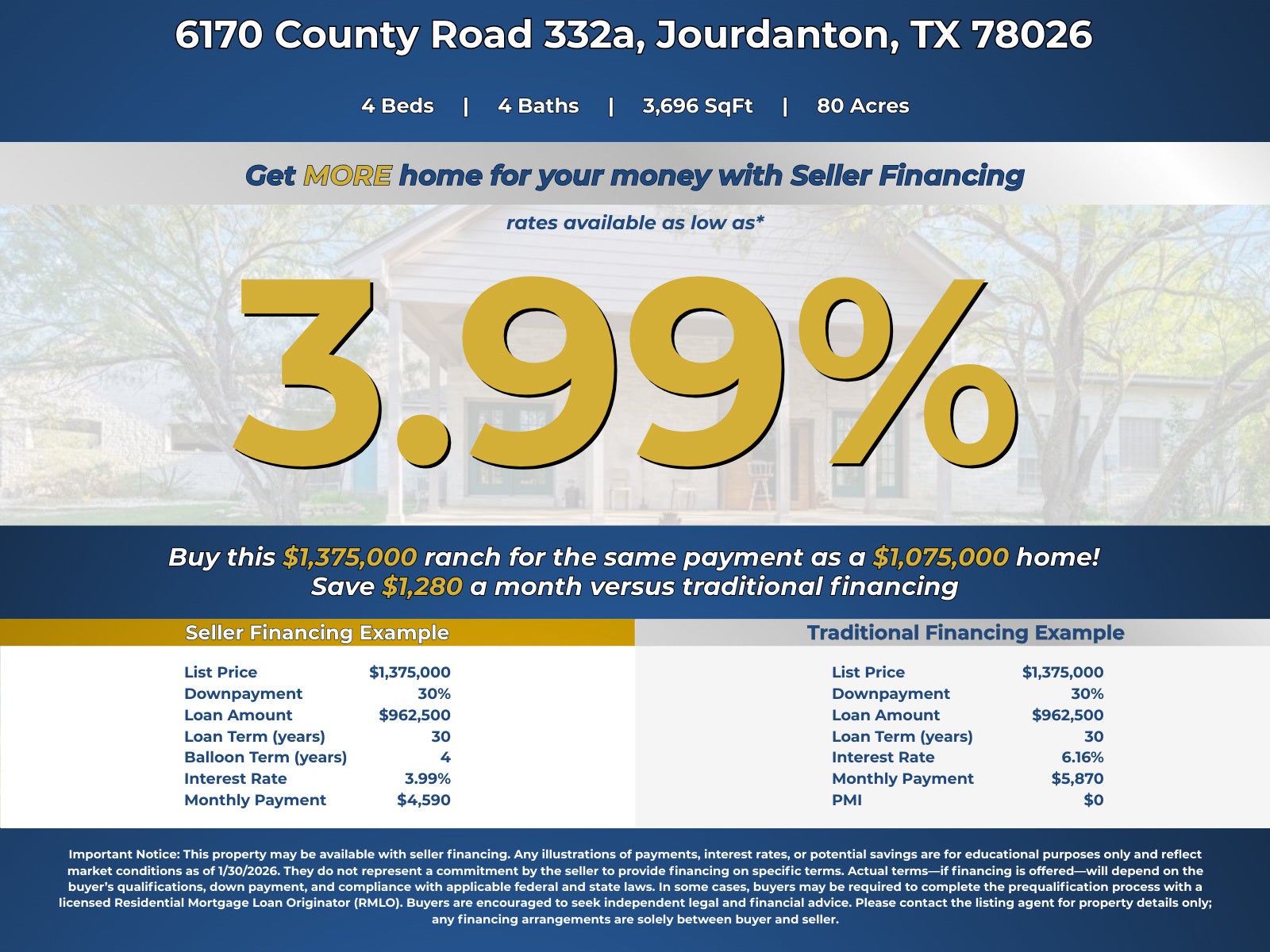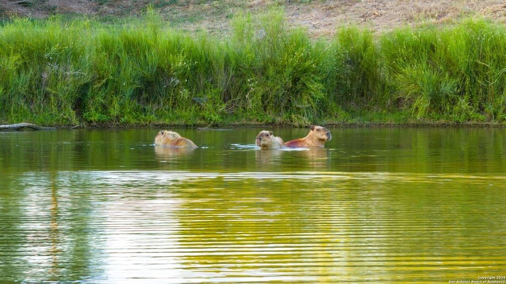 Escape to luxury and adventure at 6170 CR 332, Jourdanton, TX 78026! This breathtaking 80-acre ranch offers the perfect blend of upscale living and outdoor recreation. The 3,696+- square feet main house features 4 bedrooms, 4 bathrooms, a media room, and a study, with large windows that fill the home with natural light and provide stunning views of the landscape. Guests can enjoy a 1, 271+- square feet guest house with 2 bedrooms and 1 bathroom, along with a hunter's efficiency cabin equipped with all the essentials. The 7+- acre lake, stocked with Channel and Flathead Catfish, Florida Bass, and Coppernose Bluegill, features two fishing docks, making it ideal for year-round fishing. The lake is maintained by an automatic well system and retention dam for optimal water levels. The property is fully enclosed by a high fence, perfect for managing the diverse wildlife, including Rio Grande Turkeys, Feral Hogs, and White-tailed, Axis, and Red Deer. Deer pens and livestock pens offer space for raising animals, making this a versatile working ranch. Exotic capybaras thrive by the lake, offering unique wildlife observation. Additional amenities include a swimming pool, cabana, outdoor pavilion with grill and smoker, deer feeders, hunting blinds, and more. Whether for family gatherings, hunting, or a private retreat, this property offers a one-of-a-kind experience. Don't miss out on this exceptional ranch! Square footage is a current estimate. Taxes are an approximation with agricultural exemption. Please allow 24-hour notice for showings. Seller financing available with rates as low as 3.99%.