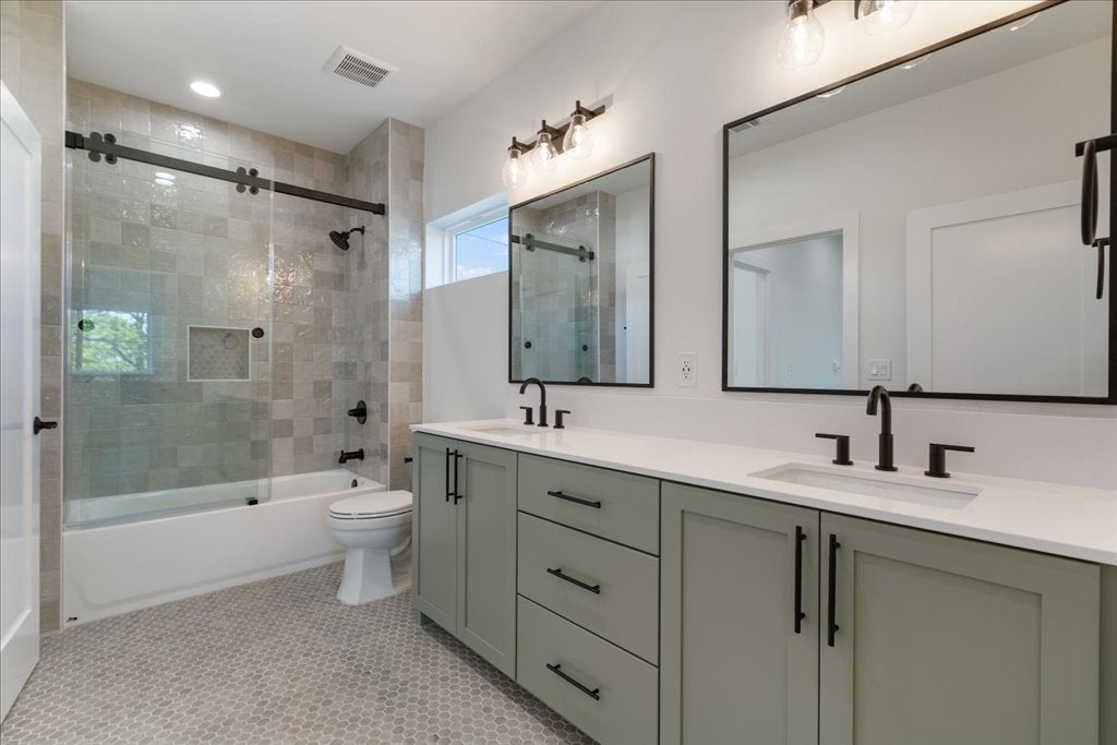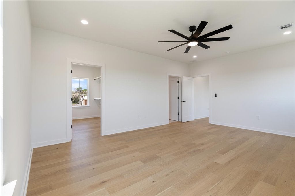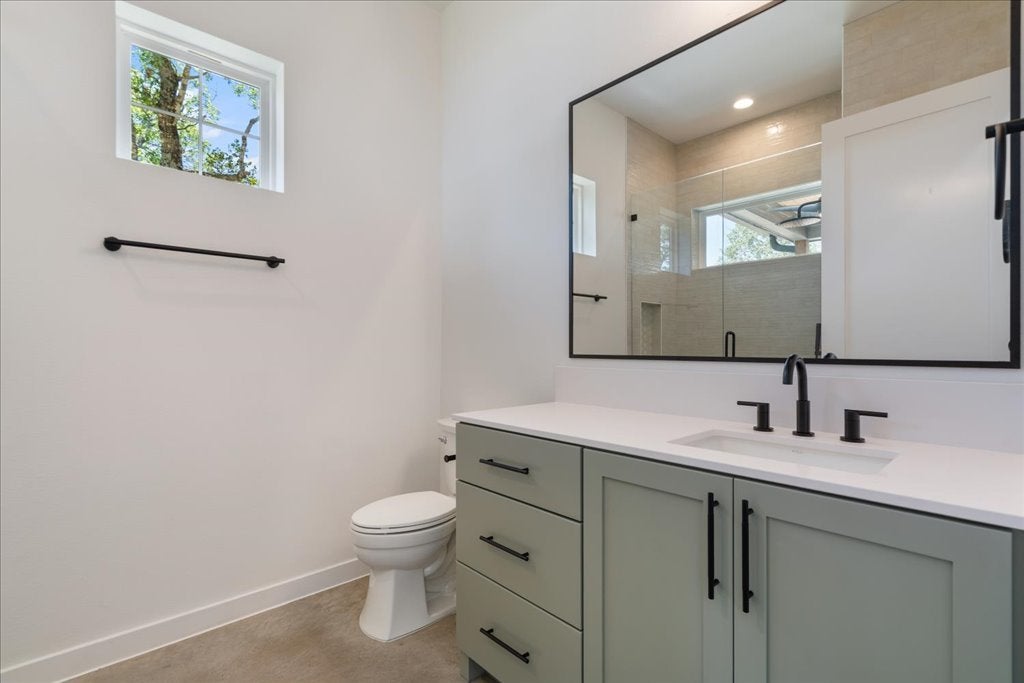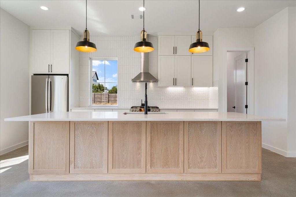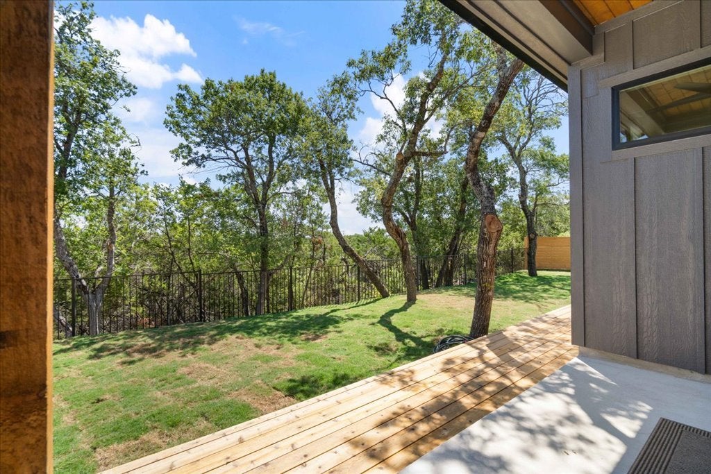 Welcome to 8609 Nina Lane, a modern farmhouse where contemporary design meets the serenity of the Hill Country. This brand-new 4-bedroom, 3.5-bath, 3,093 sq. ft. home offers refined craftsmanship, natural finishes, and sweeping views. The open-concept living area is anchored by a striking floor-to-ceiling gas fireplace, framed by walls of windows that flood the space with light. The chef’s kitchen—with quartz countertops, custom cabinetry, and an oversized island and large walk in pantry—flows seamlessly into dining and living areas, creating the perfect setting for gathering with family and friends. Polished concrete floors downstairs provide a sleek, durable foundation, while engineered hardwood floors upstairs bring warmth and character. The primary suite offers a peaceful retreat, views for days, a spa inspired bath featuring dual vanities, soaking tub, and an extra large walk-in shower. A highlight of this home is the downstairs Junior Suite with its own private patio, walk-in closet with stackable washer/dryer hookup, and a private ensuite bathroom—ideal for multigenerational living or offering guests comfort and privacy. Upstairs, a versatile loft adds room for a media area, playroom, or office, along with two guest bedrooms with a shared bathroom and a large walk in Laundry Room with a view upstairs side by side washer dryer hookup.! Inspire Vinyl – White with Black laminate exterior LowE Argon filled Single hung, sash style, easy open for exterior cleaning from inside the home Outdoors, enjoy canyon sunset views from the back patio and partial Lake Travis views from the front, capturing the very best of Jonestown living. Designer finishes and organic modern details tie the home together, offering both sophistication and comfort. Just minutes from Lake Travis, hiking trails, and the conveniences of Cedar Park and Austin, this home perfectly blends relaxation and accessibility.