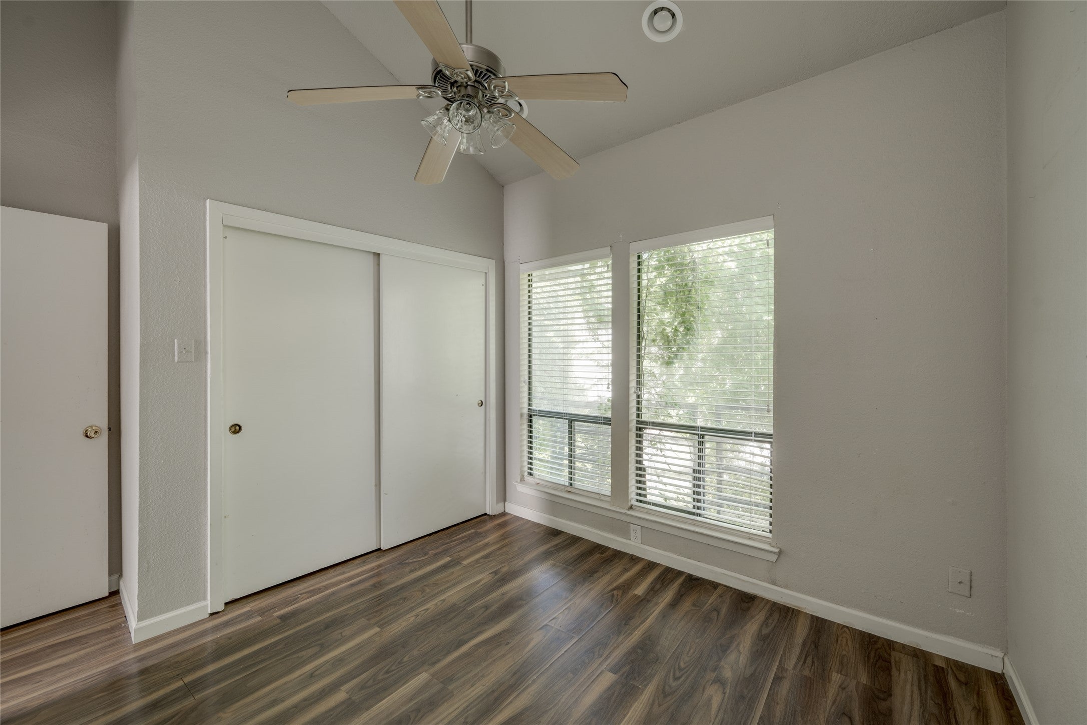 Private 3-bedroom, 2-bath condo in highly sought-after West Campus! Located in Central Austin near the University of Texas, this updated Treehouse condo is move-in ready. The spacious interior offers vaulted ceilings, wood flooring, abundant natural light, and has been recently painted, giving the home a fresh, modern feel. The galley kitchen features stainless steel appliances, granite countertops, and an updated backsplash. Additional highlights include a stackable washer and dryer in-unit, generously sized bedrooms, renovated bathrooms, and a private balcony. Upstairs space can be used as a third bedroom or office. Convenient access to neighborhood favorites like Kerbey Lane Cafe, Breed & Co., the University Co-op, and more. Two reserved parking spaces convey with the unit.