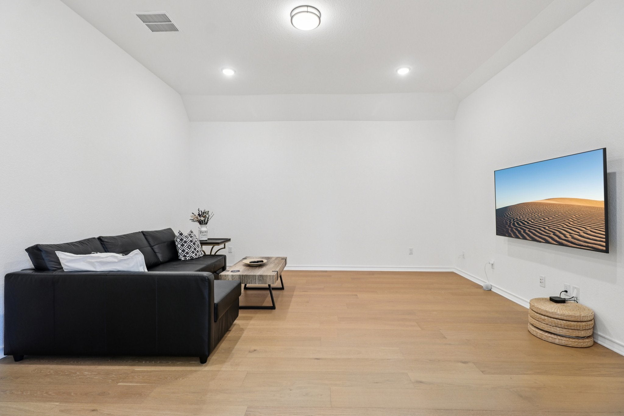 This is a once in a lifetime opportunity to purchase a home in the sold out community of Wolf Ranch Hilltop, that's less than 2 years old AND on an over 0.6 acre lot with stunning, Texas oak trees. My clients have to move for work and with broken hearts are offering their dream home to the next distinguished luxury home buyer to walk through the doors. On the inside you can spread out with 5 bedrooms and 6 bathrooms, with most bedrooms being ensuite. The primary suite is large, airy, has huge windows overlooking the back yard and a spa like bathroom with free standing tub. Downstairs you can enjoy working from home in the office that overlooks the beautiful backyard. Enjoy crafting? Just off the kitchen is a hobby room with space to store and spread out all your supplies. The formal dining room has a beautiful built in china cabinet with room for a fridge so that you can set it up as a wine bar. Up the beautiful dramatic staircase you enter the large game room with views over the private ranch behind the home. To the left of that is the media room where you can relax and enjoy time with your family. Outside is parking for over 10 cars on the extra long driveway, a 3 car garage, a covered patio and views over the private ranch behind. In the neighborhood you will have access to the clubhouse, infinity pool, playground, walking trails along the San Gabriel river and golf course. This home is stunning, spacious, luxurious and one of a kind opportunity to live in a newer neighborhood but have the privacy of a lot that is 3 times bigger than other homes.