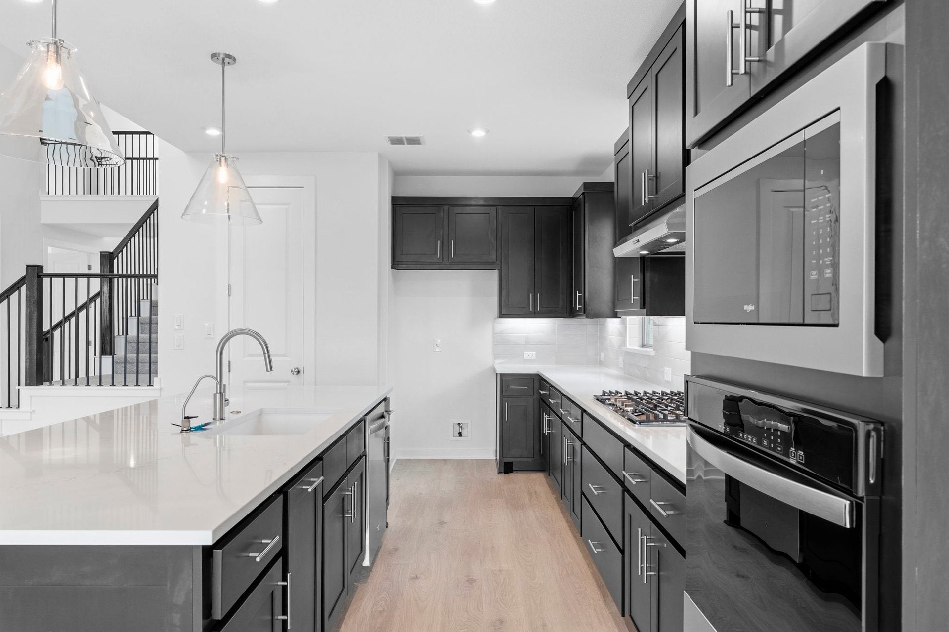 - Built-In Gas Range, Built-In Oven, Dishwasher, Gas Cooktop, Disposal, Gas Range, Microwave, Stainless Steel Appliance(s), Tankless Water Heater, Vented Exhaust Fan