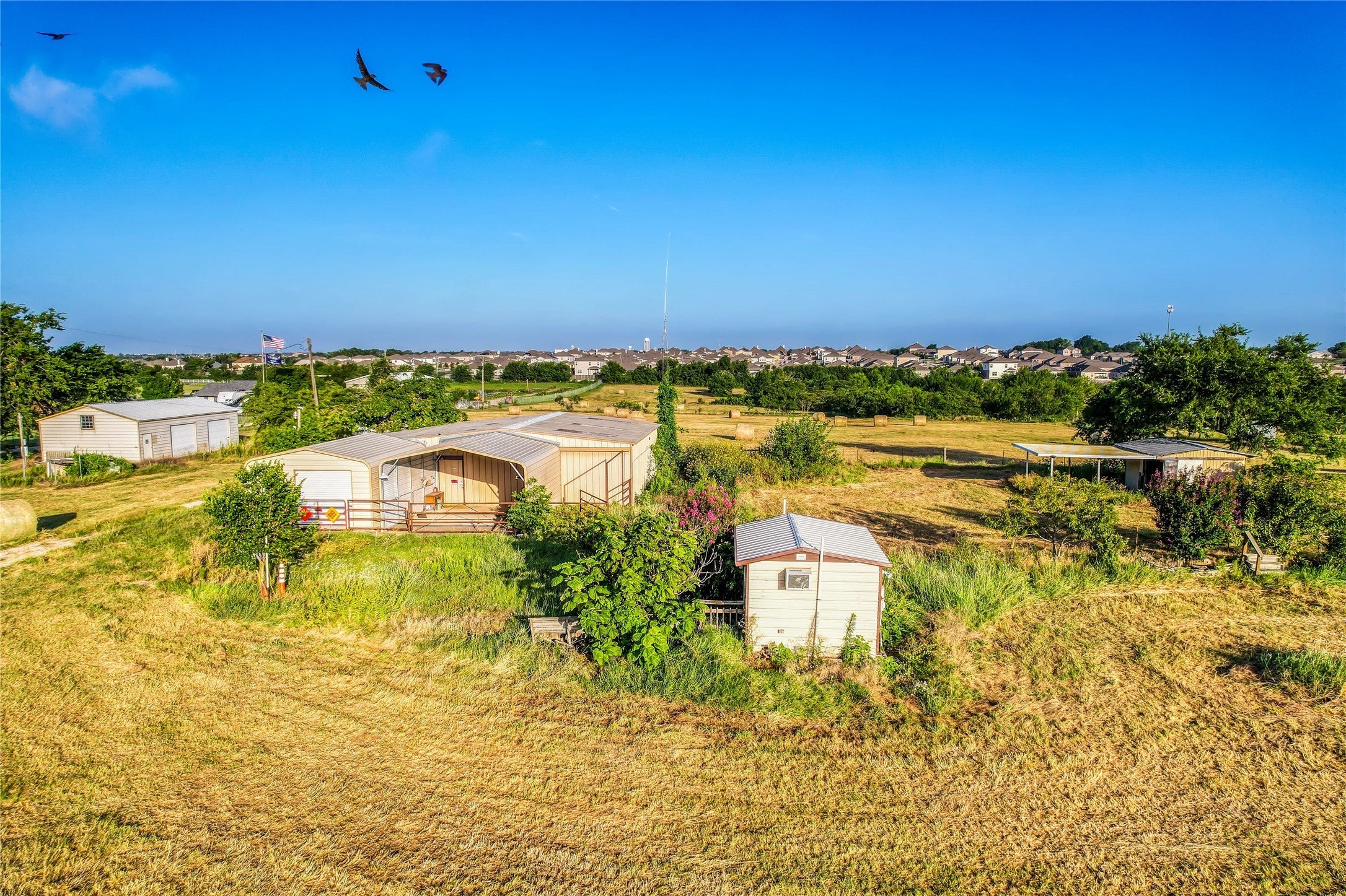 Approximately 10.081 Acre tract, situated in the thriving ETJ of Pflugerville. Multiple metal outbuildings with water, electric, and septic ideal for a hobbyist, contractor or anyone needing serious storage and workspace. Metal shop/garage with roll-up doors. Positioned directly across a new Flex/Warehouse business park—this property is poised for commercial ventures. Oncor has three phase on the east and west side of the property and single phase along the north and south side of the property. For future growth you can bring three phase on to the property. The cost of this will depend on the allowable you received based on the load. Available Wastewater Capacity in Lakeside MUD 3!! Fire hydrant capabilities available. Martin Ln is rapidly transforming into a commercial corridor, with numerous established businesses, RV parking, and storage facilities already in place. The residential footprint is steadily receding, making way for more business opportunities. Conveniently located just minutes from the city.