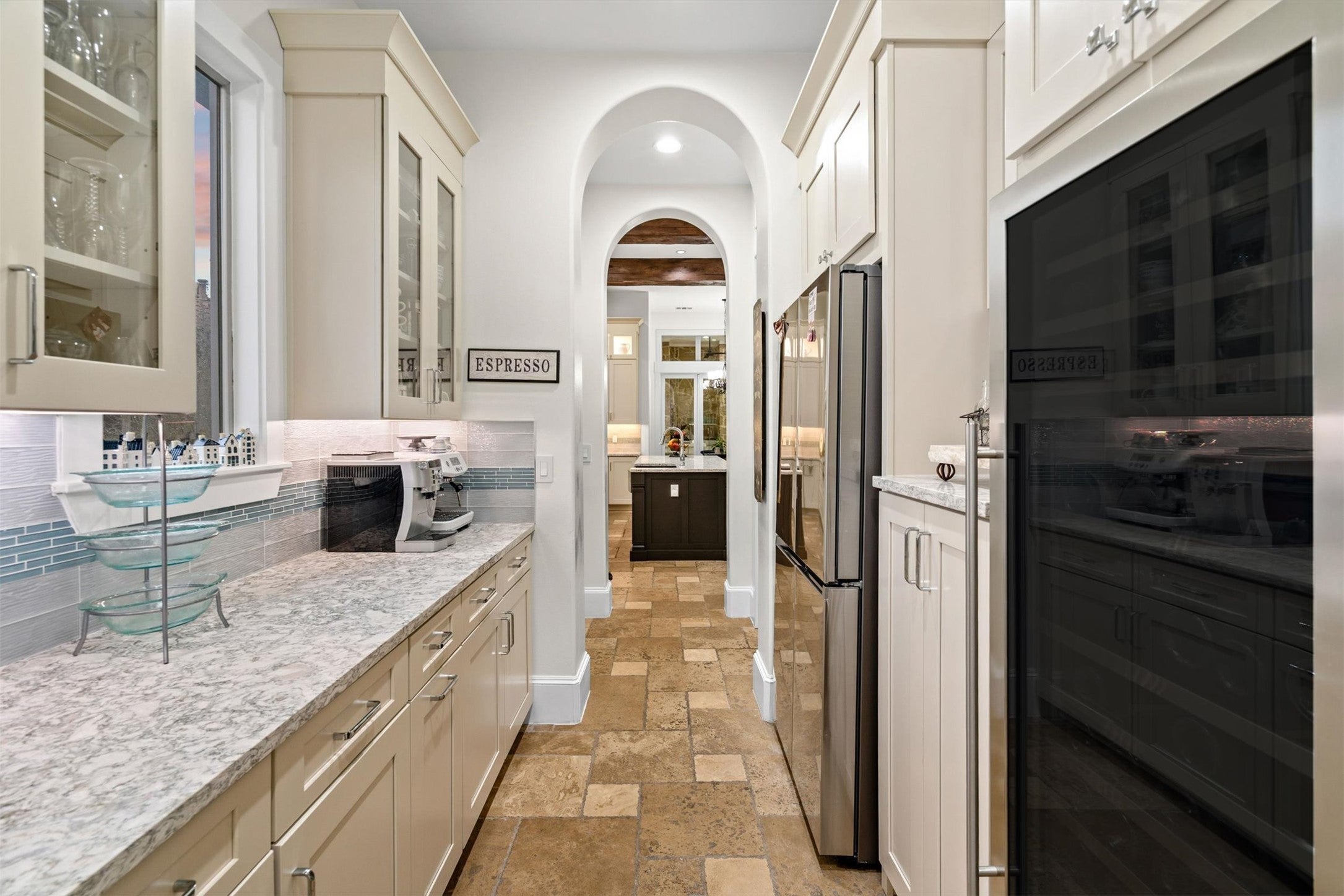 - Built-In Oven, Cooktop, Double Oven, Dishwasher, Free-Standing Range, Gas Cooktop, Disposal, Gas Water Heater, Microwave, Stainless Steel Appliance(s), Vented Exhaust Fan, Wine Refrigerator