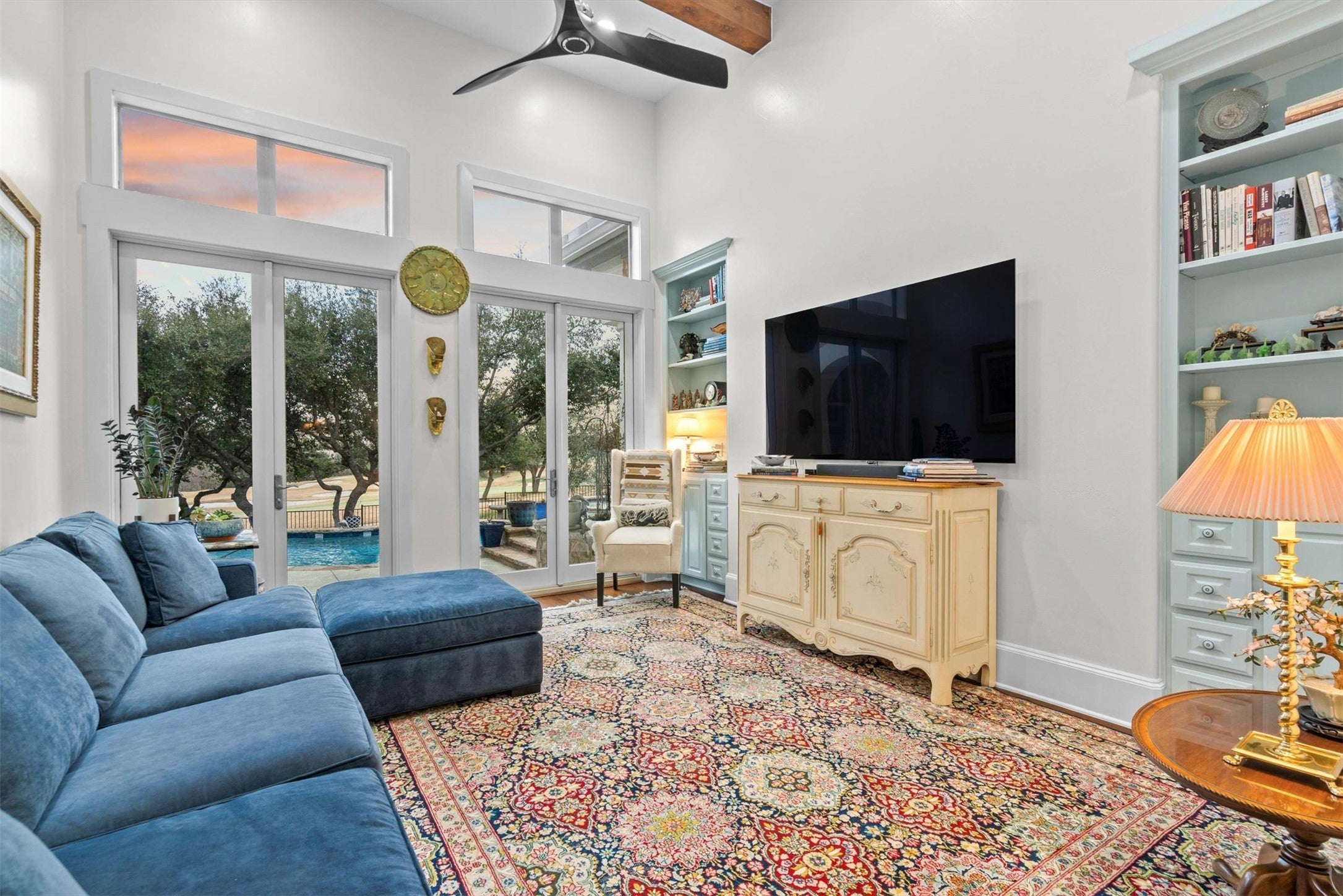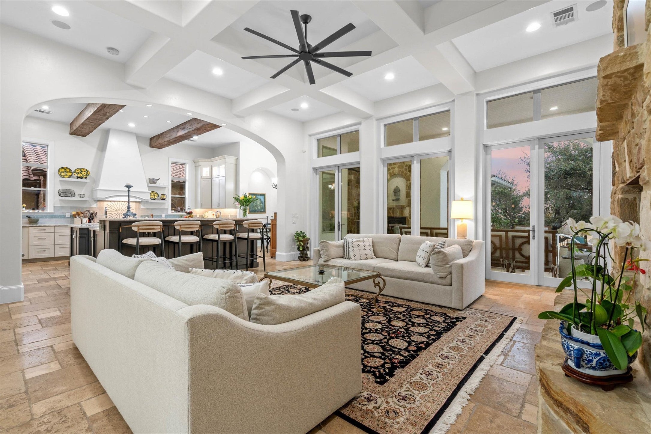 This 4-bedroom, 4.5-bathroom Flintrock Falls single-family home offers a premier golf course lifestyle across two stories of extensively upgraded spaces. Located behind the gates of Flintrock Falls, this property features a 2025-rebuilt pool and a private guest casita, perfectly positioned to capture sweeping views of the fairways. Every corner of the home has been transformed through a multi-year renovation, blending high-end technical infrastructure with refined finishes. The first floor centers on a high-end kitchen, pantry, and mudroom that were stripped to the studs and rebuilt with custom cabinetry, quartzite countertops, and a professional appliance suite including Sub-Zero and Dacor. Transitioning through the main level, a versatile family room provides a thoughtful buffer between the primary suite and the main living room, offering a flexible space for relaxation or work. The primary suite itself has been reimagined, featuring a massive walk-in closet and a spa-like bathroom with a freestanding tub, walk-in shower and custom granite surfaces. Upstairs, the home continues the elevated theme with premium wood flooring and updated guest bathrooms. The detached casita provides a versatile footprint for a guest suite or a quiet studio, complete with its own updated bathroom and easy access to the outdoor living areas. The mechanical integrity matches the visual appeal, with updated HVAC systems, custom Marvin thermal french doors, and so much more. The outdoor space functions as a private oasis. The pool and spa were fully reconstructed in 2025 with Pebble Sheen finishes and smart WiFi controls, complemented by a professional outdoor kitchen featuring a pizza oven and Hestan grill and a large lounge area with a fireplace. Residents enjoy the deep-rooted community feel of Flintrock Falls, with quick access to The Hills Country Club, the Hill Country Galleria’s dining district, and Baylor Scott & White Medical Center, all within the top-rated Lake Travis ISD.