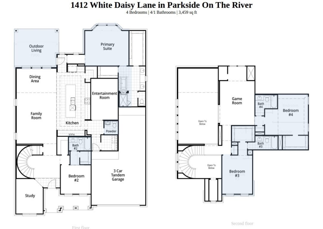 Beautiful "Regis" plan is Parkside on the River now under construction! Over 3,400 square feet that includes 4 bedrooms, 4.5 bathrooms, study, entertainment room, game room, dining area and large kitchen with GE Cafe appliances. Oversized lot with a three-car tandem garage - ready for summer 2026!