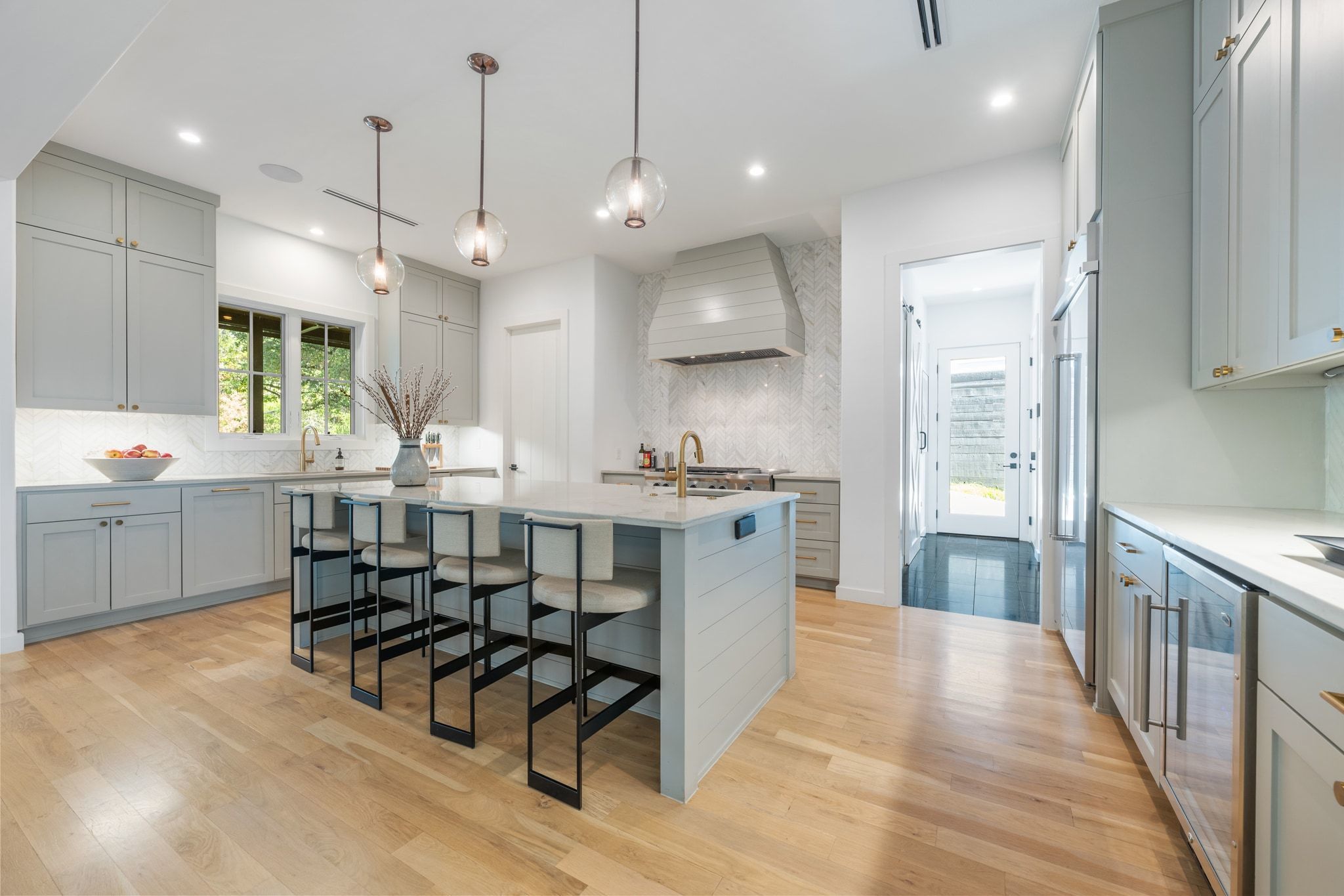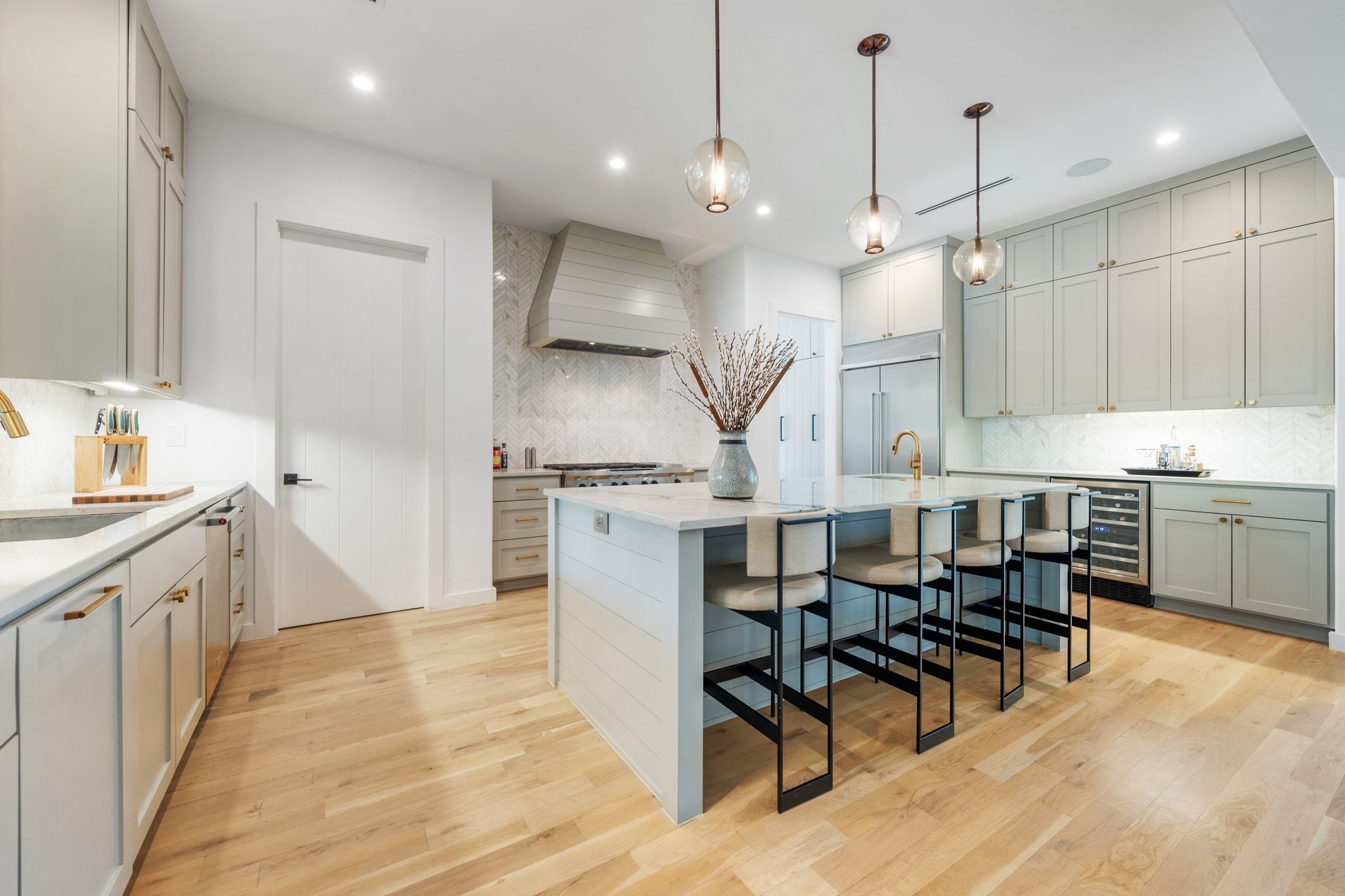 - Built-In Refrigerator, Dishwasher, Exhaust Fan, Electric Water Heater, Disposal, Gas Range, Microwave, Range Hood, Stainless Steel Appliance(s), Wine Refrigerator