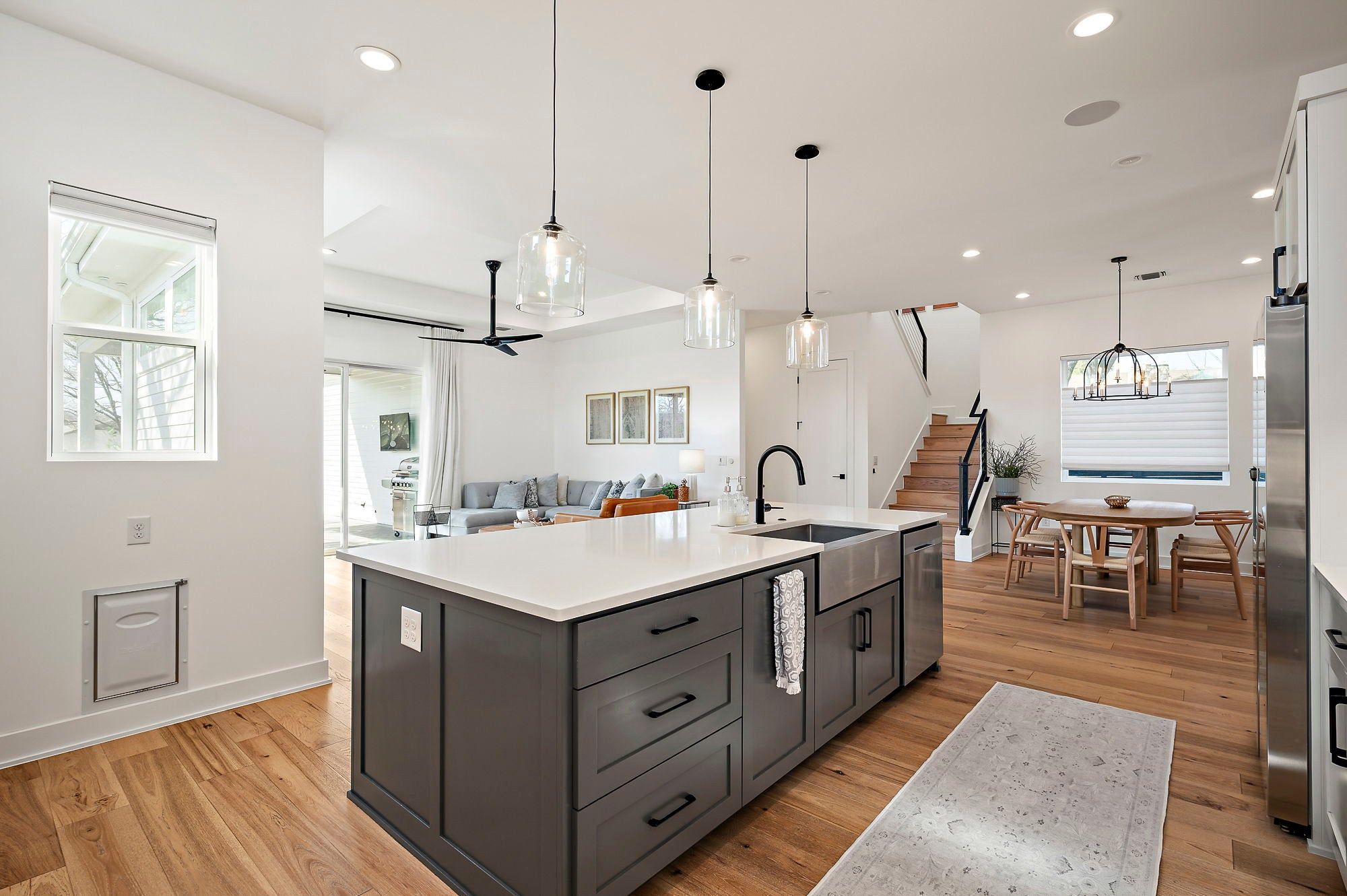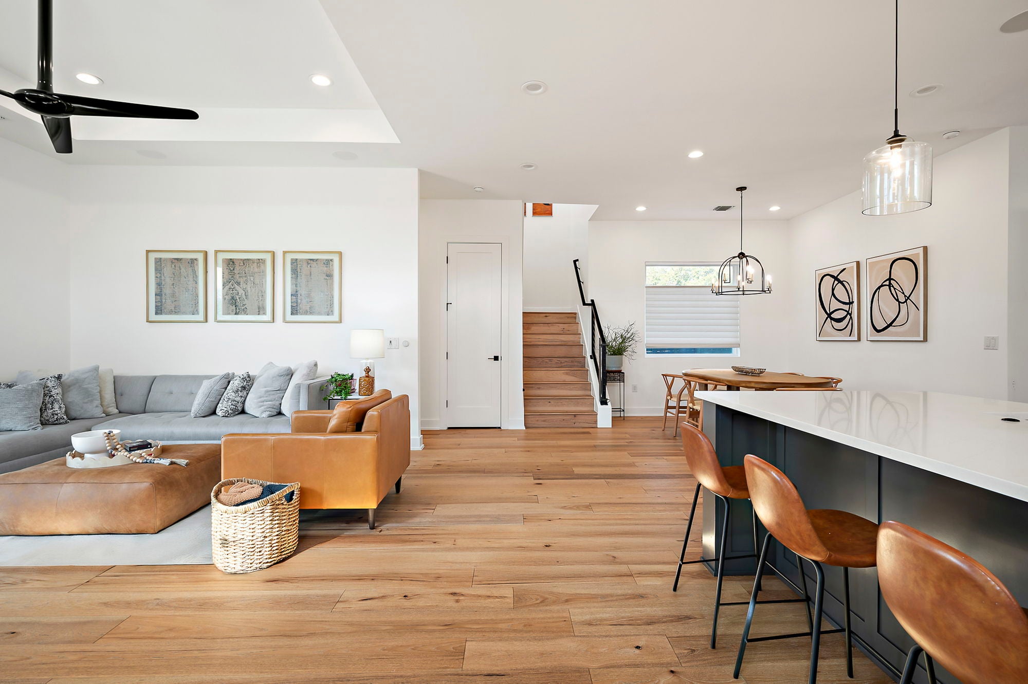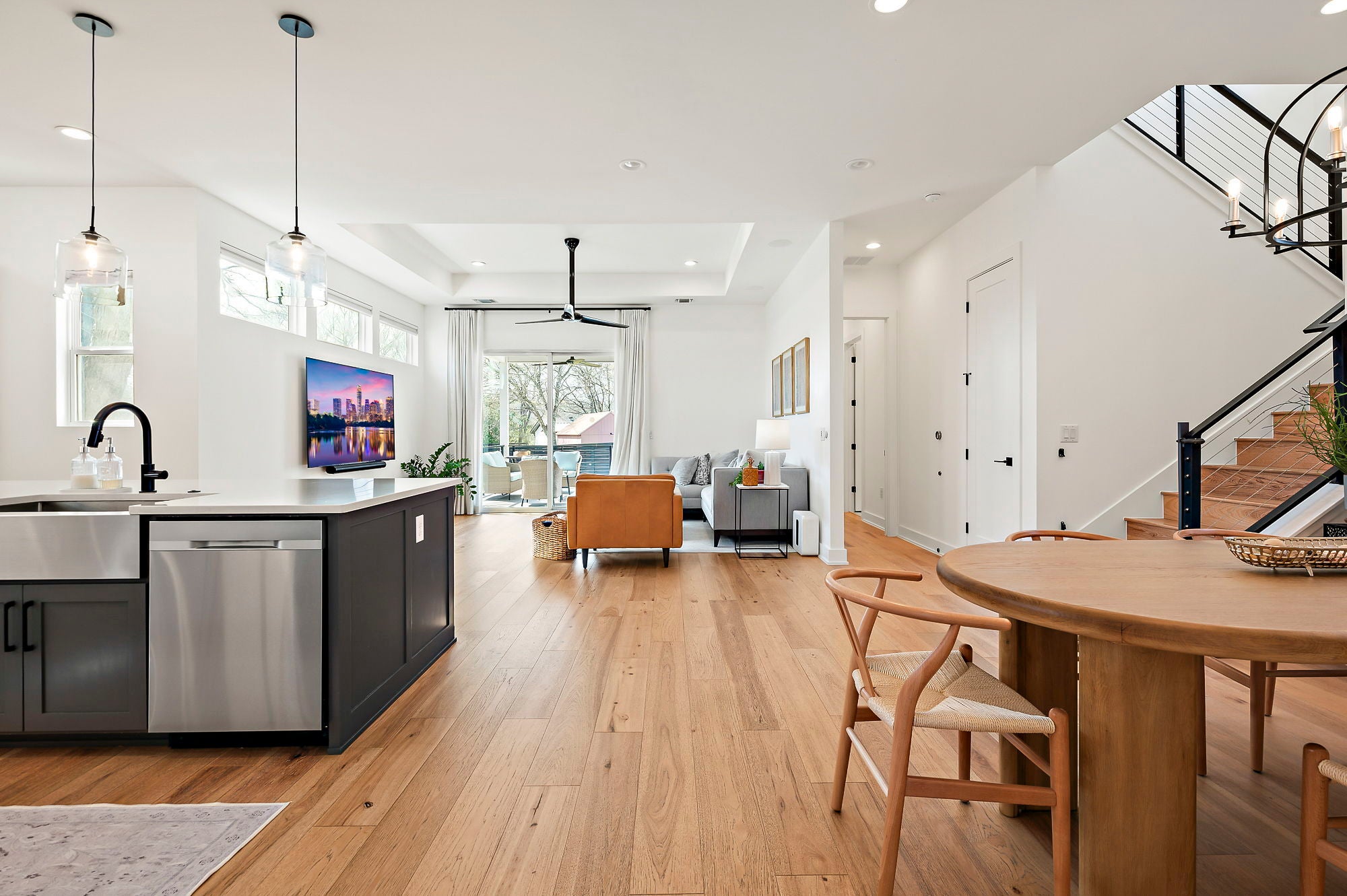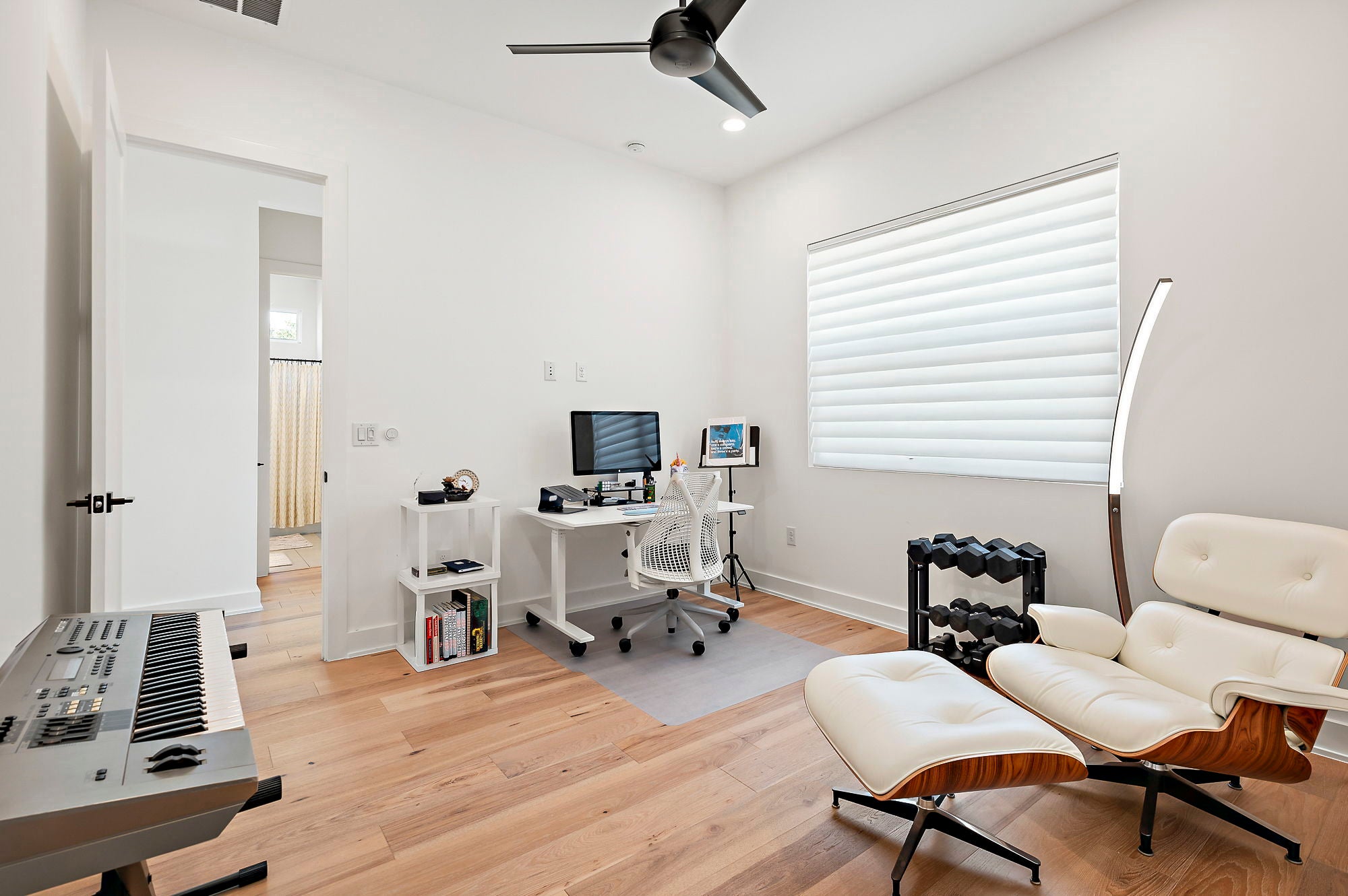 Built by Paradisa, this newer-construction 4-bedroom home with a loft and 3 full bathrooms blends modern design with everyday livability. Natural light moves easily across wood and tile floors, drawing you into the open living space where a tray ceiling and expansive sliding glass doors create a seamless connection to the outdoors. The layout feels deliberate — open where you want connection, defined where you want privacy. The kitchen anchors the home with a substantial quartz island, shaker cabinetry, and stainless appliances — equally suited for weeknight dinners or a house full of guests. The primary suite is privately positioned on the main level and offers a generous walk-in closet and a spa-like bath with dual vanities and a rainfall shower. A second bedroom and full bath downstairs provide flexibility for guests or a dedicated office. Upstairs, a versatile second living area (loft) connects two additional bedrooms and a full bath — ideal for media, work, or play. Technology is integrated without being intrusive: Hunter Douglas automated blinds, Sonos audio, and security cameras offer convenience at the touch of a button. Out back, a covered patio overlooks a fenced yard that partially backs to the Little Walnut Creek greenbelt — a rare combination of privacy and open views. Easy access to 183, just a few minutes to Mueller, and approximately six miles to downtown Austin, this home offers modern comfort with access to everything.