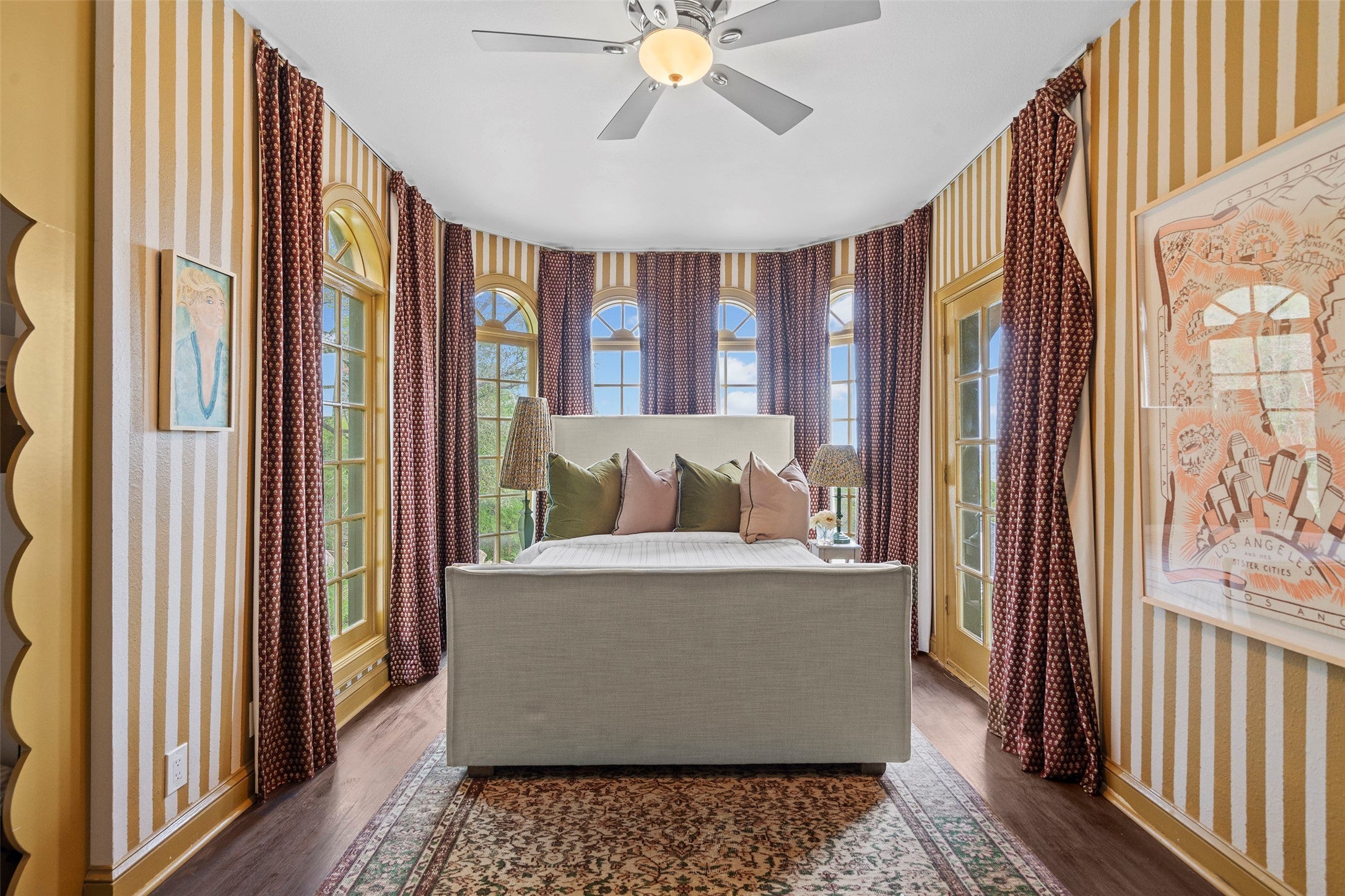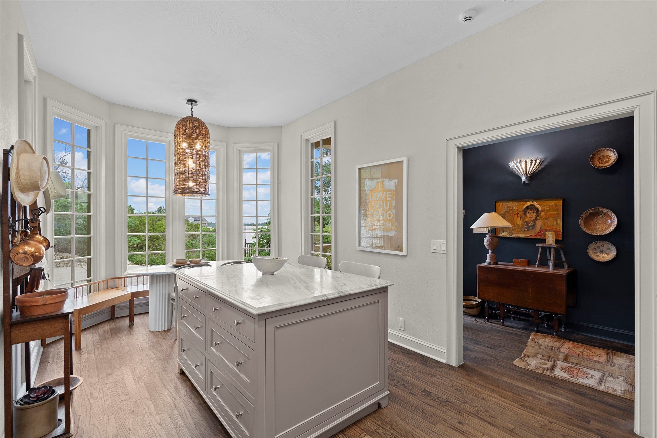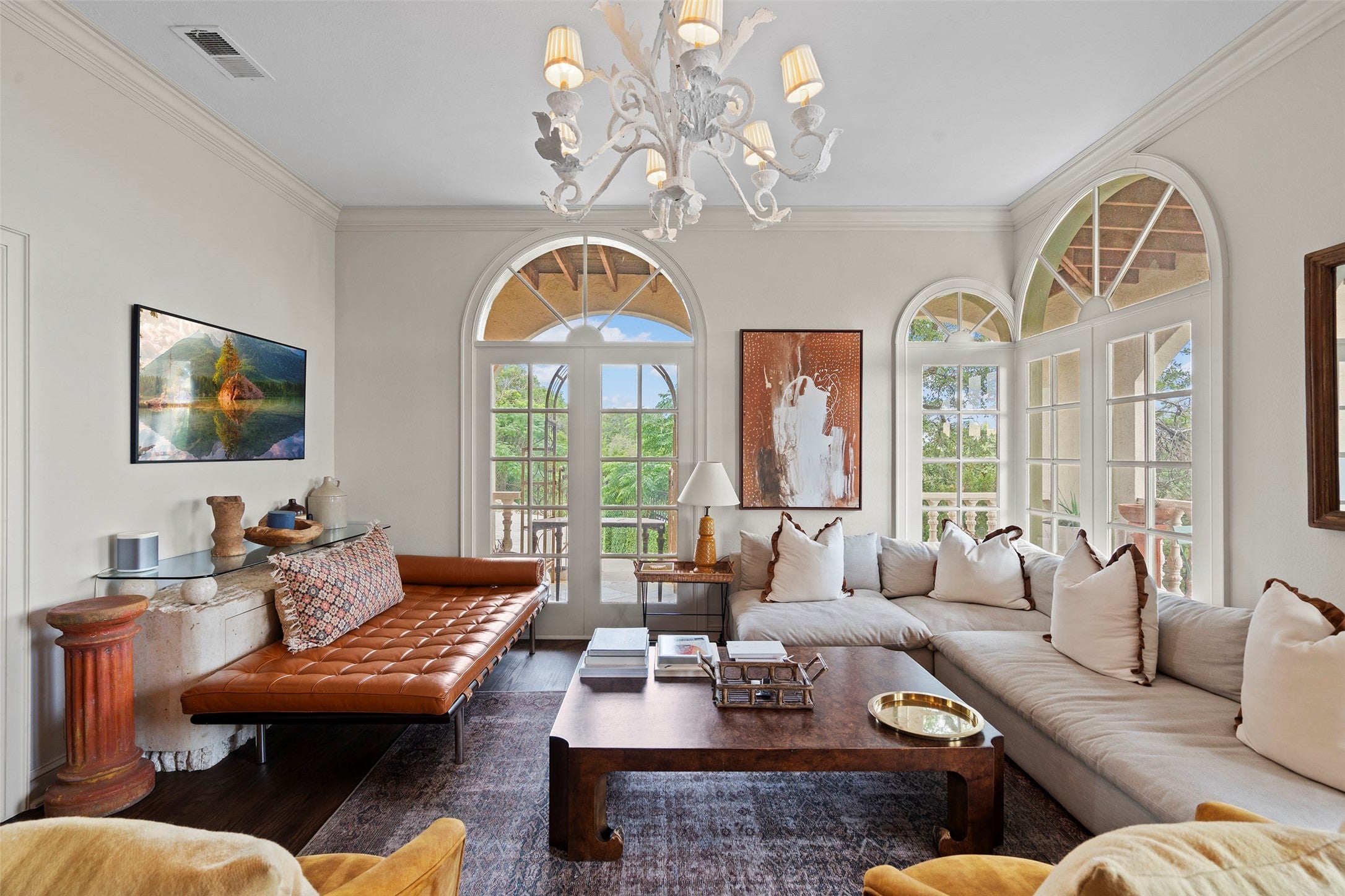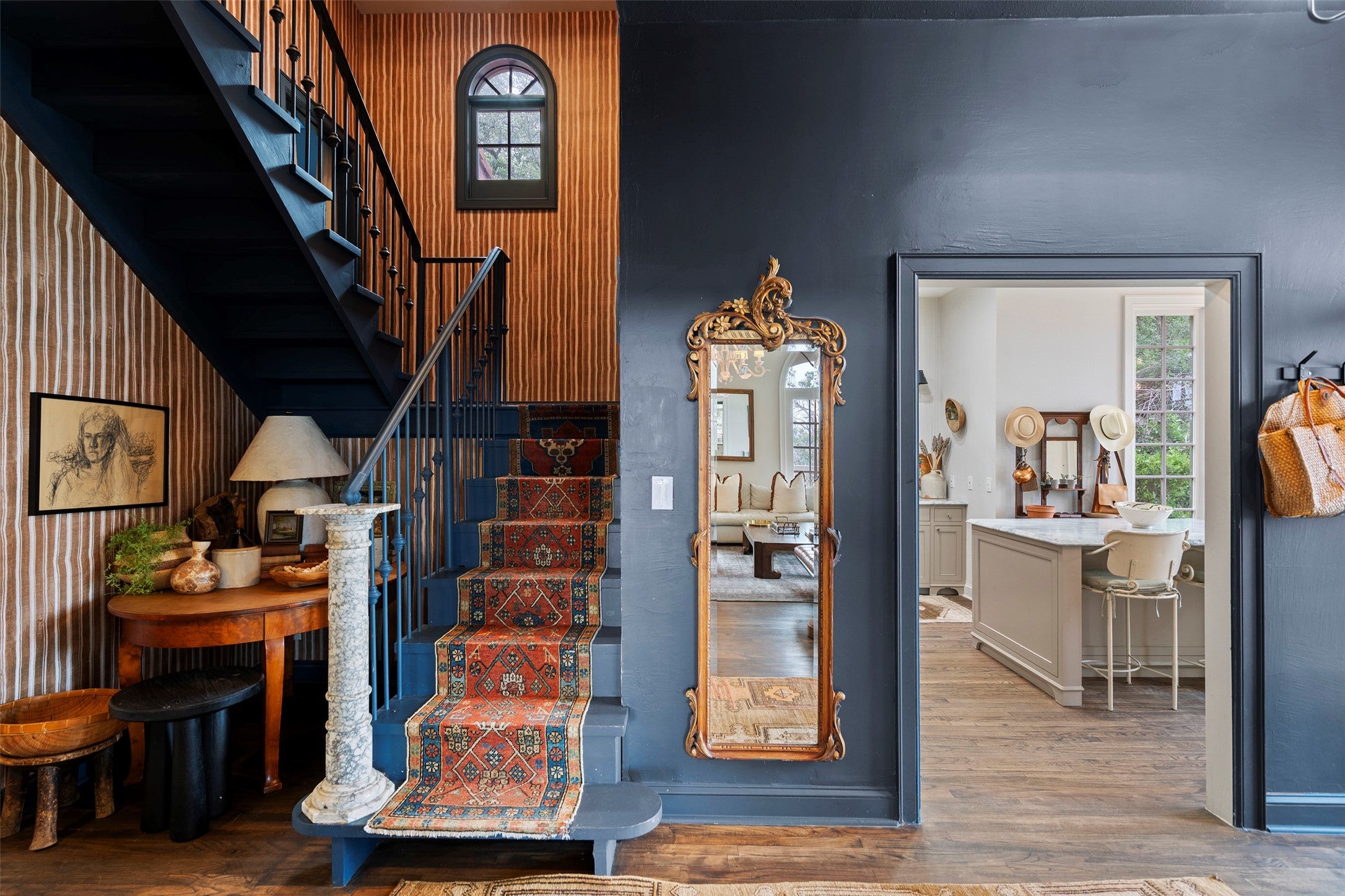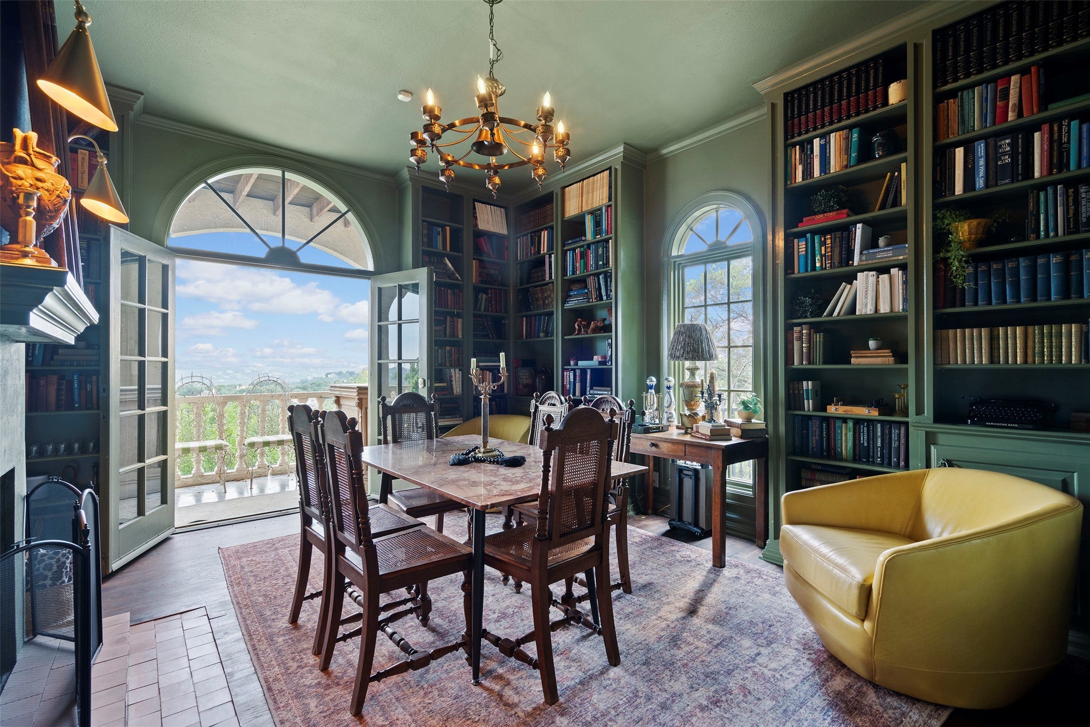 Set in the hills of Northwest Hills, one of Austin’s most established and architecturally rich neighborhoods, 6203 Ledge Mountain is a fully realized Spanish-style home brought to life by designer Claire Brody. Known for her expert layering and subtle drama, Claire has turned every room into a moment. The exterior is classic. The interiors are anything but predictable. Every surface has been considered. The kitchen is designed for someone who actually cooks, with marble countertops, a dual-fuel range with a pot filler, a hidden pantry, and custom cabinetry with real presence. The layout flows naturally, with two distinct living areas. One is warm and moody with a wood-burning fireplace and built-in bookshelves. The other is bright and open, with French doors that lead to the tiled patio and private lawn. Upstairs, the primary suite feels like a boutique hotel. Soft light, elevated views, and a private balcony create an ideal place to unwind. The bathroom features a soaking tub and walk-in shower, all designed with restraint and intention. The home includes three bedrooms, three and a half bathrooms, and a flexible bonus room that works well as a guest suite, office, or nursery. It sits on more than a third of an acre and offers a sense of calm while being just ten minutes from downtown and the Domain. Every piece in the home was chosen by Claire, and it is being sold fully furnished. It is a rare opportunity to realize a designer’s vision without doing any of the work yourself. This is the kind of home that rarely comes on the market. Thoughtful, textural, and completely unique
