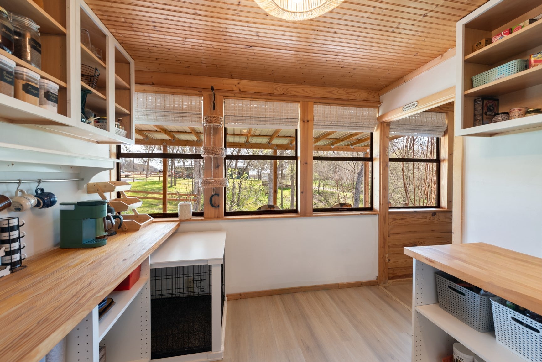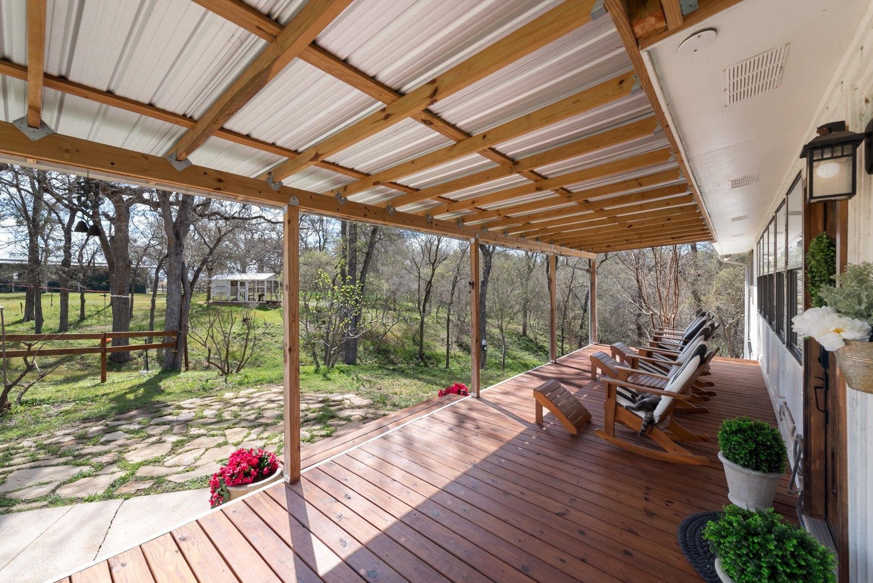 Discover this rare gated estate on 13+ unrestricted acres in Elgin, offering a beautifully remodeled 5-bedroom, 4-bath farmhouse with 2,408 sq ft of living space. The main home features abundant natural light, walk-in closets, covered front porch, enclosed back porch, and a hot tub — perfect for indoor-outdoor living. A separate guest house adds privacy and versatility for visitors, office space, or rental potential. The warm, elevated farmhouse style blends modern finishes with classic charm, creating a cozy yet spacious atmosphere throughout. Equestrian and hobby farm amenities abound: the main barn has 4 stalls with run-outs, a raised ventilated feed room, and a fenced arena with adjacent round pen and an enclosed paddock. Attached to the garage is a full tack room with custom lockers and full bath, carport, and single-car garage. A pole barn at the lower property functions as a run-in with storage and animal shelter, equipped with water. Wide riding trails wind through mature trees, providing shade for horse and rider alike. The fully fenced back pasture is ideal for grazing or hay production, and it backs to Wilbarger Creek. Rolling hills, a wet-weather pond, open pasture, and expansive views complete the serene countryside setting. This unrestricted property is ideal for equestrian enthusiasts, hobby farmers, or anyone seeking privacy and space to roam. Rarely does a home combine updated farmhouse style, a separate guest house, and fully equipped equestrian facilities in such a private and picturesque setting. Just minutes from downtown Elgin, you’ll enjoy both peaceful country living and convenient access to shops, restaurants, and community amenities.