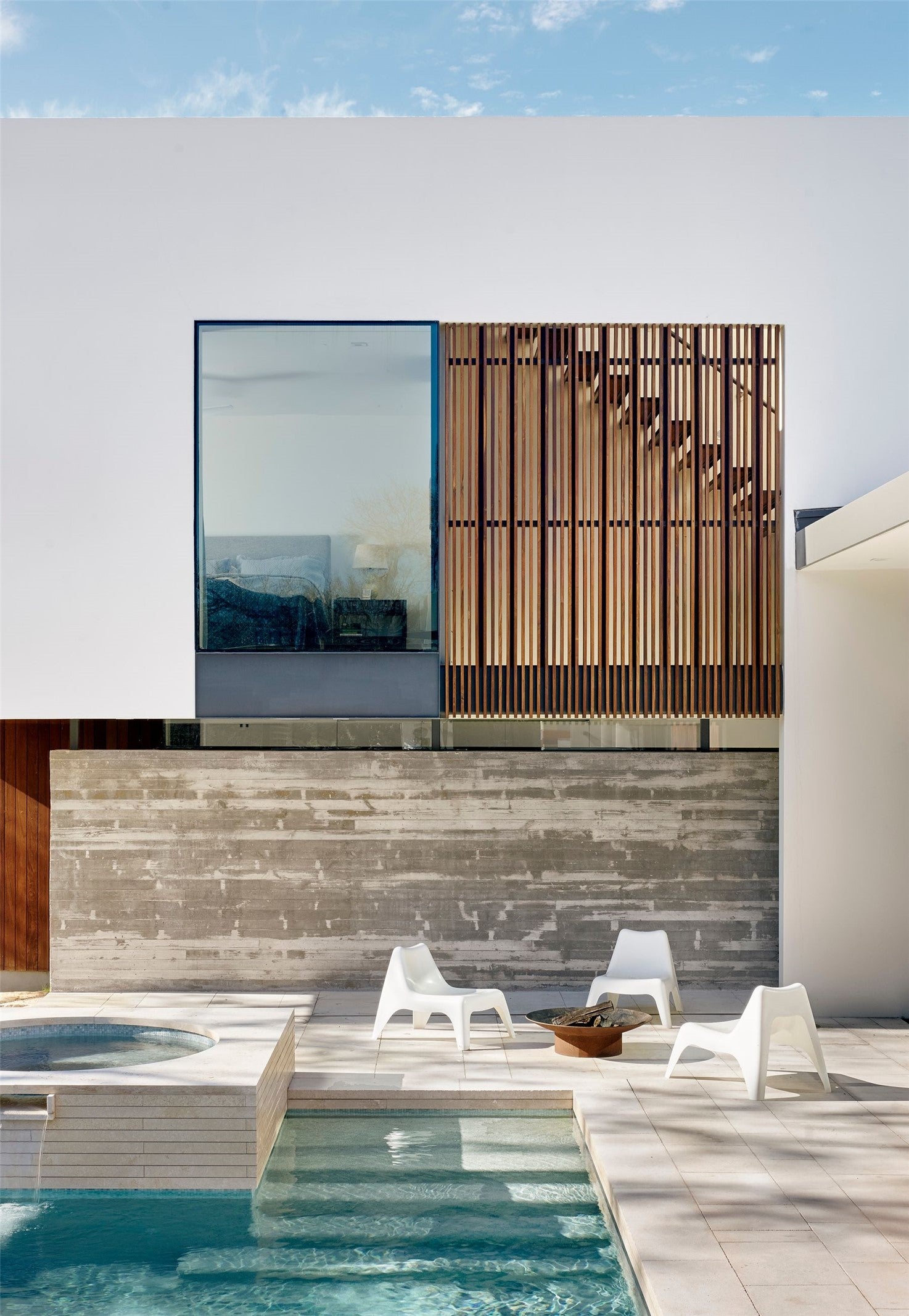 This Alterstudio masterpiece in Rollingwood exemplifies architectural excellence and thoughtful design. Enter a world where sophistication meets comfort through stunning living spaces framed by sleek paneled wood walls that create an effortless sense of flow and openness. The formal living area serves as the home's centerpiece, with floor-to-ceiling windows flooding the space with natural light while a dramatic concrete fireplace creates visual connection to the dining room beyond. This entertaining hub showcases sweeping views of the beautifully landscaped front yard, enriched by warm wood detailing throughout. The chef's kitchen centers around an expansive marble island with waterfall edges, ideal for casual meals and conversation. A custom banquet-style breakfast table elegantly divides the kitchen from the secondary living area—perfect for morning gatherings or evening drinks. When hosting larger affairs, the generously appointed butler's pantry offers duplicate appliances and ample storage to streamline any occasion. The primary suite provides a peaceful retreat with pool views and a spa-inspired bathroom featuring floating dual vanities, a freestanding soaking tub, and frameless glass shower. Direct courtyard access blends indoor refinement with outdoor serenity. Four additional bedrooms offer comfortable sanctuaries for family and guests, while a flexible game room and dedicated office provide space for play, productivity, and unwinding. Outside, the thoughtfully designed grounds include an alfresco dining area, sparkling pool and spa, level lawn, and outdoor shower—creating an ideal backdrop for relaxation and entertaining. Located moments from Austin's finest restaurants, outdoor recreation, entertainment, and shopping, this home delivers an exceptional lifestyle at the heart of it all. Experience modern living at its finest.