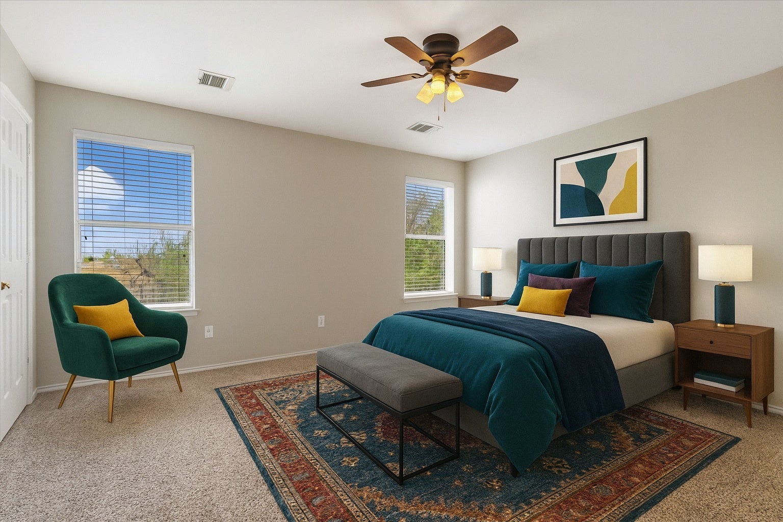 Conveniently located in Leander with quick access to 183A, making commuting into Austin and surrounding areas simple and efficient. Functional two-story layout with a guest bedroom and full bath on the main level, offering flexibility for visitors, office space, or everyday living. The main living area connects easily to the kitchen, creating a comfortable flow for daily use. Upstairs includes the primary suite along with additional bedrooms and a flex space that works well as a second living area, workspace, playroom or even a 5th bedroom. Private backyard with space for outdoor seating or gardening. Situated near shopping, dining, and major roadways, this home offers a practical layout in a location that keeps you connected.
