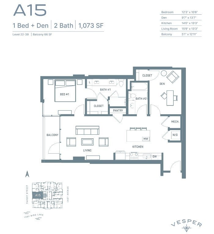 End-of-year pricing available for contracts executed through December 31. Vesper is a luxury condominium community in downtown Austin, offering design-forward residences with high-end finishes and exceptional amenities. Located steps from Rainey Street and Lady Bird Lake, the condos at Vesper provide direct access to Austin’s top dining, nightlife, and outdoor spaces. Unit 2410 features western-facing views overlooking downtown Austin, Lady Bird Lake and Congress & Lamar bridges and offers a one-bedroom plus den layout with 1,073 interior square feet, complemented by a private balcony capturing skyline sunsets. Designed in the Desert Calm finish palette, the residence includes floor-to-ceiling windows, high ceilings, and an open-concept layout that maximizes natural light. The kitchen features Italian cabinetry, terrazzo quartz countertops, and Bosch appliances, while spa-inspired bathrooms offer frameless glass showers and designer fixtures. Residents enjoy 24-hour concierge service, a rooftop lounge, resort-style pool, state-of-the-art fitness center, and private co-working spaces. Vesper’s prime downtown location ensures convenience, whether you’re exploring Rainey Street, enjoying Lady Bird Lake trails, or experiencing the best of Austin living. Contact us today for pricing and availability or to schedule a private tour.