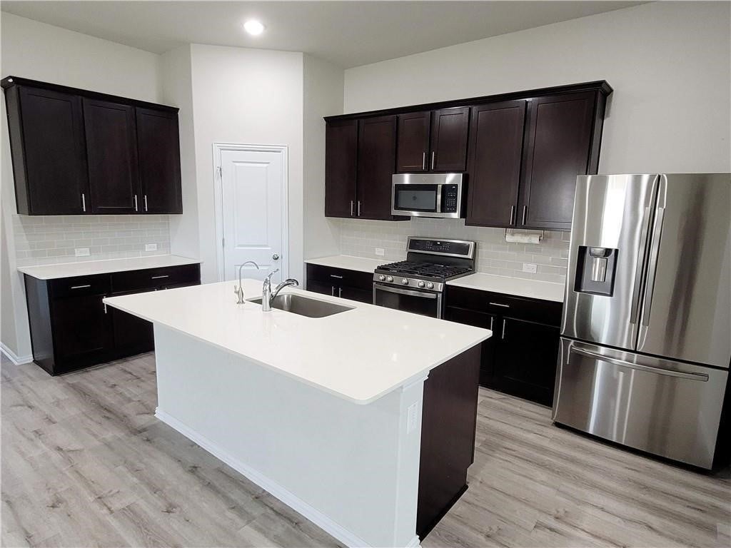 Welcome to your dream rental home! This stunning corner house offers an expansive open concept design, perfect for modern living. With a single story layout, it features 3 bedrooms, 2 bathrooms, and a flexible room that can adapt to your needs – whether it's a home office, gym, or extra bedroom. Step inside to discover wood-look luxury vinyl plank flooring throughout, providing both durability and elegance. The kitchen is a chef's delight, equipped with stainless steel appliances, white quartz countertops, a large island, and stylish dark 42” cabinets. The master bedroom boasts a charming bay window and a spacious double door bathroom, offering a serene retreat after a long day. Step outside to the large covered patio, ideal for relaxing or entertaining guests. But the perks don't end there! This neighborhood offers a plethora of amenities for every member of the family to enjoy. From a kids' play area and swimming pool to a splash pad and dog park, there's something for everyone. Sports enthusiasts will love the basketball court, while nature lovers can explore hiking and biking trails, and even zip lines!
