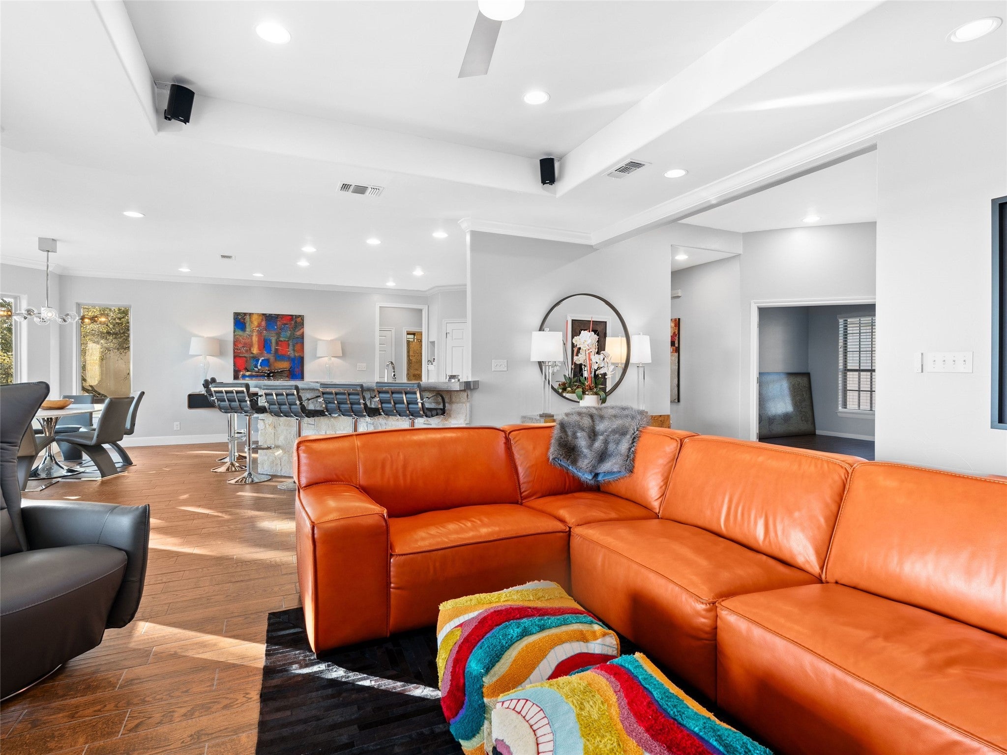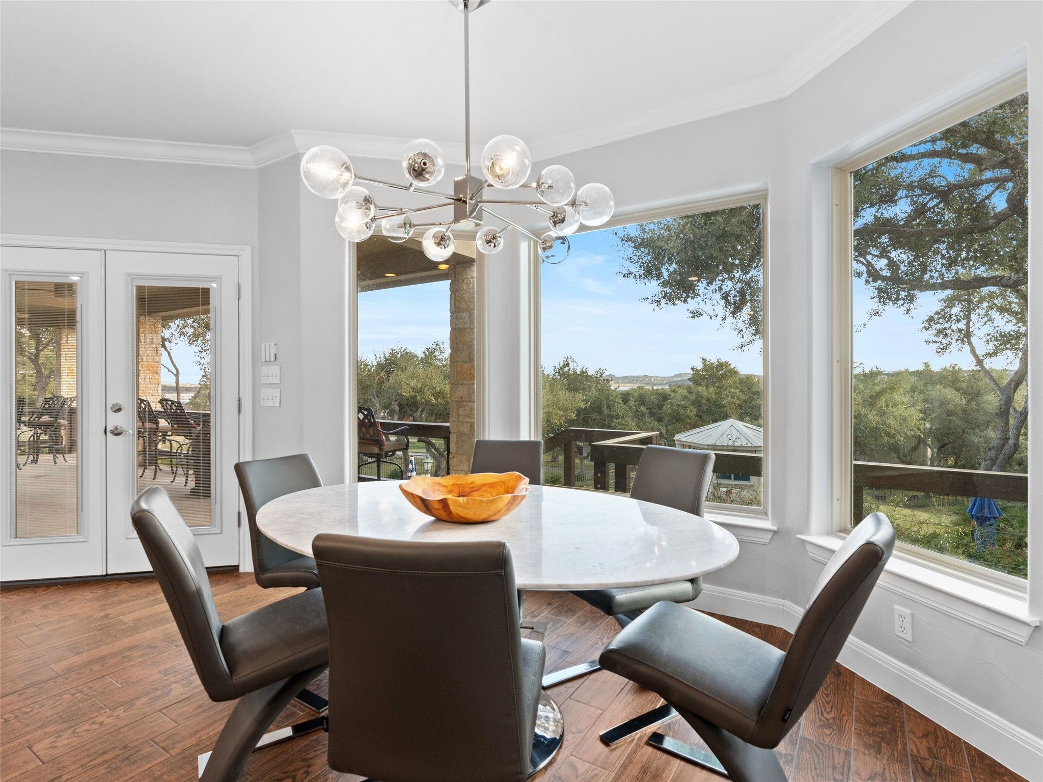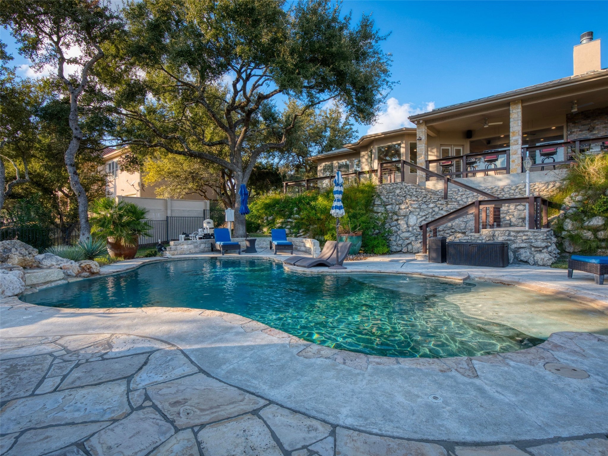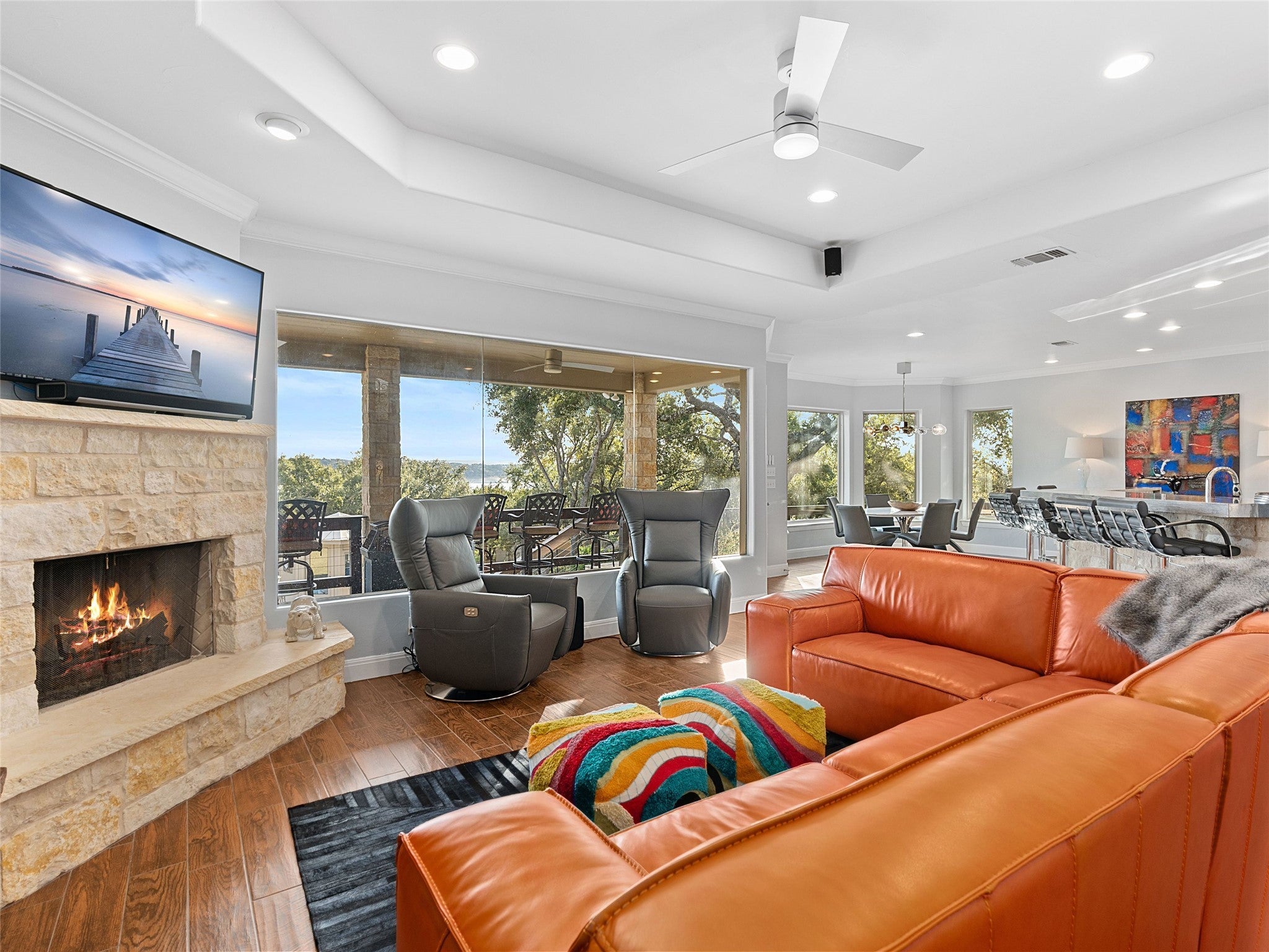 Welcome to your lake-view retreat on a rare double lot, where resort-style outdoor living and move-in ready updates come together to create the ultimate Canyon Lake lifestyle. Recently remodeled and designed for modern living, this open-concept home features a beautifully updated kitchen with generous workspace, stylish finishes, and seamless flow into the dining and living areas—perfect for everyday living or entertaining guests. With 4 spacious bedrooms, 2.5 baths, and a dedicated home office, this home supports today’s remote work and flexible living needs. The primary suite offers a private escape with double vanities, walk-in shower, freestanding soaking tub, and French doors leading directly to the outdoor living space. Step outside to experience what today’s buyers are searching for—a private backyard oasis featuring a luxury in-ground pool, expansive covered patio, and breathtaking lake views from multiple vantage points. Whether hosting gatherings or enjoying peaceful evenings, this home delivers true indoor-outdoor living. Additional highlights include three-car garage, high ceilings, mature trees, water access, and no city taxes, making this property both functional and lifestyle-driven. Ideally located with convenient access to both Austin and San Antonio, it's the perfect blend of lake living, modern comfort, and everyday convenience.