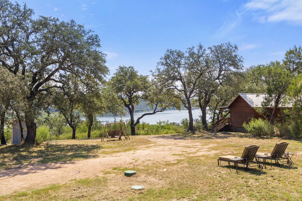 Rare opportunity in the coveted Green Banks of Travis, a peaceful lakeside community in Marble Falls. This private 10.5-acre waterfront retreat on Lake Travis offers an exceptional blend of space, privacy, and direct access to the water—all just under an hour from Downtown Austin. The property includes six contiguous lots (two waterfront and four lake view), fully fenced and gated, sold together as one tract. A commercial-grade boat ramp—measuring 180’ and reaching down to 646’ elevation—provides unmatched access to the lake. The land features a level building site above the floodplain, making it ideal for your future dream home. Current improvements include a cozy log cabin, a manufactured home, and a large barn/garage, creating immediate opportunities for weekend getaways or full-time living while you plan your build. Gentle breezes and wide lake views can be enjoyed from the covered deck, and a sandy shoreline offers a true Hill Country waterfront lifestyle. With two access points into the property, Green Banks’ quiet setting, and Marble Falls ISD schools nearby, this property combines convenience, community, and natural beauty. Whether you envision a family compound, vacation retreat, or a custom estate, this is a rare chance to secure a special slice of Lake Travis.