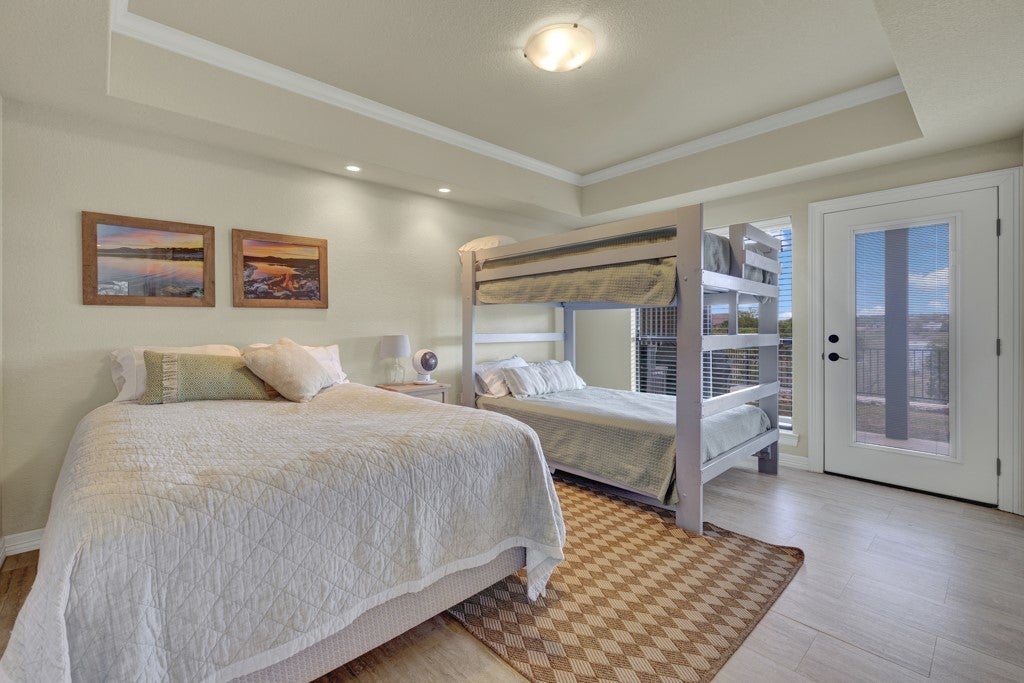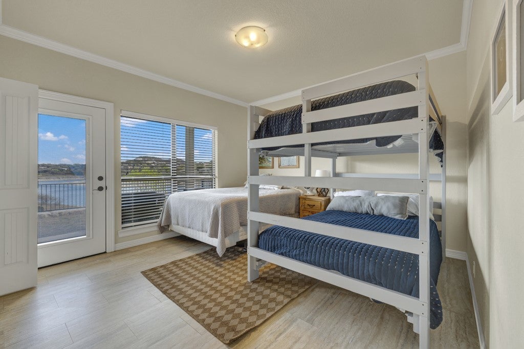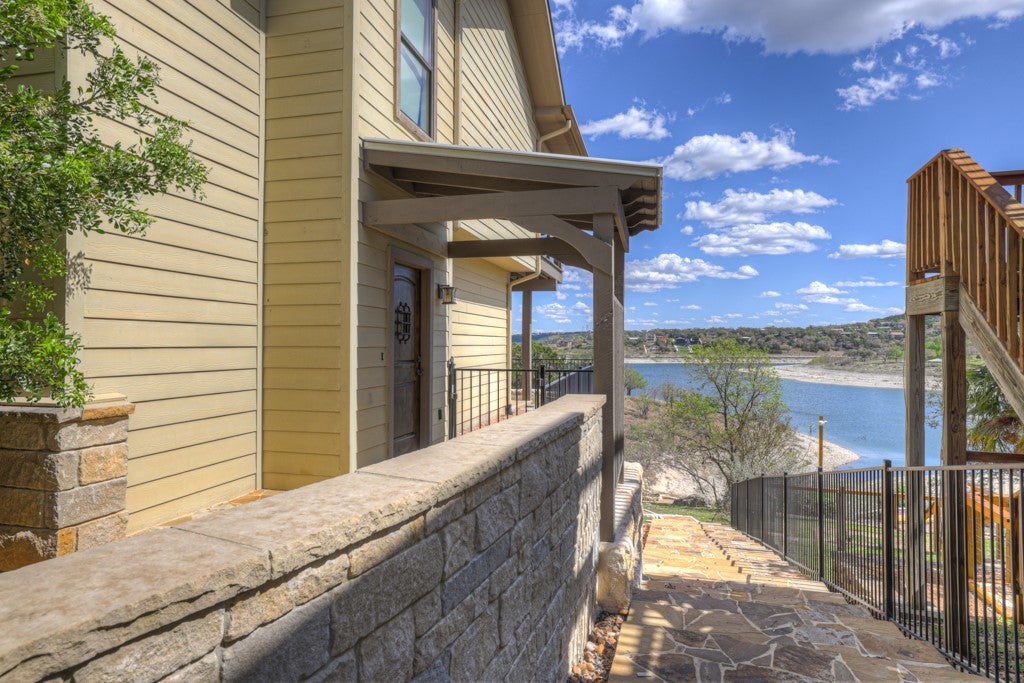 Welcome to waterfront living at its finest in the desirable Canyon Lake Village West subdivision. Built by the well-known Outlaw Custom Homes, this stunning property combines quality craftsmanship, thoughtful design, and breathtaking views of Canyon Lake. With incredible water access and picturesque scenery, this home offers the perfect blend of relaxation and lakefront lifestyle. As you enter the home, you are immediately drawn to the open-concept design and expansive picture windows on the second floor that frame the sparkling lake views and fill the living space with natural sunlight. The spacious living area features a beautiful stone fireplace and custom built-in shelving, creating a warm and inviting space to gather with family and friends. The kitchen is designed for both style and function with granite countertops, ample cabinetry, and seamless flow into the living and dining areas-perfect for entertaining while enjoying the water views. Step outside onto the large balcony and take in the panoramic scenery of Canyon Lake, an ideal spot for morning coffee or evening sunsets. The primary suite is a private retreat, featuring its own balcony, a spacious bathroom with a walk-in shower, and a large walk-in closet. The main floor offers comfortable secondary bedrooms, each with beautiful water views and direct access to the covered patio, allowing guests or family members to enjoy the peaceful lake setting. The laundry room is conveniently located on the main floor for added functionality. Outdoor living truly shines here. A scenic pathway leads you down to the water, highlighted by beautifully crafted stone steps that provide easy access for lake activities, fishing, kayaking, or simply enjoying the shoreline. Welcome Home!