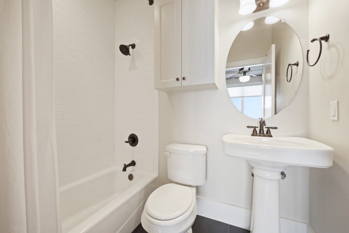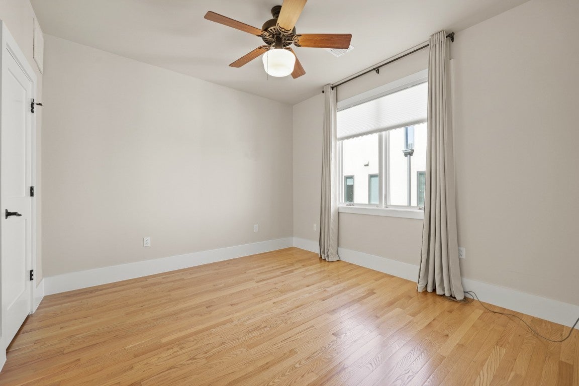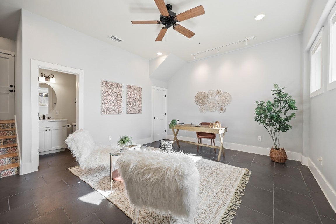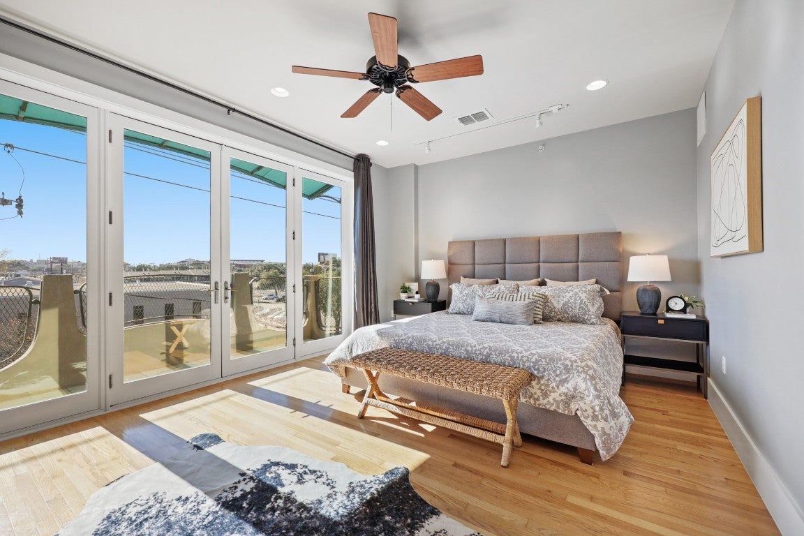 Steps from South Congress, this stylish and flexible modern home captures the essence of Austin living. Just one block from the city’s most beloved destination for restaurants, coffee shops, boutiques, murals, and live music, this thoughtfully designed residence offers incredible walkability paired with the comfort of a quiet enclave. Inside, soaring ceilings, abundant natural light, and architectural details create an inviting sense of space. The open-concept living area features hardwood floors, custom ironwork, and a dramatic round window leading to one of two private balconies—perfect for morning coffee or sunset cocktails. The sleek kitchen includes granite countertops, stainless appliances, double ovens, and generous cabinetry for storage and entertaining ease. Zoned Mixed Use (MU), this property offers exceptional flexibility for today’s lifestyle—whether you envision a home with an integrated workspace, a private office with its own separate entry, or simply a second living room or really private guest suite - there are so many possibilities. The ground floor’s layout—with a full bath, generous storage, and direct street access—makes it unique and ideal anyone seeking to blend home and business in one sophisticated setting. Upstairs, both bedrooms enjoy en-suite access and ample closet space, while the primary suite offers a serene treetop view, private third floor balcony, and a spa-style bath with dual vanities, dual walk-in closets, and a walk-in shower. Additional highlights include an attached two-car garage with epoxy flooring and extra storage, abundant built-ins throughout, and a common outdoor living space framed by mature trees. A rare blend of style, flexibility, and location—just steps from the vibrant heart of South Congress.