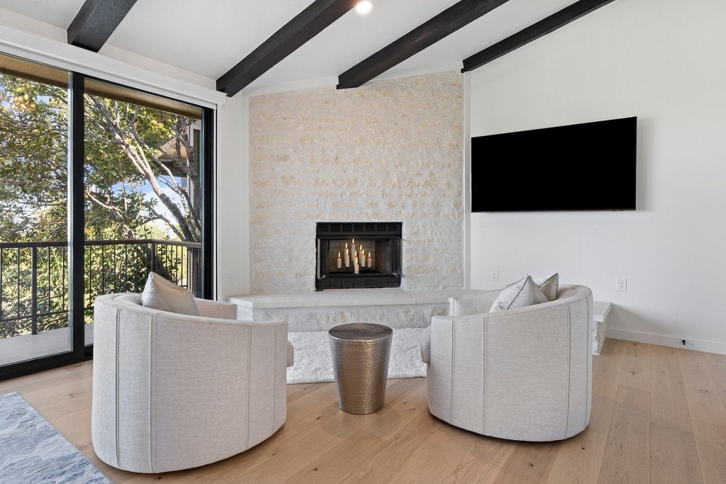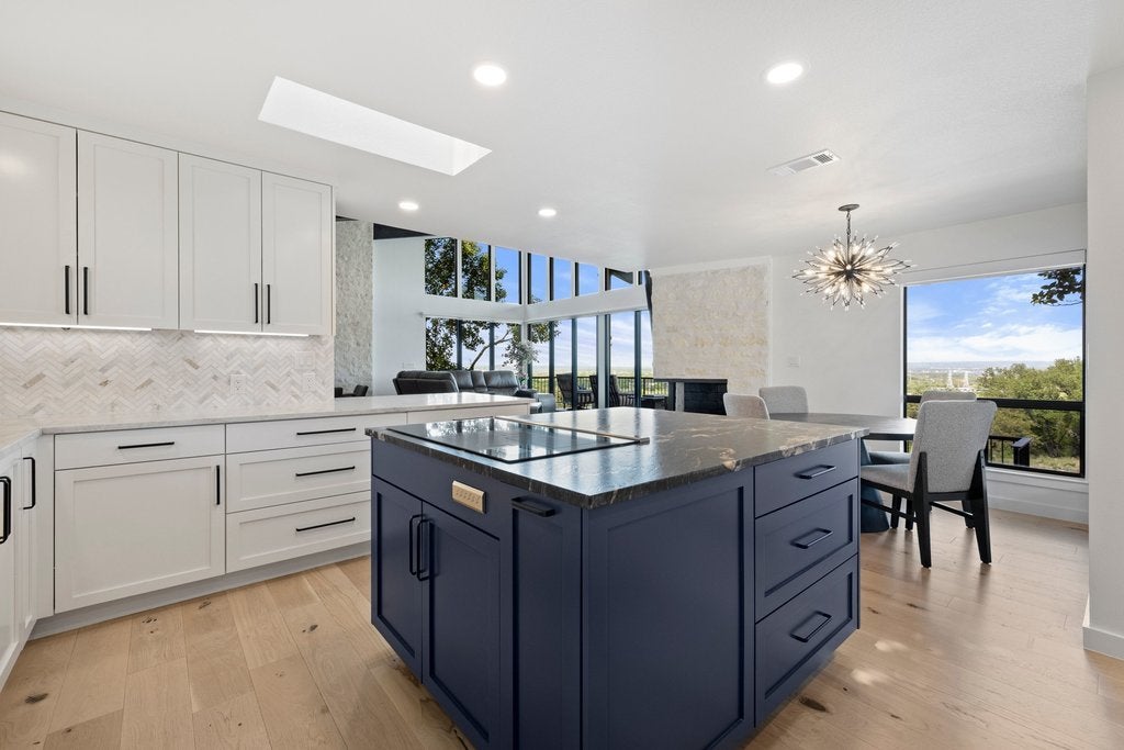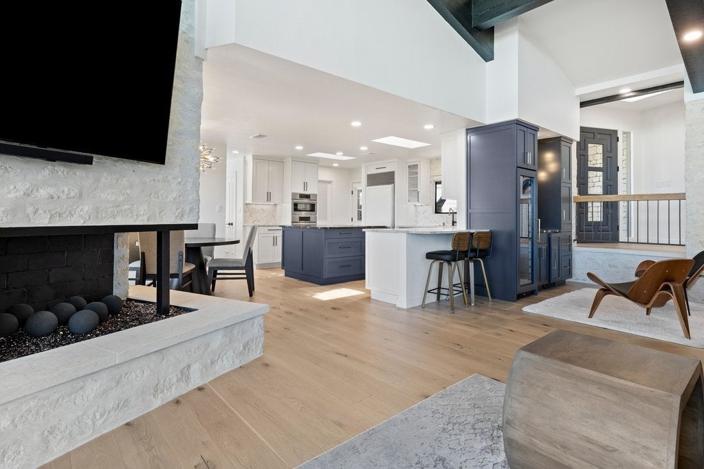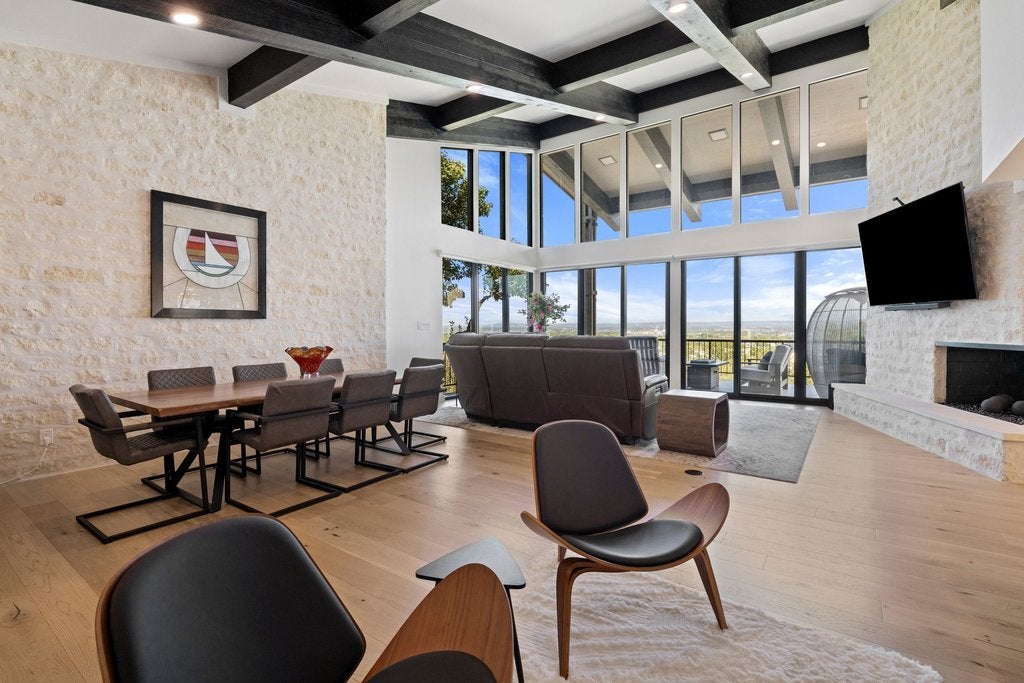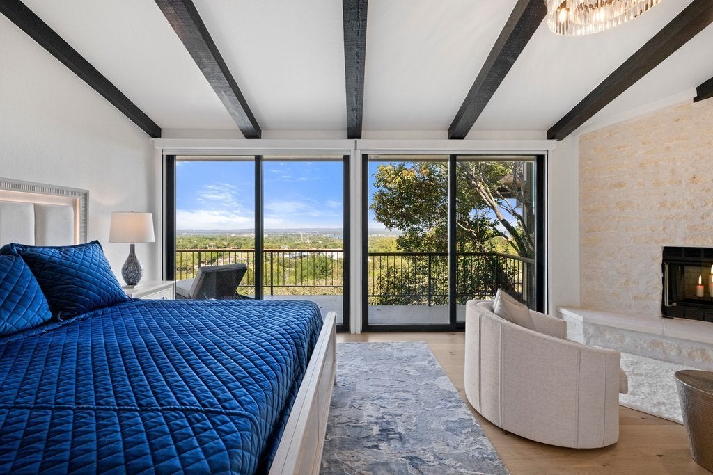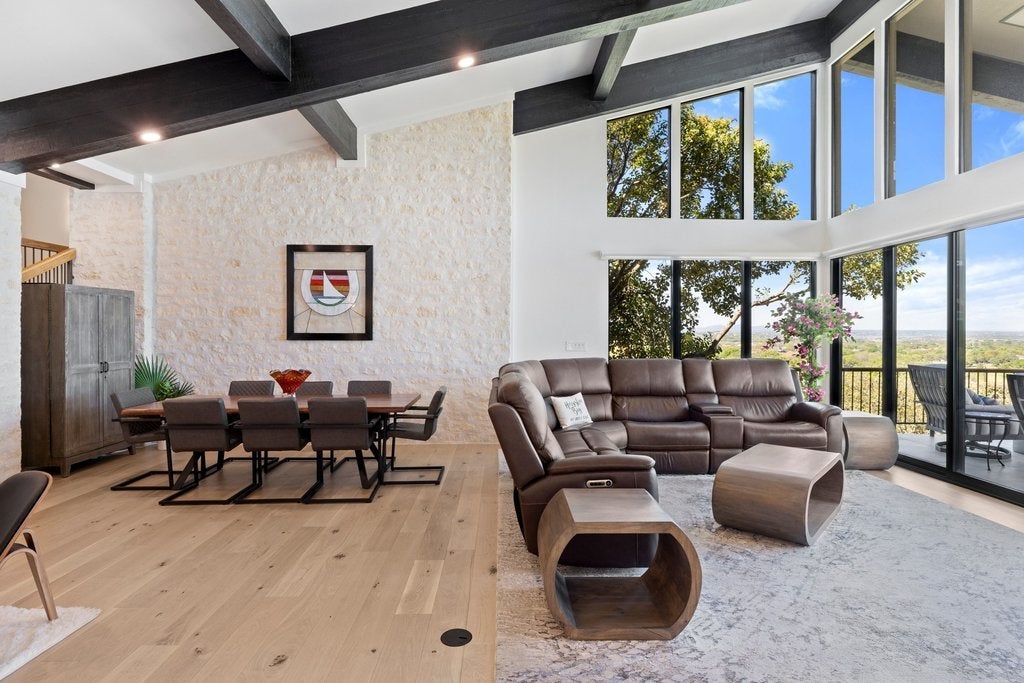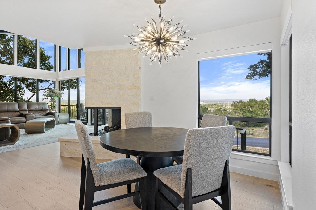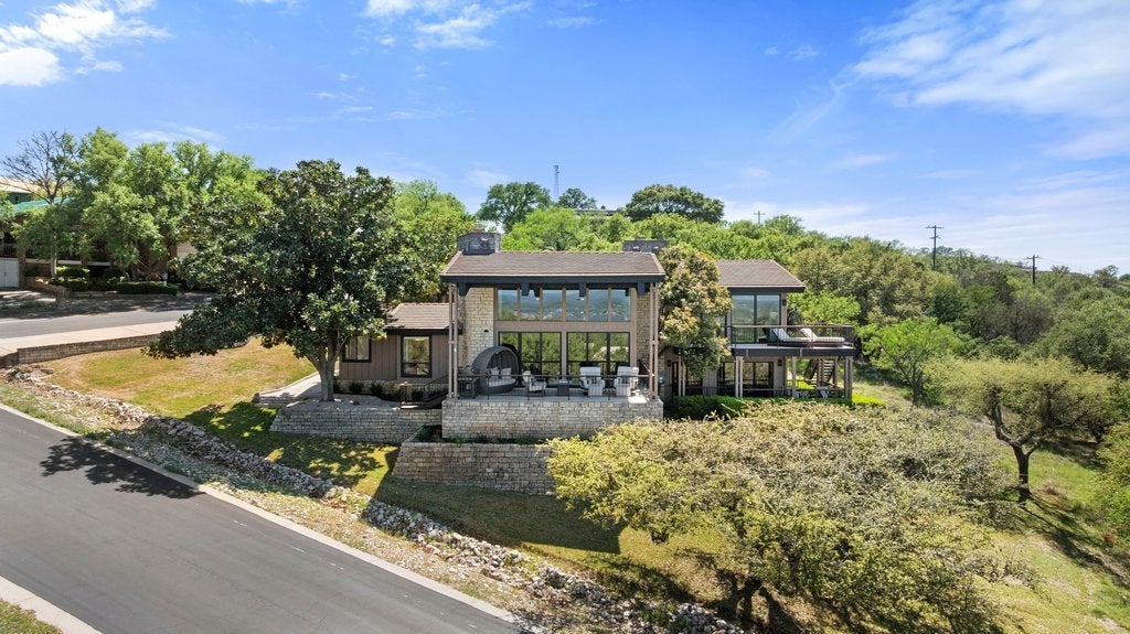 Perched in the hills of Horseshoe Bay, this fully renovated residence captures some of the most breathtaking panoramic views in the area—overlooking Slick Rock Golf Course, Lake LBJ, and Packsaddle Mountain. Walls of glass frame the landscape from nearly every room, creating a seamless connection between indoor living and the surrounding beauty of the Hill Country. The primary suite is a true retreat, featuring its own fireplace, private patio, spa-inspired bath, and generous walk-in closet—all positioned to take full advantage of the spectacular views. Designed for both everyday living and entertaining, the home showcases upscale finishes throughout, open and light-filled living spaces, and a thoughtful layout that maximizes the scenery at every turn. Additional highlights include Bosch appliances, Wolf induction stovetop, Sub-Zero refrigerator, Taj Mahal Quartzite and leathered granite countertops, wet bar, a private sauna, and a two-car garage with additional space for two golf carts—an ideal feature for enjoying the nearby golf and resort lifestyle. Located near the Club at Horseshoe Bay Resort, the home offers convenient access by short car or golf cart ride to both Slick Rock and Summit Rock Golf Courses, Yacht Club, Marina, Spa, Towers Hotel, as well as Whitewater 360 Sports Club & Grill* This is elevated Horseshoe Bay living—where sweeping Hill Country, golf course, and lake views combine with privacy, comfort, and refined design to create a truly exceptional property. Furniture negotiable. *Membership required.