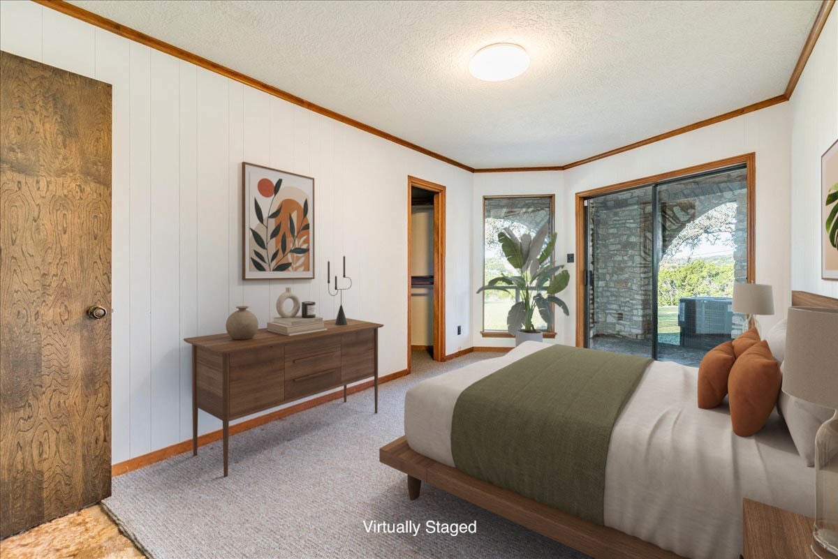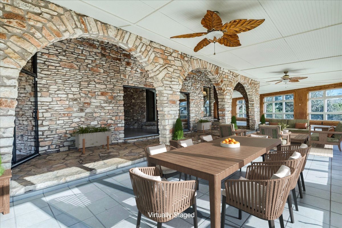 Perched high on a scenic hilltop, this one-of-a-kind wildlife exempt ranchette on 29.1 unrestricted acres blends wide-open Texas land with unmistakable mid-century modern flair. The striking hexagon-shaped home was designed to capture panoramic views from every angle, creating a truly unique architectural statement that feels both timeless and effortlessly cool. Inside, the home is filled with natural light and clean lines that nod to its mid-century inspiration while embracing the relaxed comfort of ranch living. The thoughtful layout takes full advantage of the elevated setting, with windows framing sweeping countryside views that change beautifully with every sunset. Step outside and the magic continues. A hilltop swimming pool offers a front-row seat to the surrounding landscape, perfect for long summer days, sunset swims, and evenings under the stars. The 29.1 acres provide privacy, room to roam, and endless possibilities for recreation, livestock, or future expansion. With no restrictions, the property opens the door to incredible opportunities whether you envision a private retreat, a working ranch, or even bringing your dream winery to life, taking full advantage of the breathtaking hilltop setting and sweeping vineyard-worthy views. This is more than a home. It’s a rare architectural gem where mid-century style meets the freedom and possibilities of Texas countryside living.