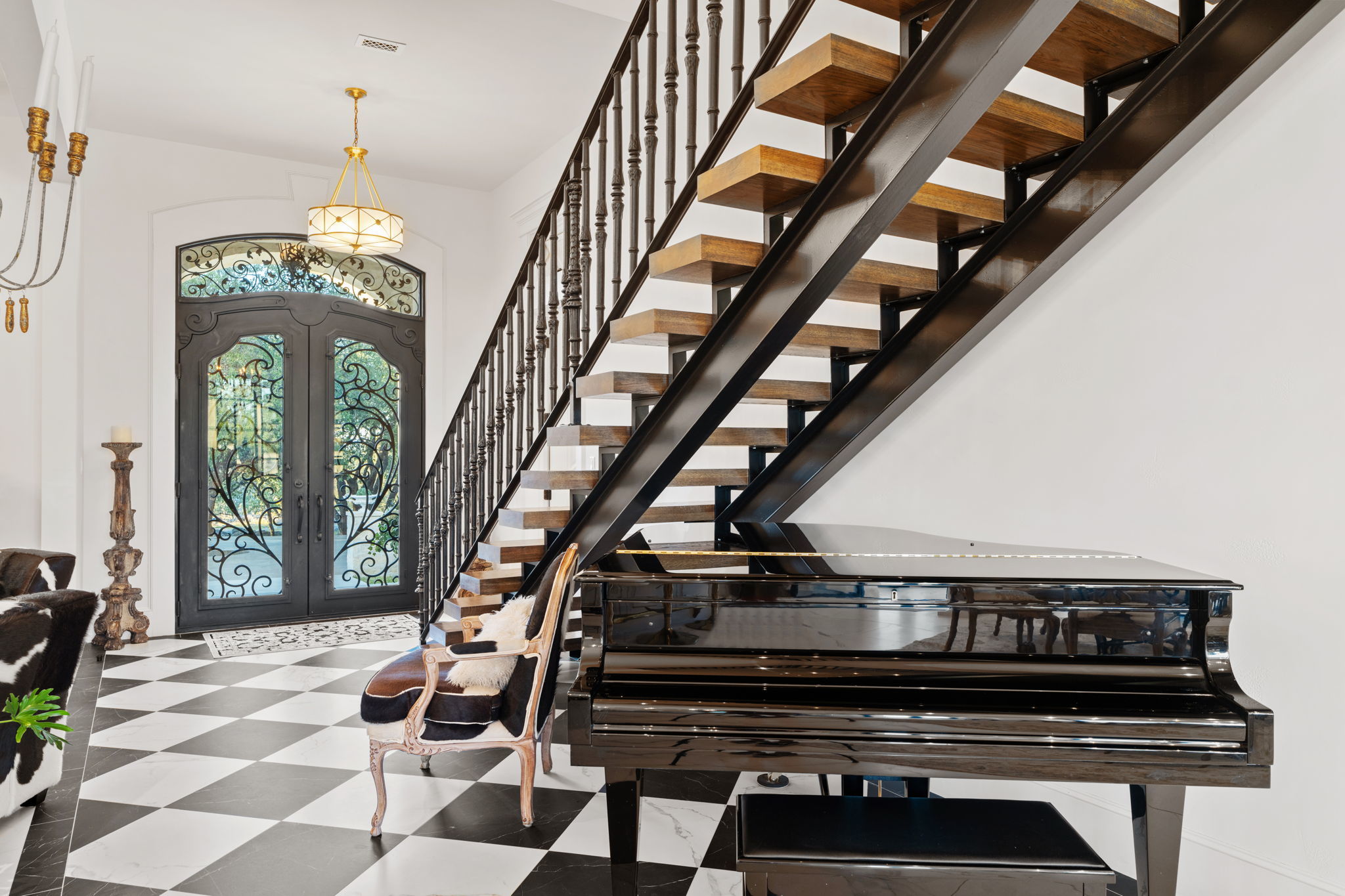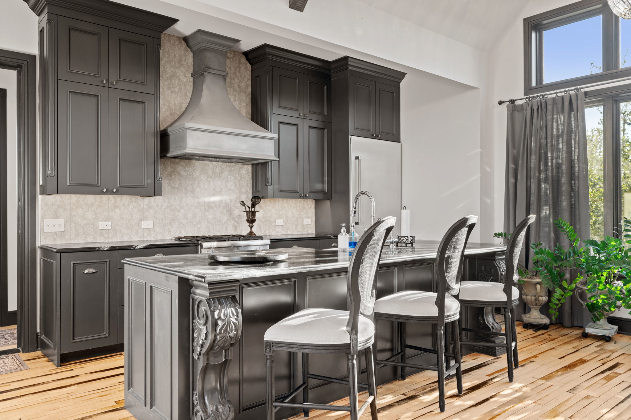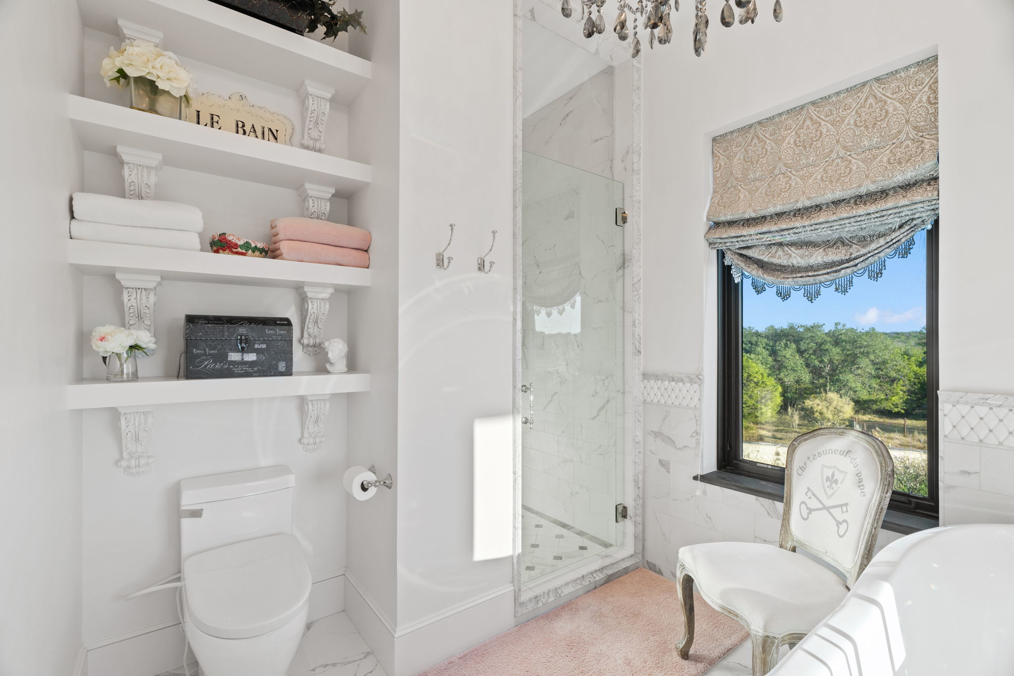 European-Inspired Estate with ICF Construction on 2.75 acres in the Texas Hill Country. Inspired by the countryside villas of Tuscany and Provence, this Hill Country estate blends modern construction with old-world European architecture. Built with Insulated Concrete Form (ICF), the residence offers exceptional strength, security, energy efficiency, and quiet comfort. The limestone compound features a courtyard layout with guest quarters surrounded by private grounds. The limestone masonry frames steel-and-glass entry doors and black casement windows, while quality materials and craftsmanship define every detail. The residence opens to a grand foyer where a dramatic custom staircase, soaring ceilings, large-format porcelain tile, large chandeliers, and two marble fireplaces create an immediate wow moment. The kitchen features Thermador appliances, an Italian ILVE 48" dual-fuel range, two dishwashers, oversized island, butler’s pantry, soapstone countertops, brass fixtures, and marble backsplash. A screened porch, kennel area, outdoor shower, and full bath are on the main level. Take the elevator up to two guest bedrooms, bath, laundry, and an owner’s suite with marble finishes, claw-foot soaking tub, walk-in shower, coffee bar, and dual closets. The carriage-house apartment offers vaulted ceilings, reclaimed historic wood flooring, full Thermador kitchen, bedroom, marble bath, and two walk-in closets. Air-conditioned garage with three bays. Located in Marble Falls near Horseshoe Bay and Lake LBJ.
