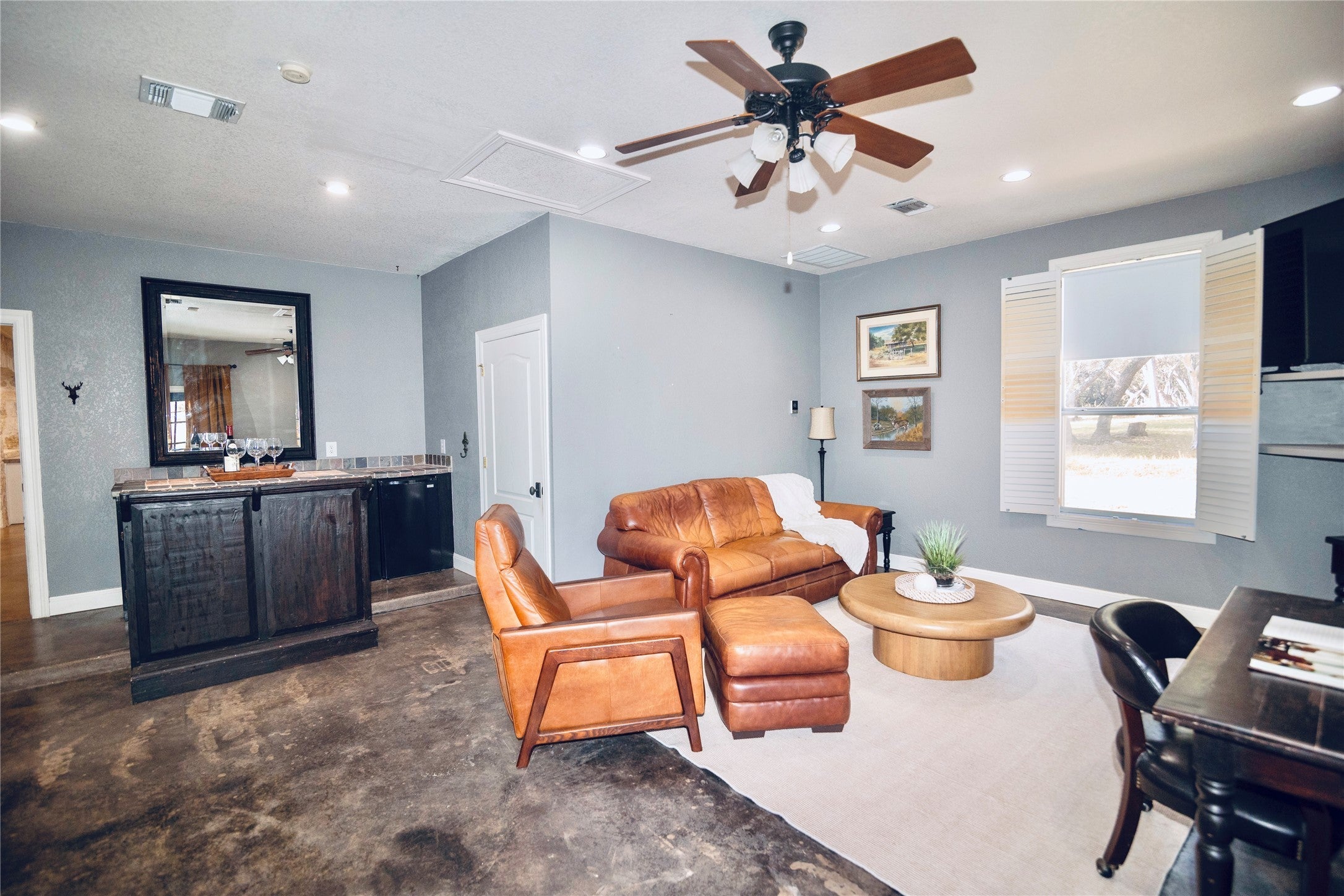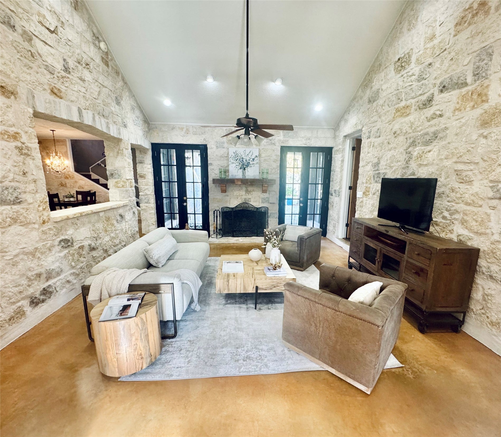*SEE UPGRADES LIST IN ATTACHED DOCS/ LAST PHOTO IN MLS* Gorgeous Hill Country living in SW Austin with your own private backyard oasis featuring an inground pool and expansive entertainer’s patio. This elegant luxury home sits on over 1.5 acres of tree-filled land with a circular driveway that forks to the back of the property, where you’ll find a detached two-car garage and spacious driveway. Stained concrete flooring, recessed lighting, and a Texas-rustic-meets-modern-chic design add to the charm. The kitchen is the heart of the home, built for the home chef with a center prep island, wraparound bar seating, and a spacious dining area under an ornate chandelier. Enjoy sleek stainless steel appliances, a range set in a stone grotto, windowed cabinetry stacked to the ceiling, and extensive built-in pantry storage. Stay connected via a stone-framed opening to the living room. The main floor also hosts a deluxe primary suite with a spa-like bath and dual walk-in closets, plus a bonus flex living area with a bar, both with walk-out access to the back. Upstairs you will find two well-sized secondary bedrooms, a large full bath, and a home office with a charming terrace. Outdoor living shines with a sprawling fenced courtyard, sparkling pool, shaded gathering areas, and gardens. Convenient to retail, dining, and HEB at Belterra. Zoned to Baldwin Elementary, Small MS, and Bowie HS. No HOA, low 1.56% tax rate. Easy access to 290 and just 18 miles to Downtown Austin.