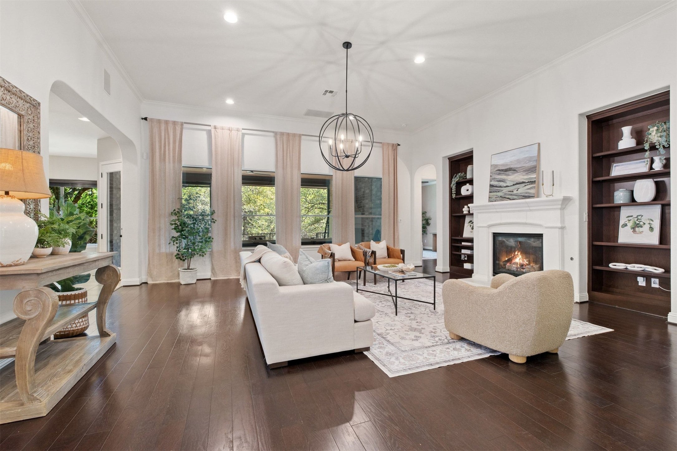 Set within the Ranch At Brushy Creek, there is a home that doesn’t just sit on its lot, it belongs to it. From the moment you pull into the drive, framed by mature trees and landscaping so manicured it feels like a private park, you realize this is a property maintained with a rare level of pride. The journey begins under an elegant rotunda entry that gracefully branches off into the home’s various wings. To your left, 2 guest bedrooms offer a quiet retreat for visitors, while to your right, a dedicated home office provides a space for working from home. As you move further in, the home unfolds into a breathtaking open-concept living area. The living room is nothing short of dreamy. A fireplace anchors the space, flanked by built-in bookshelves, but the true masterpiece is the wall of windows. They frame the lush greenbelt behind the property, flooding the wood flooring with natural light. Adjacent, the kitchen is a testament to the entertainer’s spirit with a large granite island, gas cooktop, double ovens, and a walk-in pantry. The breakfast nook, drenched in sun, offers a cheerful spot for morning coffee while watching the birds in the canopy outside, while the formal dining room stands ready for your next dinner party. The primary suite is your own private haven, with windows that invite the greenery indoors. Its ensuite bath is an oasis, featuring a soaking tub, separate vanities, a step-in shower, and a walk-in closet. However, the true "wow" factor lies just beyond the back door. The elevated patio is an outdoor living room in its own right, complete with a fireplace and an outdoor kitchen. Steps lead you down to a deck nestled among the trees. Zoned for Round Rock ISD and located just a short walk from the Brushy Creek Hike and Bike trails, this home offers a lifestyle of quiet luxury and total convenience. Between the high-quality finishes and the unrivaled location near Parmer Lane, you simply won't find a more perfect place to call home.