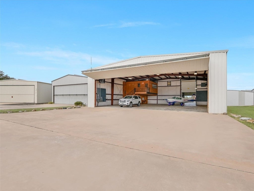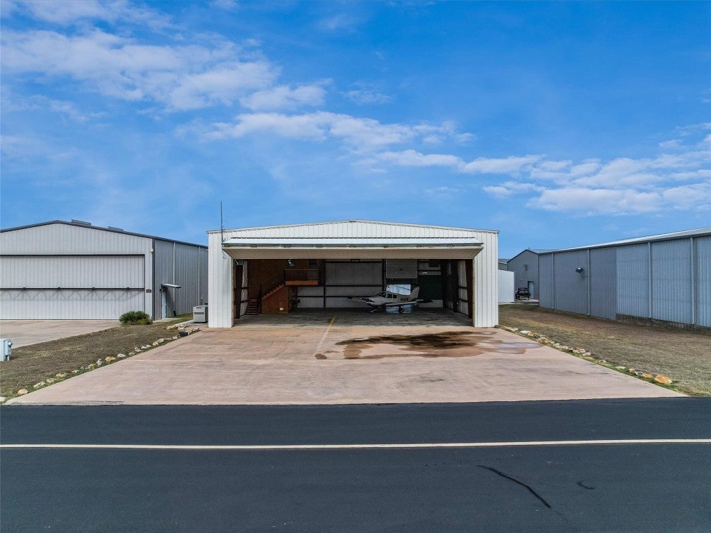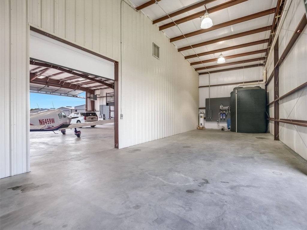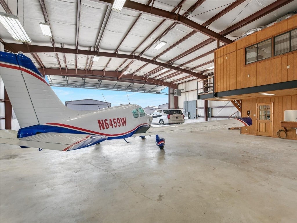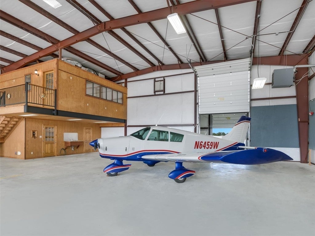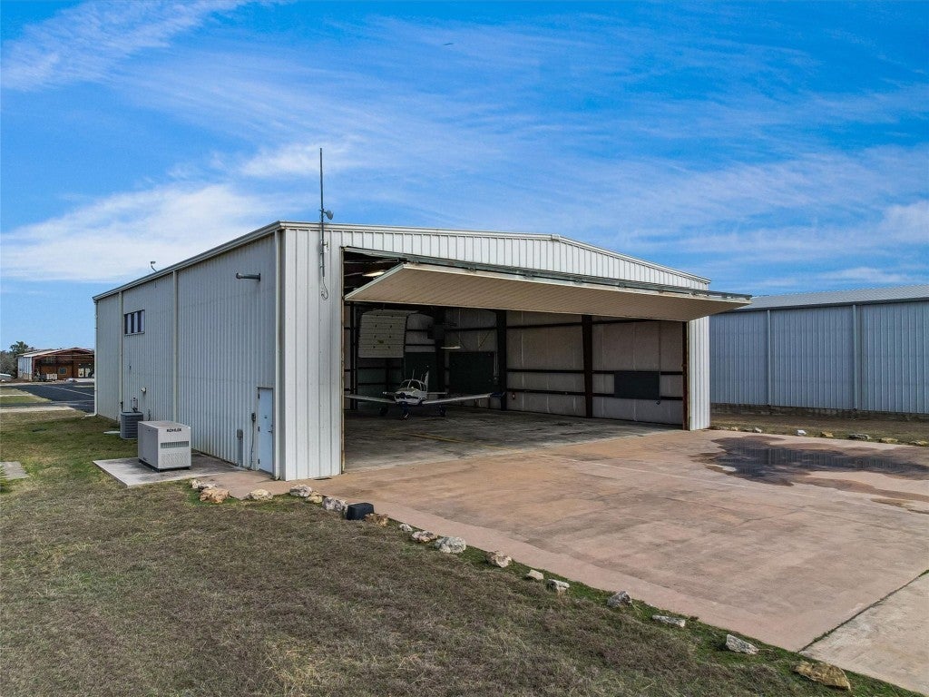 Welcome to 108 Mooney Circle, the epitome of aviation luxury nestled within the vibrant Spicewood 88R airport - a coveted gem in Central Texas. This exquisite airplane hangar is a haven for aviation enthusiasts, boasting dimensions of 60’ x 80’, and featuring comprehensive insulation and heating for optimum comfort. The prominent Schweiss Bi-fold door ensures easy access, while inside, you'll find an array of luxurious amenities designed for the discerning owner. Step inside the ground floor where practicality meets elegance. A fully equipped kitchen awaits, adorned with stainless steel KitchenAid appliances and tasteful granite countertops, providing both functionality and refined aesthetics. Adjacent to this culinary haven, a full bathroom ensures convenience and ease for pilots and guests alike. Ascend to the thoughtfully constructed upstairs apartment, where modern comfort reigns supreme. Equipped with HVAC, this space assures a climate-controlled retreat, complete with a spacious full bath and a walk-in closet, allowing for leisurely living with a touch of elegance. The property's innovation extends to its unique features, including a robust 5000-gallon filtered rainwater tank, delivering sustainability in harmony with Texas's natural beauty. Two buried 500-gallon propane tanks and a large, reliable generator underscore the emphasis on resilience and self-sufficiency. Beyond the structure lies the opportunity to immerse oneself in the illustrious Hill Country aviation community, where camaraderie and shared passion take flight. At 108 Mooney Circle, you're not just acquiring property; you're gaining access to a lifestyle filled with adventure and like-minded individuals. This remarkably equipped hangar is a rare chance to blend luxury living with aviation, offering an unparalleled portal to the skies.
