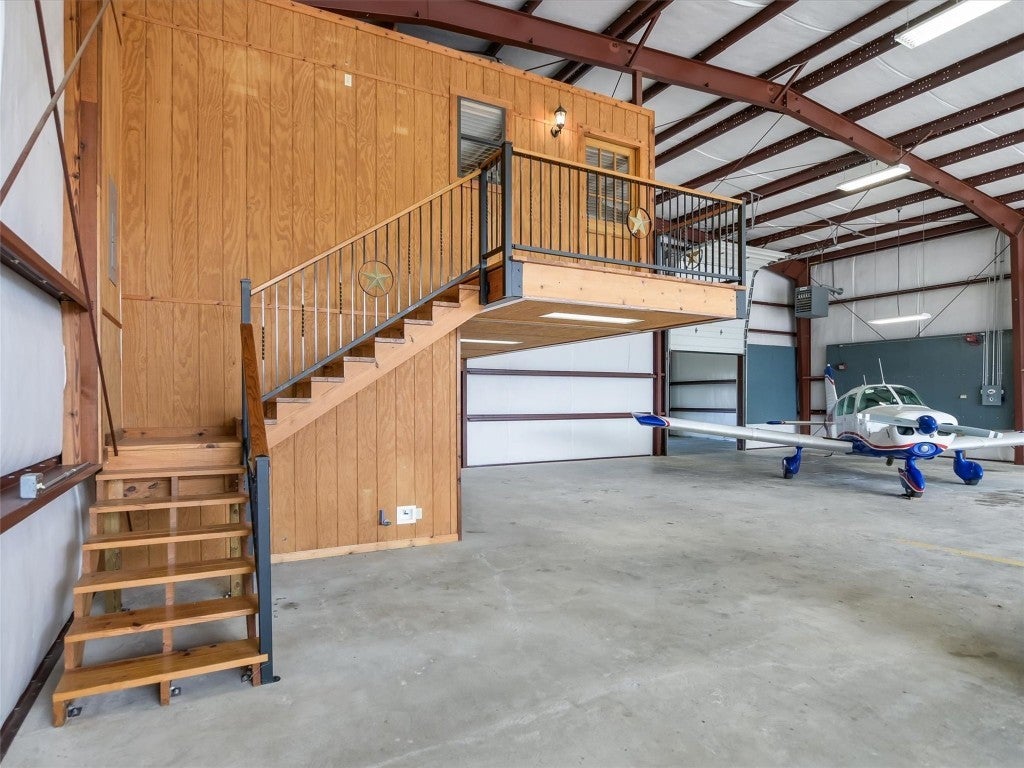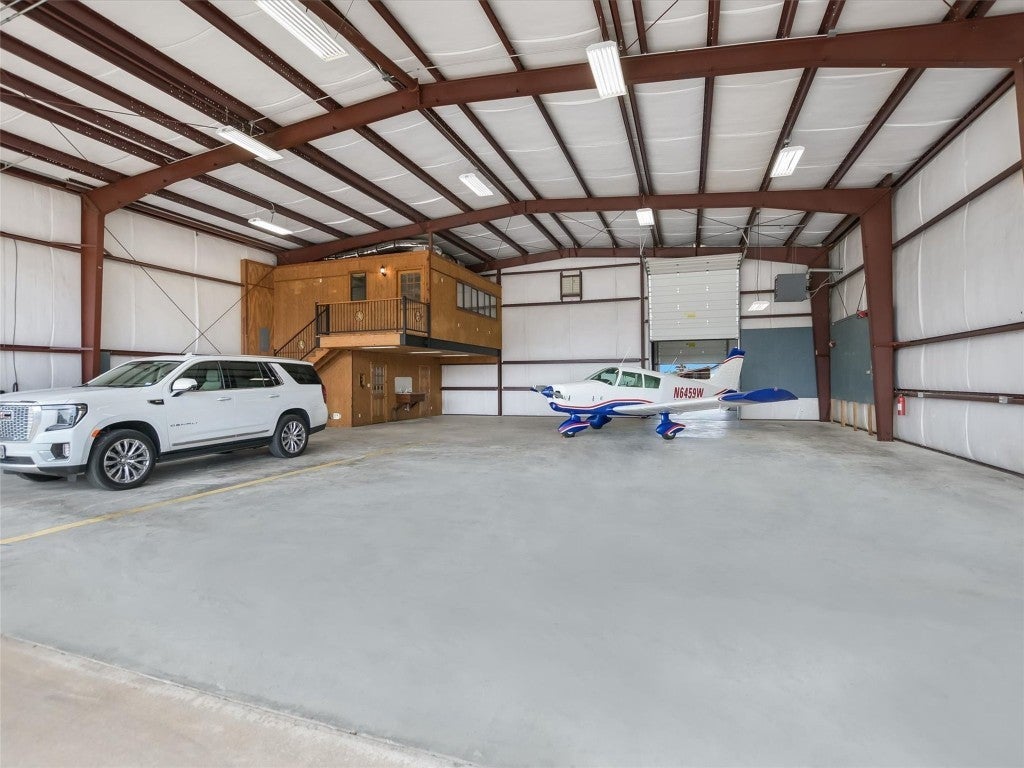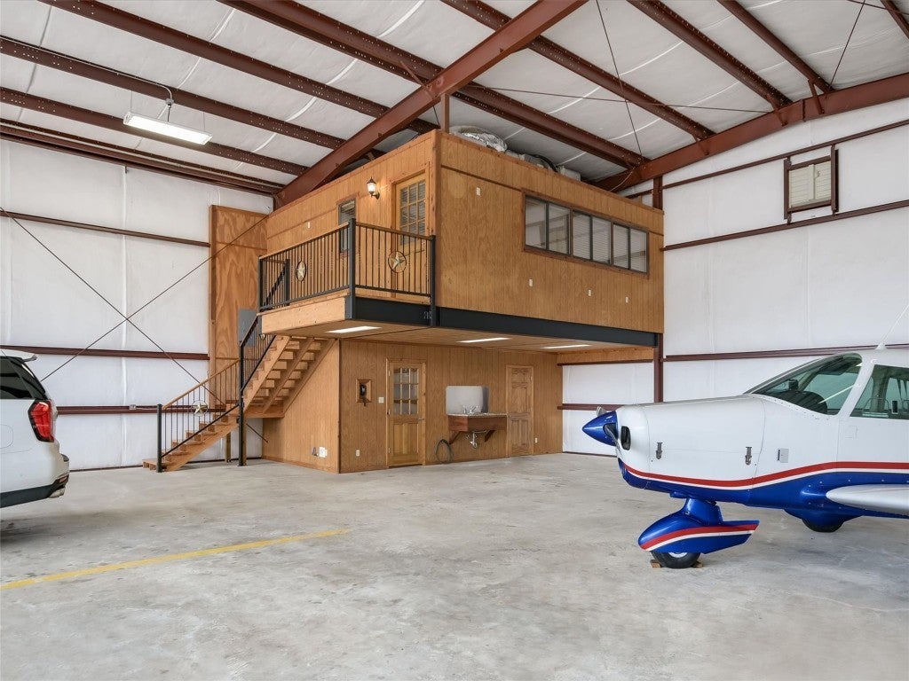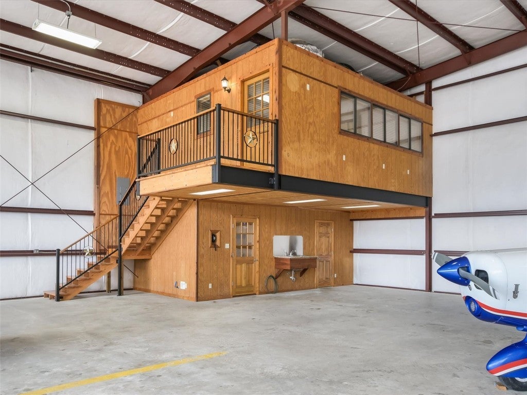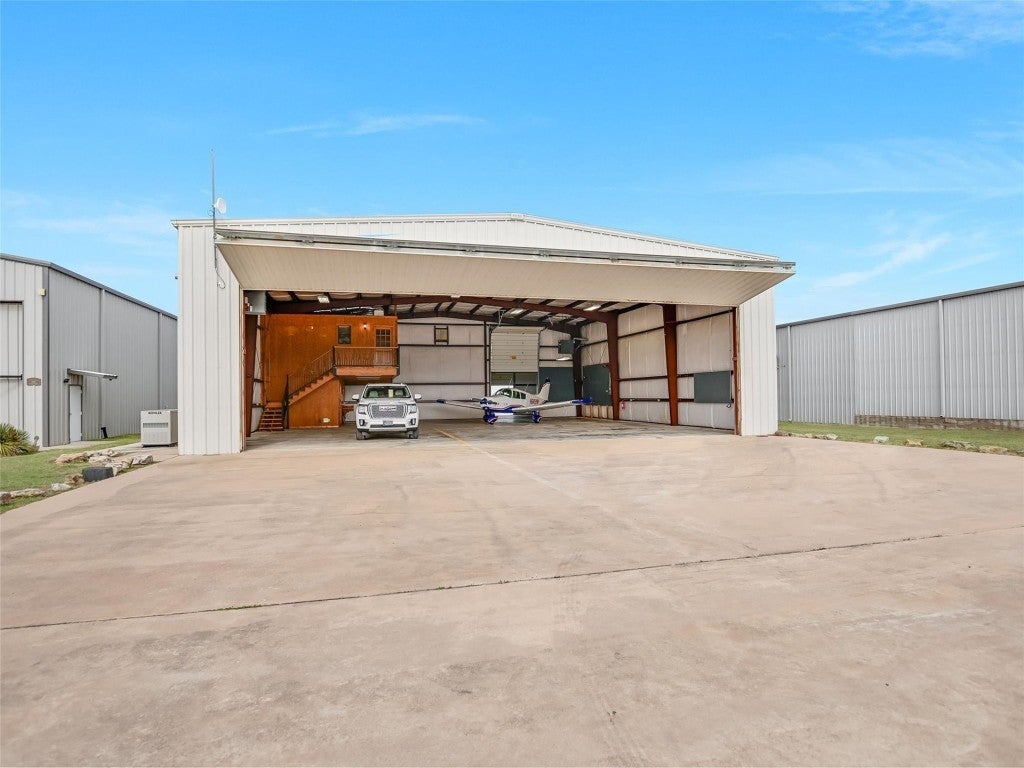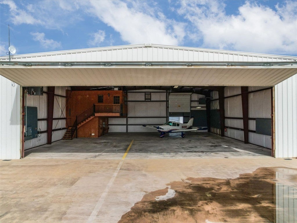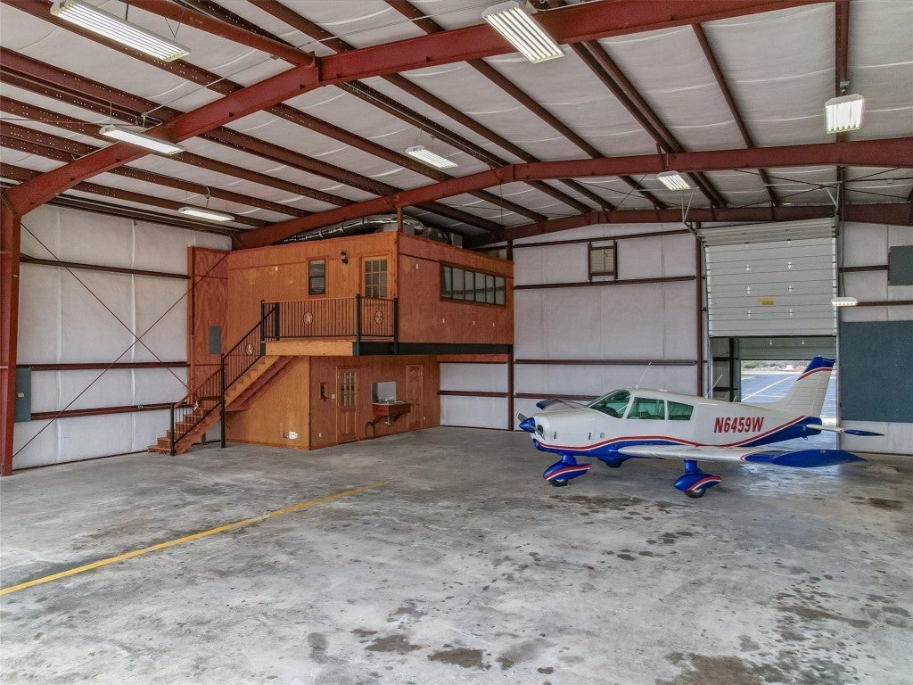 Welcome to 108 Mooney Circle, the epitome of aviation luxury nestled within the vibrant Spicewood 88R airport - a coveted gem in Central Texas. This exquisite airplane hangar is a haven for aviation enthusiasts, boasting dimensions of 60’ x 80’, and featuring comprehensive insulation and heating for optimum comfort. The prominent Schweiss Bi-fold door ensures easy access, while inside, you'll find an array of luxurious amenities designed for the discerning owner. Step inside the ground floor where practicality meets elegance. A fully equipped kitchen awaits, adorned with stainless steel KitchenAid appliances and tasteful granite countertops, providing both functionality and refined aesthetics. Adjacent to this culinary haven, a full bathroom ensures convenience and ease for pilots and guests alike. Ascend to the thoughtfully constructed upstairs apartment, where modern comfort reigns supreme. Equipped with HVAC, this space assures a climate-controlled retreat, complete with a spacious full bath and a walk-in closet, allowing for leisurely living with a touch of elegance. The property's innovation extends to its unique features, including a robust 5000-gallon filtered rainwater tank, delivering sustainability in harmony with Texas's natural beauty. Two buried 500-gallon propane tanks and a large, reliable generator underscore the emphasis on resilience and self-sufficiency. Beyond the structure lies the opportunity to immerse oneself in the illustrious Hill Country aviation community, where camaraderie and shared passion take flight. At 108 Mooney Circle, you're not just acquiring property; you're gaining access to a lifestyle filled with adventure and like-minded individuals. This remarkably equipped hangar is a rare chance to blend luxury living with aviation, offering an unparalleled portal to the skies.