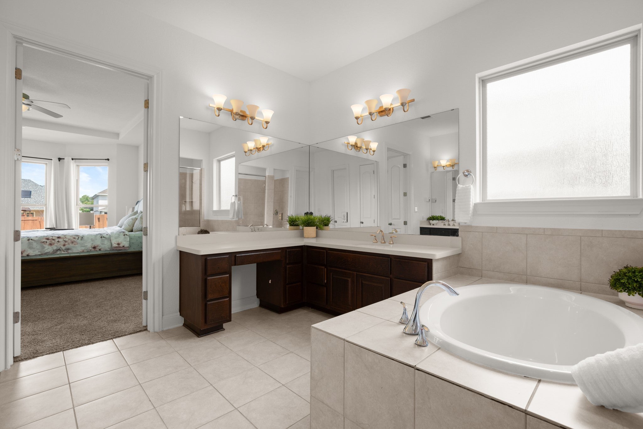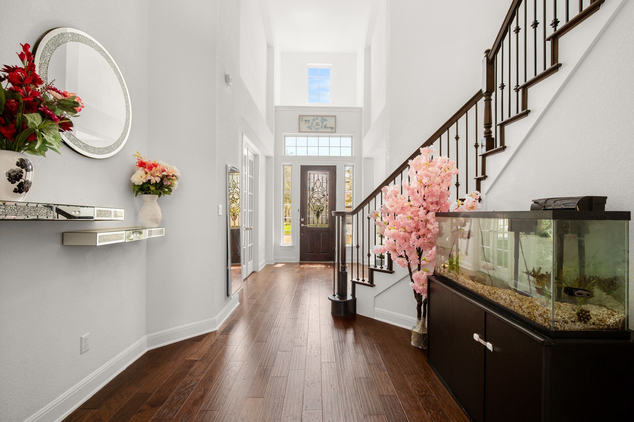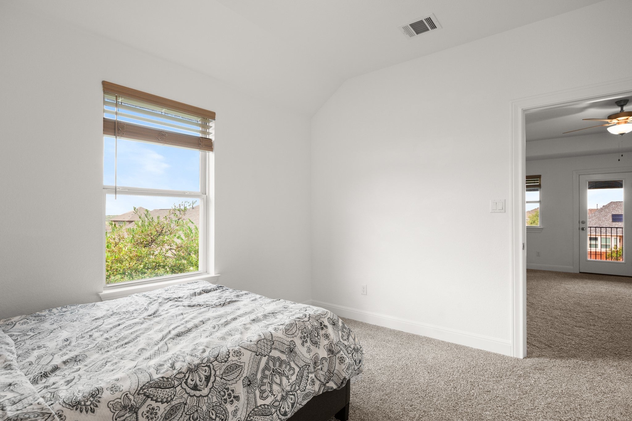 The Bluffs at Crystal Falls – Where Luxury Meets Lifestyle. Tucked away on a quiet cul-de-sac in the sought-after Bluffs at Crystal Falls, this beautifully designed 5-bedroom, 4.5-bath home blends modern elegance with everyday comfort. Set on a spacious 0.3-acre lot, the backyard offers a blank canvas ready for your dream outdoor retreat. The entry foyer is framed by a private home office with French doors and an elegant formal dining room, leading to a dramatic rotunda with a grand staircase rising to the second floor. At the heart of the home, a stunning two-story great room features soaring ceilings, stacked windows that flood the space with natural light, and a cozy corner fireplace. The open layout flows seamlessly into the gourmet island kitchen, complete with timeless cabinetry, Omega Stone quartz countertops, built-in stainless steel appliances, cafe counter seating, a pantry, and a generous dining area overlooking the backyard. The main floor includes a secluded primary suite and a guest bedroom, both with ensuite baths - ideal for guests or multi-generational living, plus a convenient half bath. Upstairs offers three additional bedrooms, two full baths, a spacious game room, and a fully equipped media room with screen and projector that convey. An upgraded upstairs balcony adds even more value and charm. Energy-efficient solar panels provide immediate cost savings, while additional upgrades include a whole-home water filtration system, under-sink RO system, and automatic irrigation with rain sensor and wireless monitoring. Top rated Leander ISD schools for educational excellence. Residents enjoy Crystal Falls’ exceptional amenities, including two resort-style pools, tennis courts, an 18-hole disc golf course, fishing pond, scenic trails, and more - all with easy access to major roadways, dining, shopping, and entertainment. This isn’t just a home - it’s a lifestyle. Schedule your showing today!