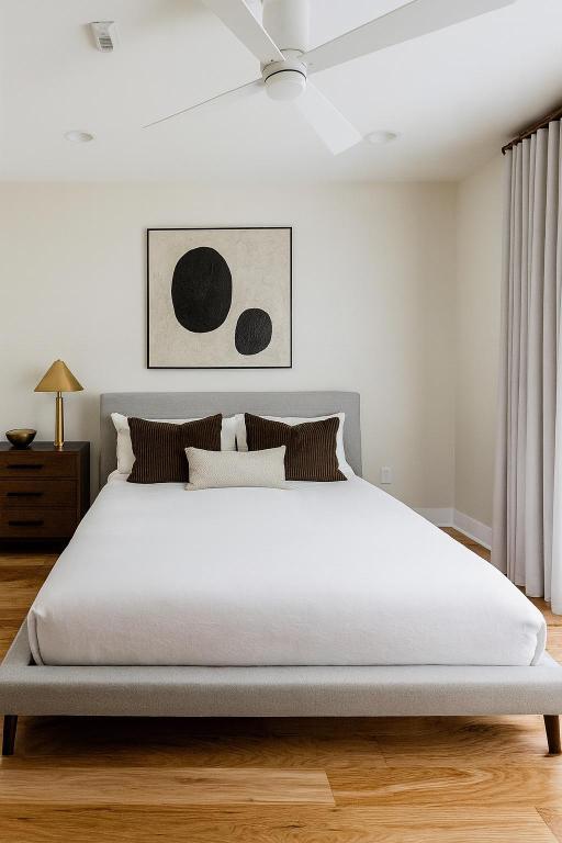 One of only three first-floor units with a huge raised patio and direct access to the sidewalk. Very convenient as you do not have to go through the building main entrance. Beautiful kitchen with quartz counters, stainless steel appliances, upgraded backsplash and cabinet pulls. Hardwood floors throughout. Custom light fixtures. Bright and open corner unit with an abundance of windows and natural light. One reserved parking space in the garage. Stainless steel washer and dryer conveys. Celia's Court is one of the newest downtown mid-rises. Walk to everything! Dining, shopping, entertainment, it is all at your fingertips. Downtown luxury living at its finest! Leased until 7/31/25 at $2900/ month but tenants are willing to move out early.