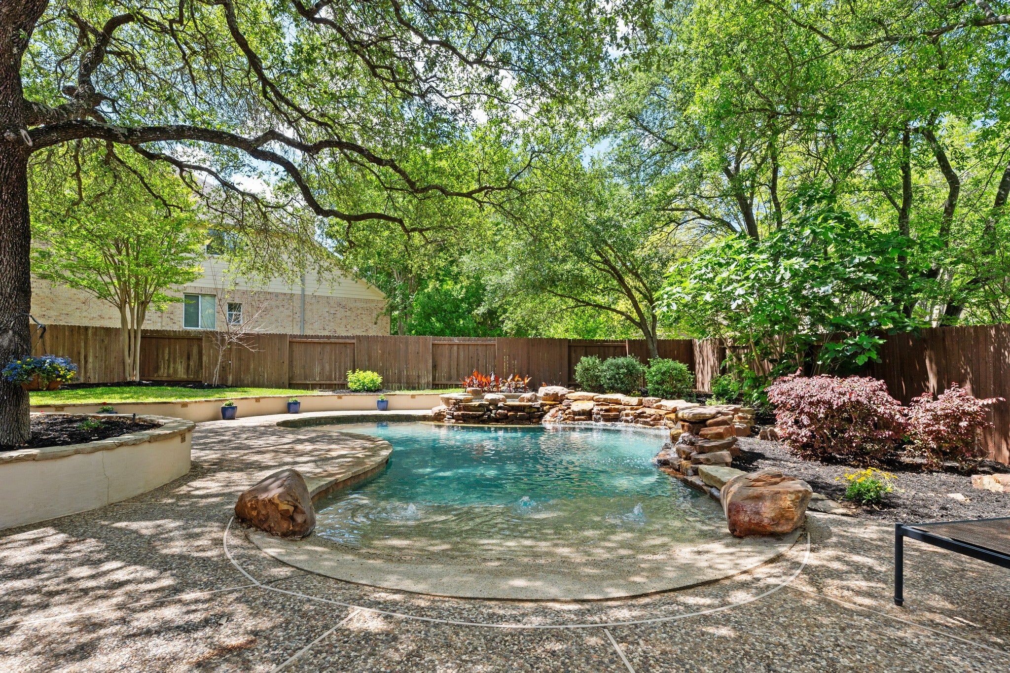 Something special just landed in Steiner Ranch and it delivers a truly one-of-a-kind backyard experience, a highly sought-after floor plan, and a quiet cul-de-sac location. The outdoor living space isn’t just a showstopper – it’s an experience. Featuring a lagoon-style pool with beach entry, a spa and cascading waterfalls. The outdoor kitchen is a pit-master’s dream with a built-in BBQ grill, Big Green Egg, sink, and a custom-built pizza oven! All nestled beneath a canopy of majestic oak trees that provide shade, privacy, and ambiance. This backyard is unlike anything else in the neighborhood. The inside is great too! The spacious 5-bedroom, 3.5-bath layout offers 3,782 square feet of well-planned living space, including a private home office, custom shutters, recessed lighting, hardwood flooring, a large game room, plus an additional flex room popular for homework space or workout studio. Located within walking distance to both the elementary and middle schools, and access to all the incredible amenities Steiner Ranch is known for, including miles of hiking trails with breathtaking views, multiple community parks, playgrounds and pools, tennis and pickleball courts, neighborhood events, a dog park, and the exclusive Steiner Ranch Lake Club on Lake Austin. This home is a true Steiner Ranch standout!