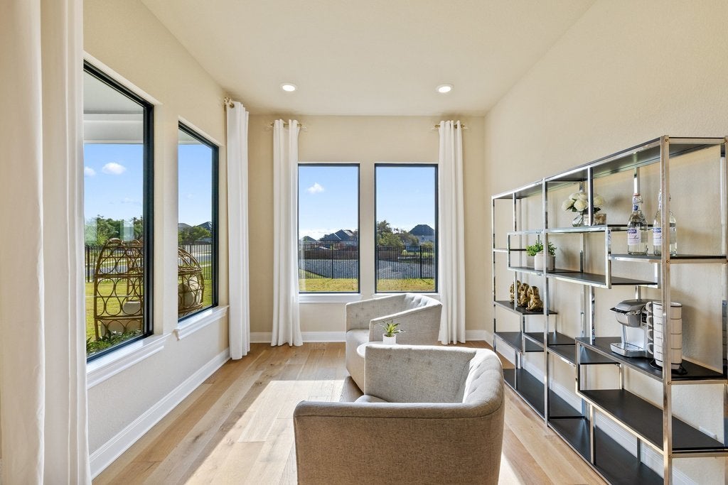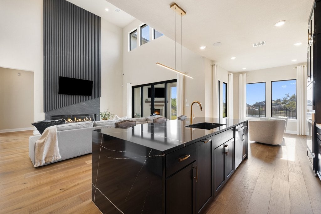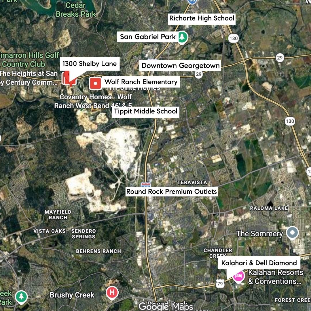 Spacious luxury home in Georgetown’s Heights at San Gabriel offering nearly 5,000 sqft, 5 living areas, and a resort-style layout ideal for entertaining, multi-generational living, or working from home. This upgraded model home showcases designer finishes, soaring two-story ceilings, and a light-filled open-concept layout designed for both everyday living and hosting. With 4 bedrooms, 3.5 bathrooms, and a 3-car garage on a large corner lot, this home offers the space and flexibility today’s buyers are searching for. The main living area features dramatic stacked windows and a striking modern fireplace, flowing seamlessly into a covered outdoor living space with its own fireplace perfect for year-round indoor-outdoor entertaining. The chef’s kitchen is designed to impress, featuring waterfall countertops, a large center island, and an expansive butler’s pantry with double-sided cabinetry ideal for hosting gatherings or creating a functional prep space. The primary suite on the main level offers a private retreat with a custom wood ceiling and a spa-inspired bathroom, including a freestanding soaking tub, walk-in shower, and an oversized closet with direct laundry access. Additional main-level spaces include an oversized study, formal dining and an elegant parlor with a built-in wet bar, wine storage, and beverage refrigerator perfect for entertaining or relaxing evenings at home. Upstairs, enjoy unmatched flexibility with a homework station, media room, game room and 3 additional bedrooms with 2 full bathrooms. Located in the Heights at San Gabriel, residents enjoy access to parks, playgrounds, sports courts, and community amenities offering a lifestyle that combines space, comfort, and convenience in one of Georgetown’s most desirable neighborhoods. Ideal for buyers seeking a spacious, move-in-ready luxury home with room to entertain, work from home, and grow. All within close proximity to Georgetown, Wolf Ranch, and major commuter routes.