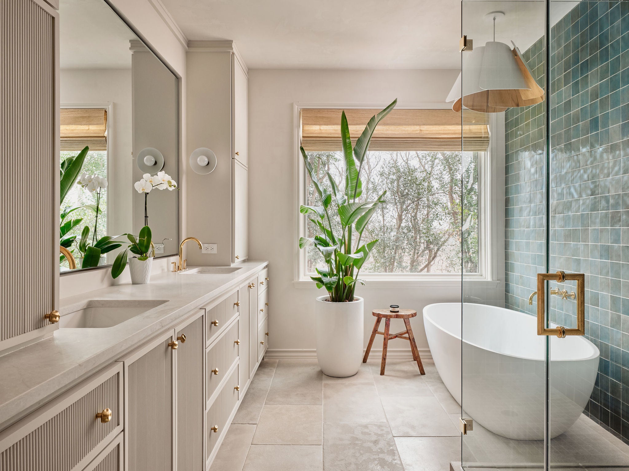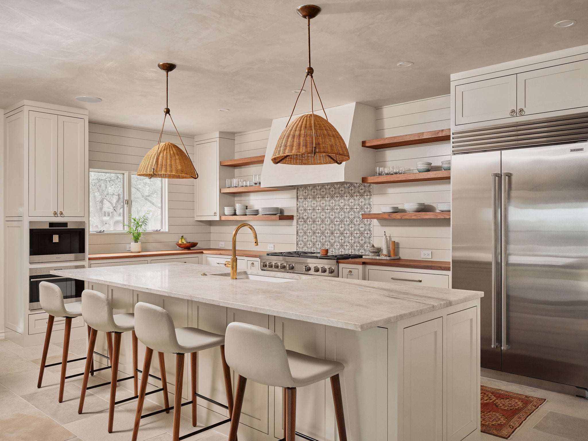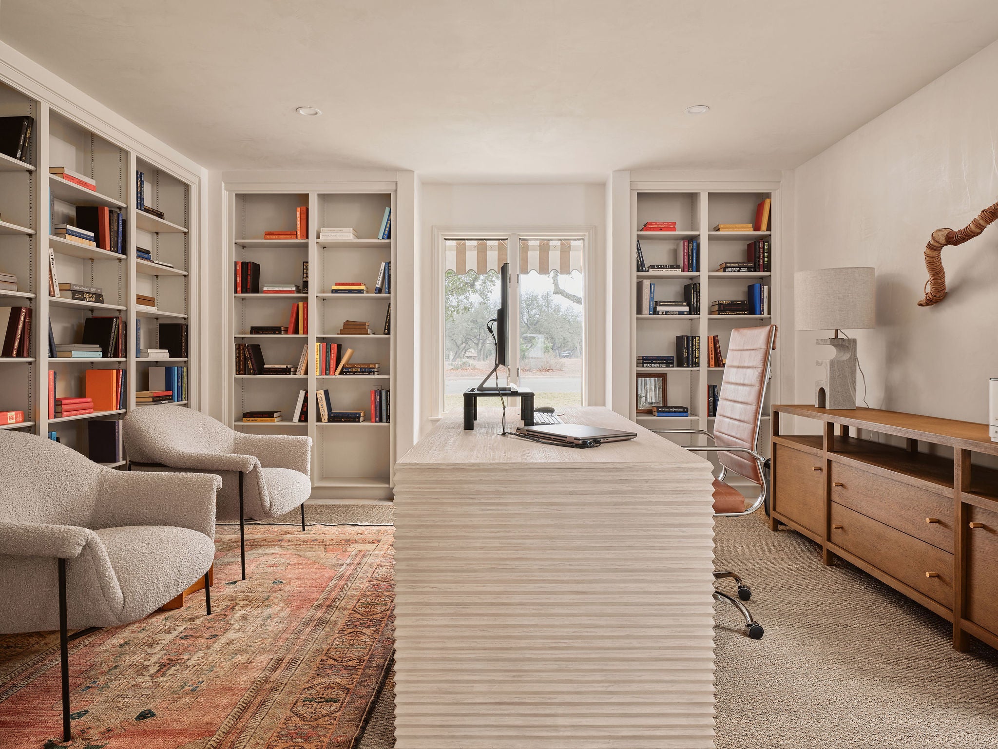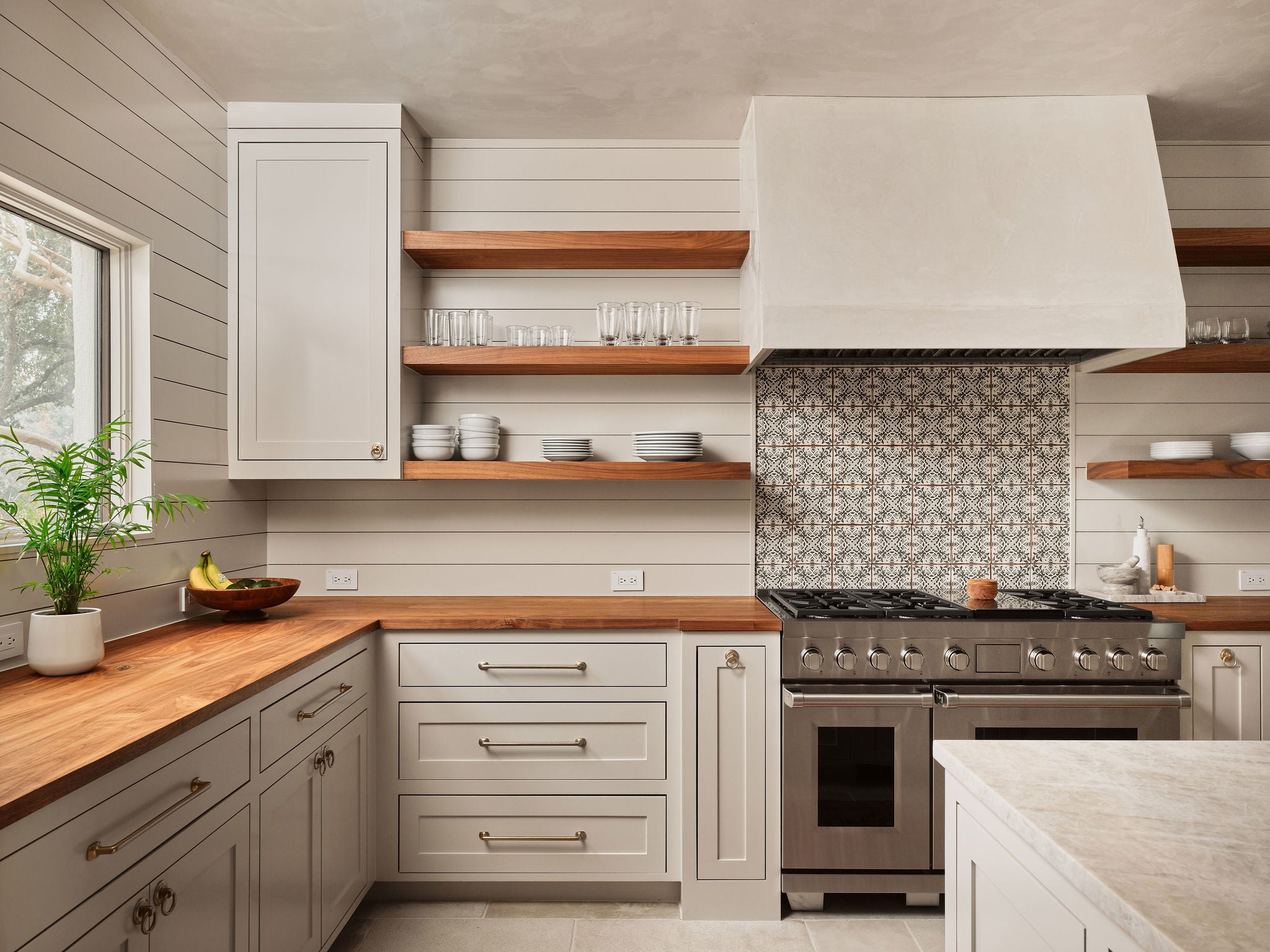Tranquil living awaits in this meticulously renovated four-bedroom, three-and-a-half-bathroom home featuring significant architecture, designer interior finishes, hill country views, and over a half-acre of landscaped, poolside outdoor space in Austin’s desirable Highland Park neighborhood. Towering trees, custom striped awnings and an arched entry welcomes you into this sanctuary filled with thoughtful details. Handsome plaster walls, hand-carved interior doors, and Moroccan limestone flooring effortlessly work together exuding a warm and inviting palate. Whether entertaining larger gatherings or more intimate settings, the layout works perfectly. Upon entering the foyer, navigate to the formal dining room, the book lined study/library, or the expansive great room. Rich walnut countertops, woven rattan pendants, open shelving and a gathering center island define the kitchen, which seamlessly flows to the family room with a sitting fireplace and bar center complete with hand cut tiles. Head outdoors where arched openings, beamed ceilings and patinaed Saltillo tile open to the private back yard showcasing the views. A must see is your own nature trail down to the ravine at the back of the property. The home’s accommodations begin with the relaxing main-floor owner’s suite overlooking the verandas and private setting. On the upper level, you’ll find three additional secondary bedrooms, two bathrooms and two separate retreats. Enjoy either the impressive barrel-vaulted living space or head out to the expansive balcony to take in the views. A truly special property offering privacy, location and an unparalleled renovation.