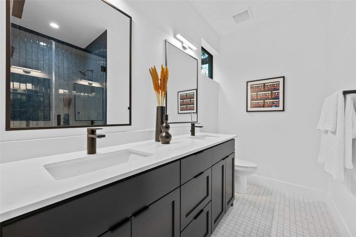 Gorgeous Sett Studio energy efficient new construction home in highly desirable 78704 zip w/GARAGE & HUGE yard! This home comes FULLY FURNISHED which makes it great for investors who want to use it as an Airbnb & owner occupants who want the ease of a turnkey move-in ready home! DREAM LOCATION for those looking for walkability just steps to Radio Coffee & Beer, where you can grab coffee & get some work done or end the day with a beer & live music. 78704 is Austin's highly desired zip for walkability with parks including Zilker Park, Lady Bird Lake trail, Barton Creek greenbelt, Barton Springs natural spring fed pool, shops, restaurants, live music, bars & more! The striking black exterior sets the tone for the stylish interior, where floor-to-ceiling windows fill the home with natural light, highlighting French white oak floors, modern fixtures, and 10' ceilings. Main Level: The open-concept living area features a chefs kitchen with black leatherized granite countertops, a spacious island, gas range, & floor-to-ceiling cabinetry for ample storage. The kitchen seamlessly connects to the dining area, perfect for hosting gatherings. Upper Level: Two ensuite bedrooms offer privacy & comfort. Outdoor Retreat: The fully fenced backyard with mature trees is your private sanctuary, connected to the living area by floor-to-ceiling glass sliderS, the perfect space for entertaining or relaxing. Prime Location: Minutes from Austin hotspots like Radio Coffee & Beer, Dans Hamburgers, Easy Tiger & Barton Creek Greenbelt, this home offers easy access to downtown Austin's dining, shopping & outdoor activities. No HOA fees! *Information deemed reliable but not guaranteed. Buyer to independently verify all information including but not limited to square footage, lot size, restrictions, schools, taxes, etc. Buyer to verify city of Austin STR restrictions. Condo docs will be prepared if units sold separately. Taxes are just an estimate taking $720k x 2025 tax rate.