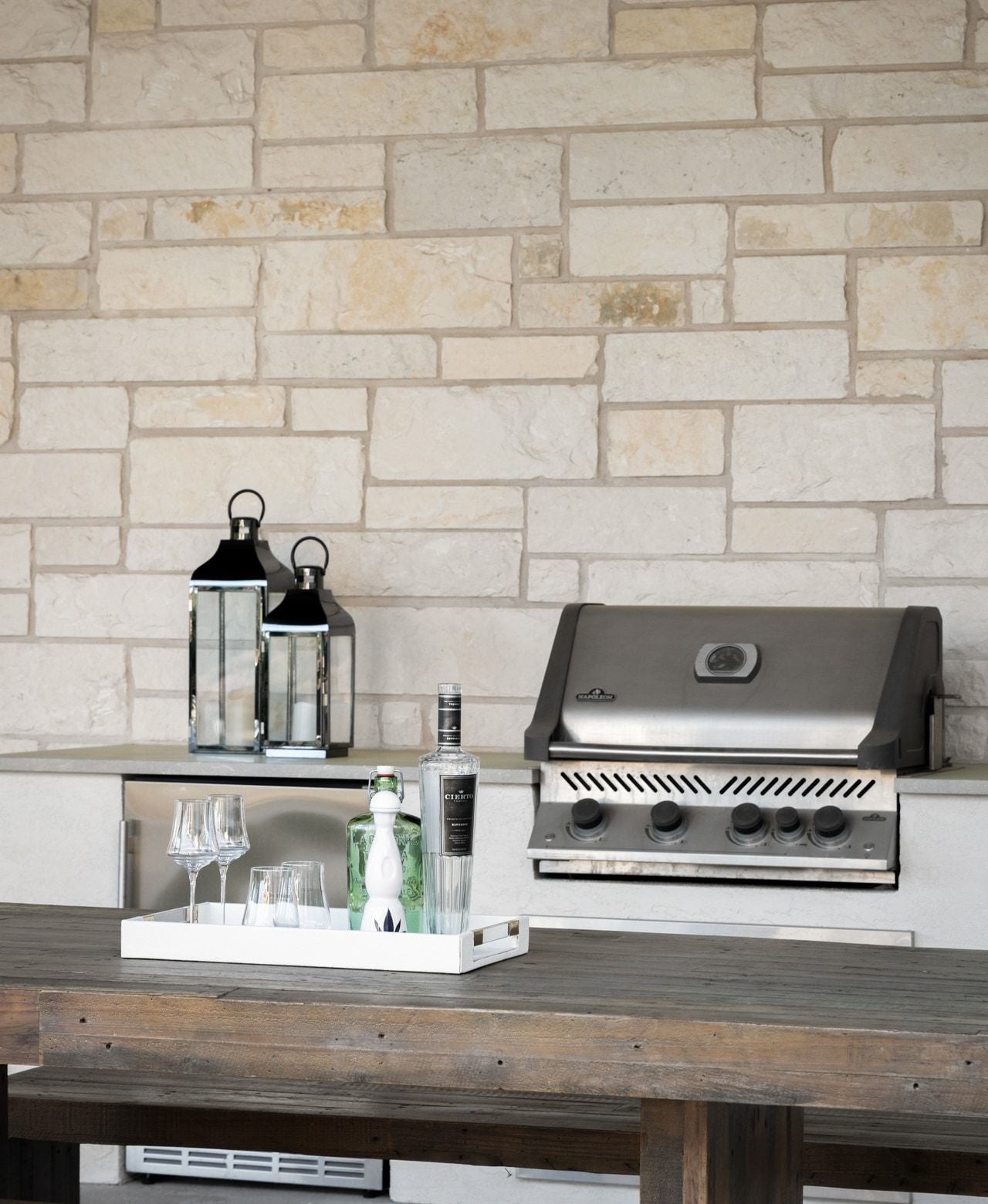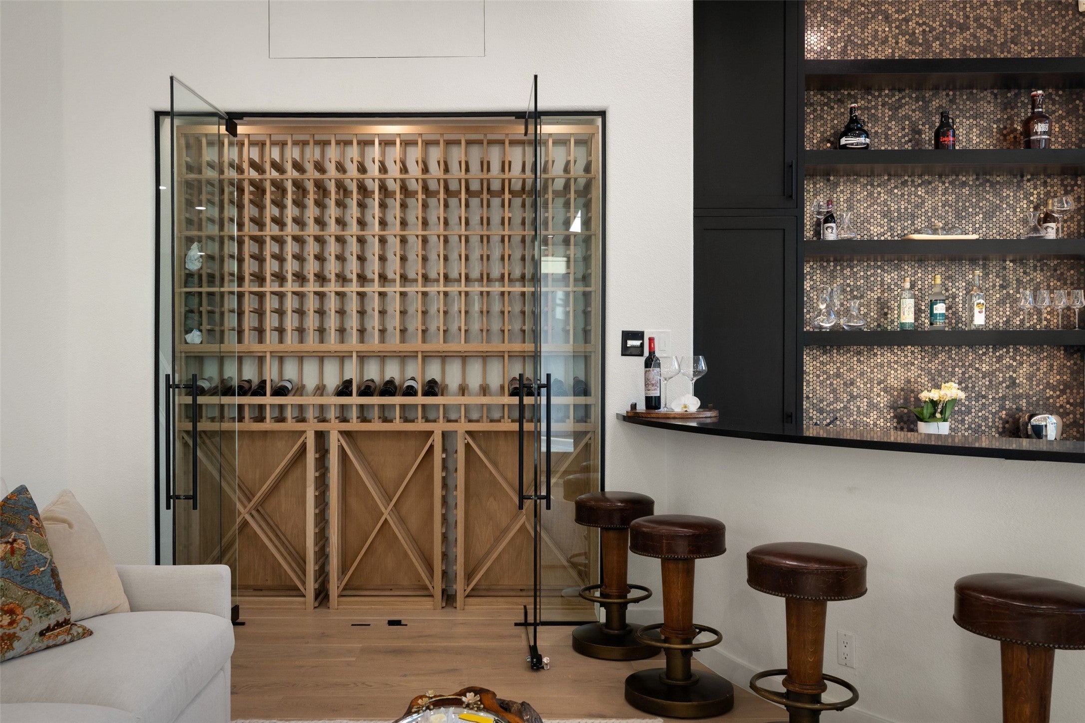 - Built-In Gas Range, Bar Fridge, Built-In Refrigerator, Dishwasher, Disposal, Microwave, Stainless Steel Appliance(s), Wine Refrigerator