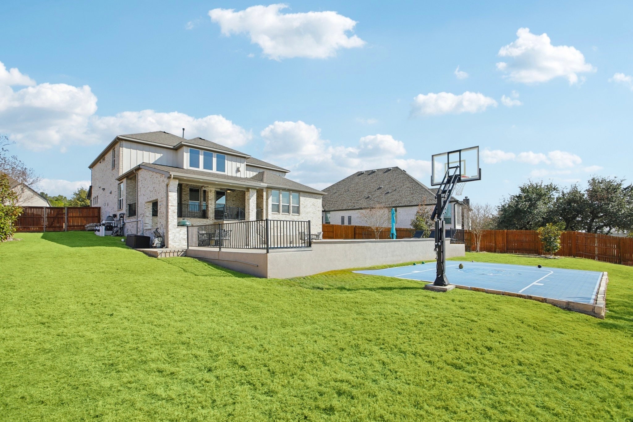 Welcome home to your retreat! Premium corner lot location in the coveted Highpointe community. This immaculate home is an entertainer’s dream. The private backyard oasis features an in-ground pool & spa w/ pebble finish, an extended two-level covered patio, outdoor shower, sport court w/ basketball hoop plus an outdoor kitchen w/ sink and mini fridge. Step inside and you will find an exceptional floor plan w/ attention to detail throughout. The main level boasts an open concept kitchen/living/dining w/ a dedicated office, sitting room, powder bath, and the primary bedroom suite. Chef-inspired kitchen w/ butler’s pantry, built-in oven & microwave, 5 burner gas cooktop & sleek SS vent hood. Expansive center island w/ breakfast bar seating & built-in storage. Light & bright living area w/ tiled fireplace & soaring ceiling accompanied by an elegant chandelier centerpiece. Upstairs is a large media room plus 4 bedrooms & 2 full baths including a Jack & Jill style bath connecting 2 of the bedrooms. Take advantage of the plentiful community amenities including tennis & basketball courts, playground, pool, fitness center, trails & more. Serene Hill Country setting yet convenient to many shopping, dining & entertainment spots including Belterra Village, EVO, HEB, downtown Dripping Springs & downtown Austin. You don’t want to miss out on this one, call to schedule your showing today!