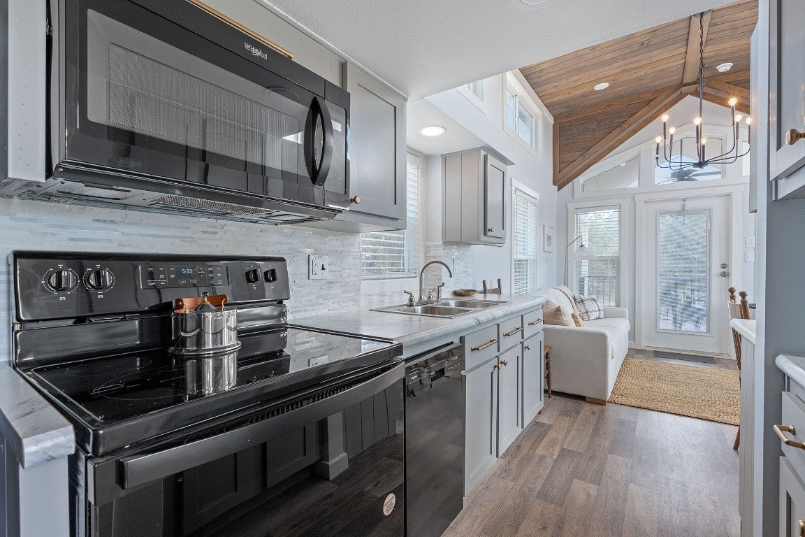 - Dishwasher, Microwave, Refrigerator, Free-Standing Electric Range, Washer/Dryer Stacked