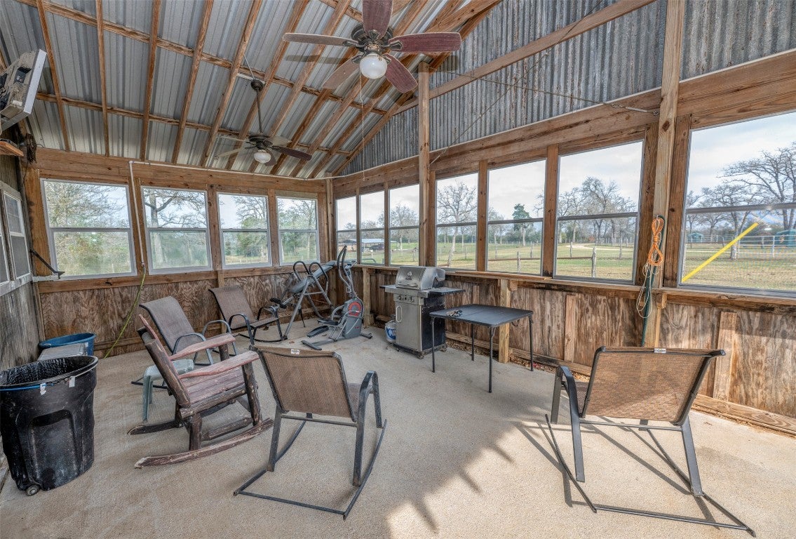 Remarkable equestrian property with 15.69+/- acres with 1/4th acre pond, perimeter and cross-fenced into 6 pastures each with loafing sheds. Nestled among scattered oaks is a warm and inviting three bedroom, two bath home offering 2632 SF with a spacious open floor plan. Remodeled in 2017 featuring a large island kitchen open to the dining and living room with gas log fireplace, generous sized primary bedroom with spacious bath. Attached 2 car garage, 10’x48’ screened-in back porch, fenced backyard with elevated garden area. Community water for the house and water well for barns and front pasture. The 95’x30’ barn built in 2012, features three 12’x30’ implement bays, a large enclosed porch area that leads to a 30’x36’ game room with bathroom, corner kitchen/bar area, pool table, shuffle board, game table and TV. A great space to entertain friends and family that could be expanded into a two-bedroom guest quarters. The showpiece of the property is the 100’x155’ barn built in 2020 that features the following: 60’x100” riding arena three 12’x12’ Priefert horse stalls 10’x20’ tack room, 10’x20’ office/storage, and 10’x20’ hobby room 12’x16’ wash rack 20’x50’ concrete floored workshop 25’x100’ implement storage area that can easily be converted to additional stall space 14’x50’ RV storage by Three 50-amp RV plugs 4-horse walker