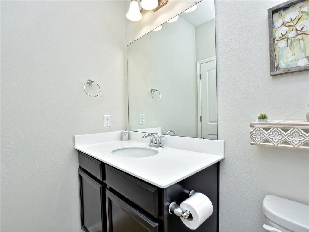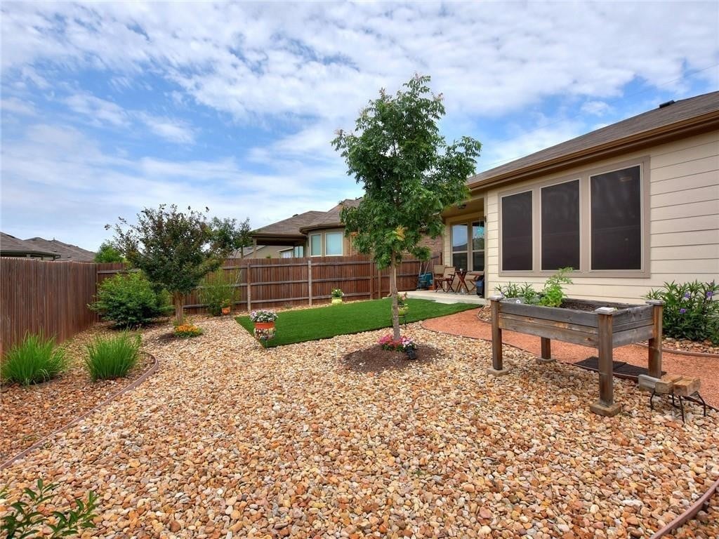 This is a beautiful single story with a great open floor plan. 3 bedrooms, 2 full baths. The kitchen features granite and white tile backsplash with espresso colored cabinetry. Plan is perfect for entertaining as the kitchen is open to the living/dining area. Nice size master suite with a wall of windows. Master bath features raised vanity and double sinks and a large walk in closet. Secondary bedrooms are separated away from the master bedroom for privacy (MIL Plan). Outside features a covered patio and awning for privacy. Backyard is a mix of xeriscaping and astro turf. 2 car garage with opener, sprinkler system and water softener. Great location and convenient to I30, Hwy 79 and minutes to the area schools.
