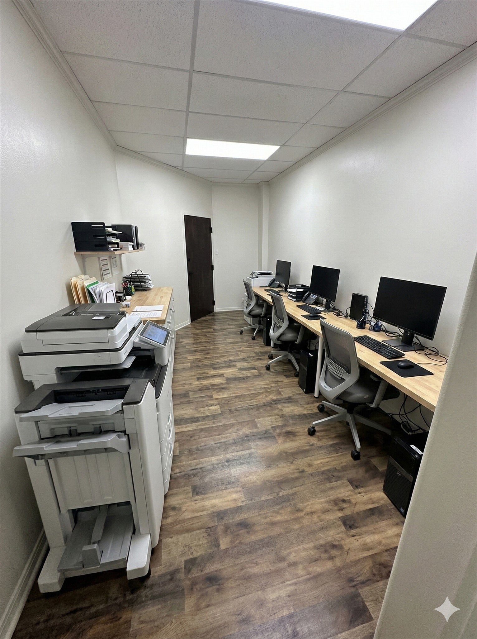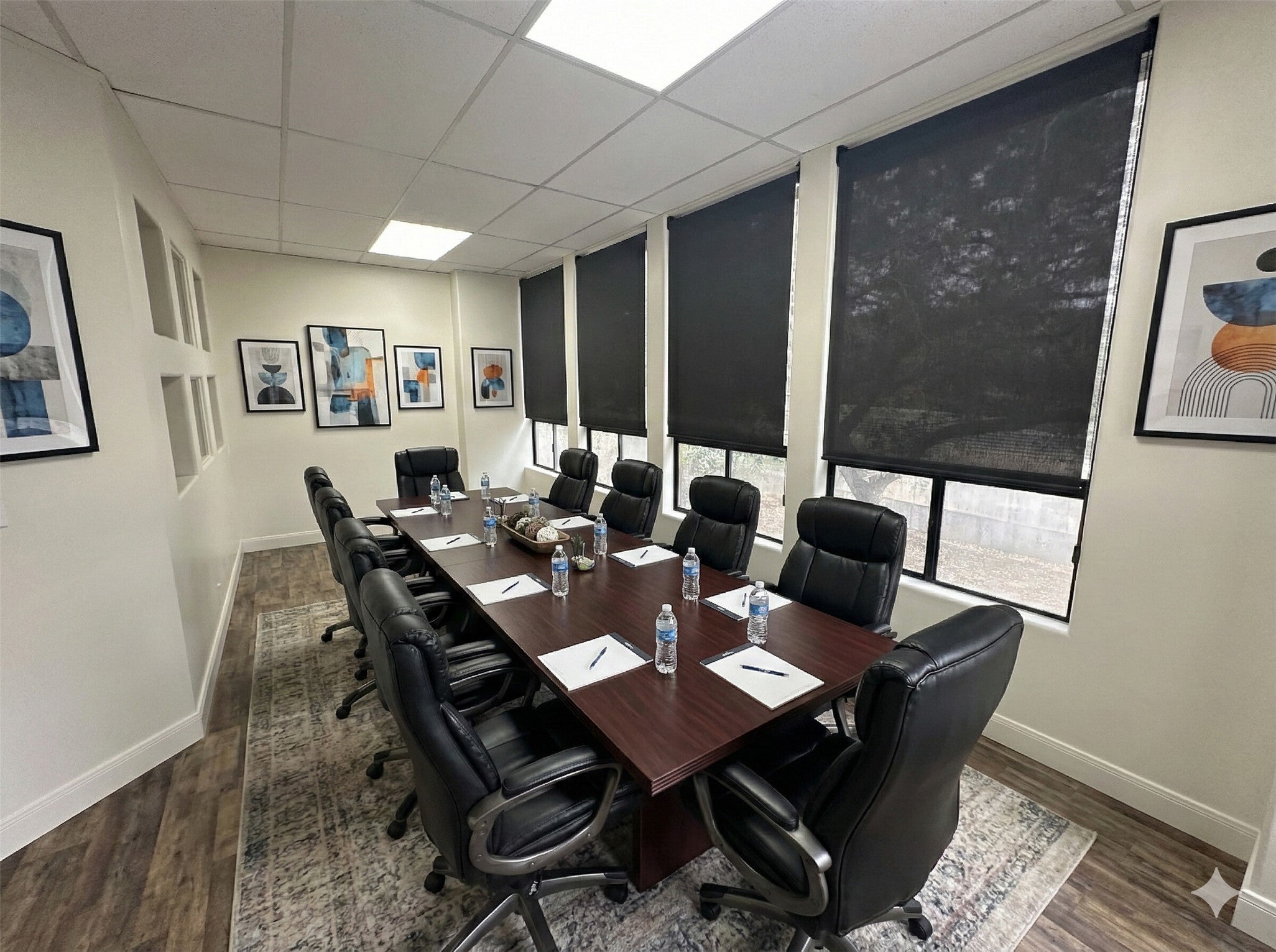 Beautifully designed office suite includes 4 private offices, reception area, conference room, storage closet and kitchenette (mini fridge included upon move in). The newly renovated 1,247 square feet space includes lots of natural light, wood look flooring and new paint. Looking for less space? A portion of the office can be removed – call or text listing agent for details. Briscoe Center is a serene, tree-lined versatile commercial office campus in North Central San Antonio. The property features ample parking, exterior signage and a robust tenant mixture. Our vacant spaces are perfect for a variety of uses including professional offices, medical offices, salons, storage, or creative studio spaces. Select buildings features a passenger elevator, covered parking and storage spaces available for lease. Modified gross full-service leases are negotiable for a 1 to 5 year term and includes electricity, water, trash, common area janitorial and landscaping. Included in rent is CAM $0.50/sq.ft. and NNN is $5.46/sq.ft. Ready for immediate move in. Go to see the office suite today!