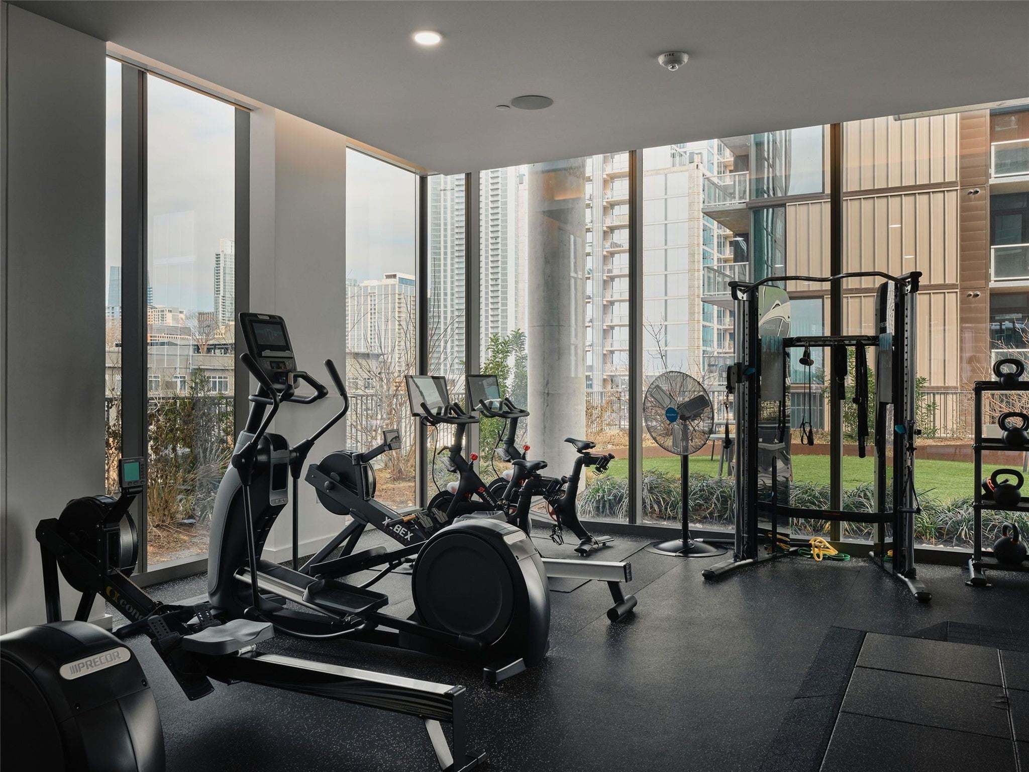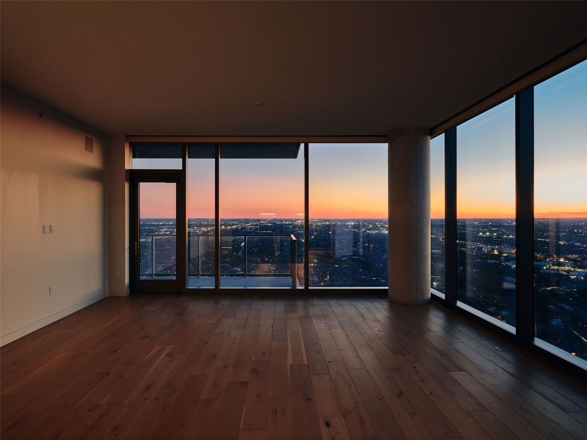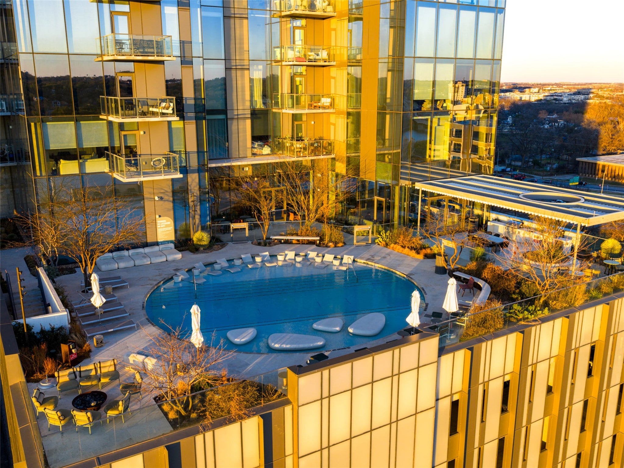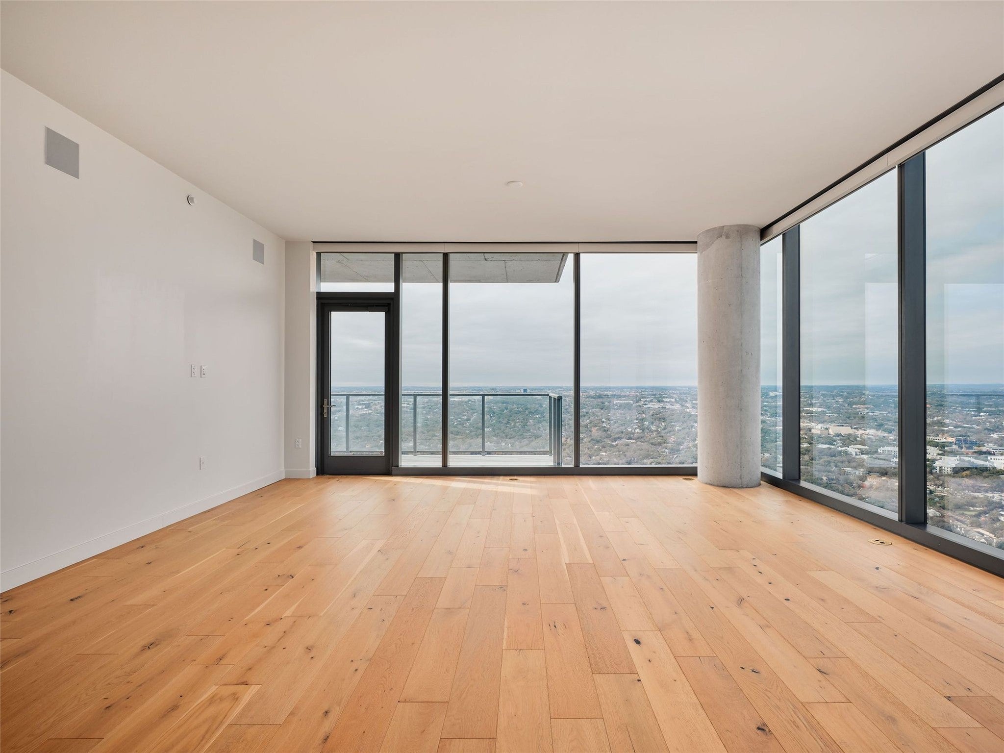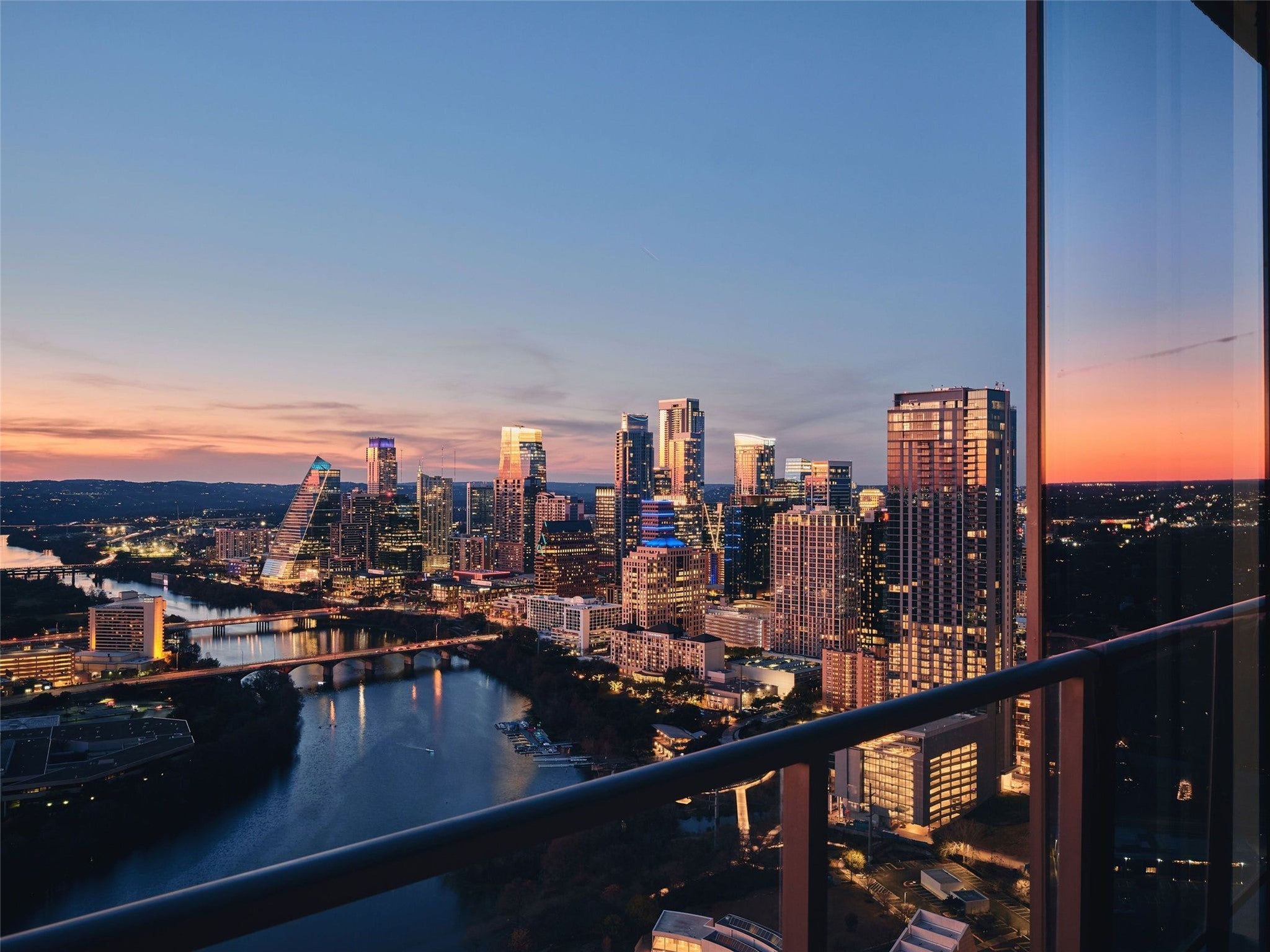 Positioned high above Lady Bird Lake on the 42nd floor of 44 East, The Sky House represents a rare opportunity to experience true waterfront living in the sky. From the moment you enter, the perspective is unmistakable — panoramic views stretch nearly the full length of the lake, creating the sensation of being suspended above the water itself. Spanning over 2,100 square feet, this three-bedroom, three-and-a-half-bath residence was designed to maximize light, openness, and its extraordinary vantage point. White oak hardwood floors run throughout, creating warmth and continuity across the interiors, while floor-to-ceiling glass frames the lake from nearly every primary living space. The kitchen blends precision and restraint, featuring Bosch appliances, modern cabinetry, and an oversized island that anchors the home without competing with the view. Integrated surround sound and electric shades allow the environment to shift effortlessly from day to evening, balancing comfort with control. Two private balconies extend the living experience outdoors, including one positioned off the primary suite. Here, the connection to the water feels constant. The primary bath features a soaking tub, walk-in shower, and an expansive walk-in closet — a level of scale and functionality rarely found in condominium living. Completed in 2022, 44 East represents a newer generation of Austin luxury towers. Residents enjoy full-service concierge, a resort-style cenote pool, fitness and yoga studios, executive lounges, guest suites, and curated spaces for entertaining and working. Just beyond the building, direct access to the Lady Bird Lake hike-and-bike trail — including the newly completed Wishbone Bridge — places Austin’s most coveted outdoor amenity at your doorstep. Elevated above the lake and positioned within one of downtown Austin’s most dynamic neighborhoods, The Sky House offers a perspective and lifestyle that simply cannot be recreated.