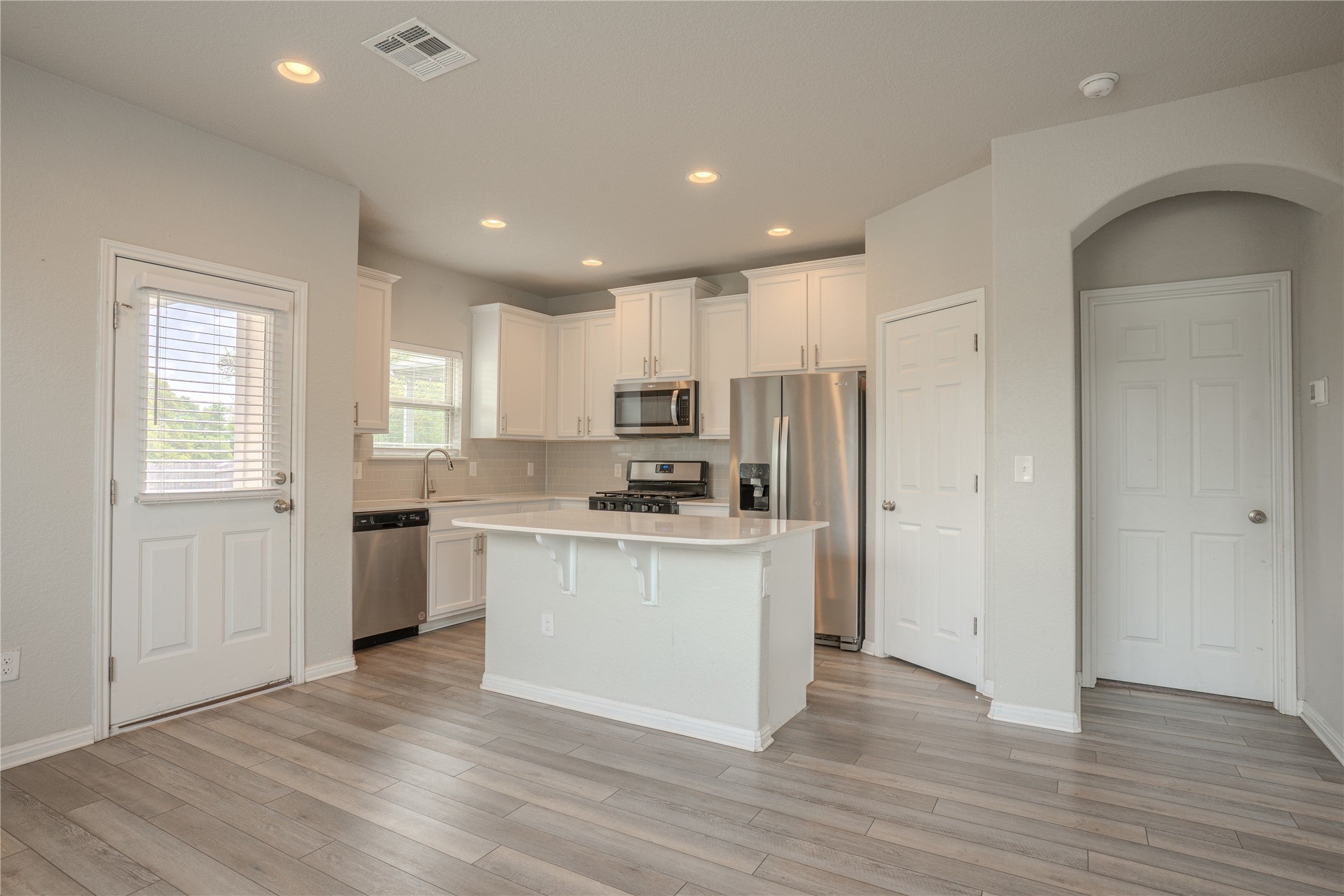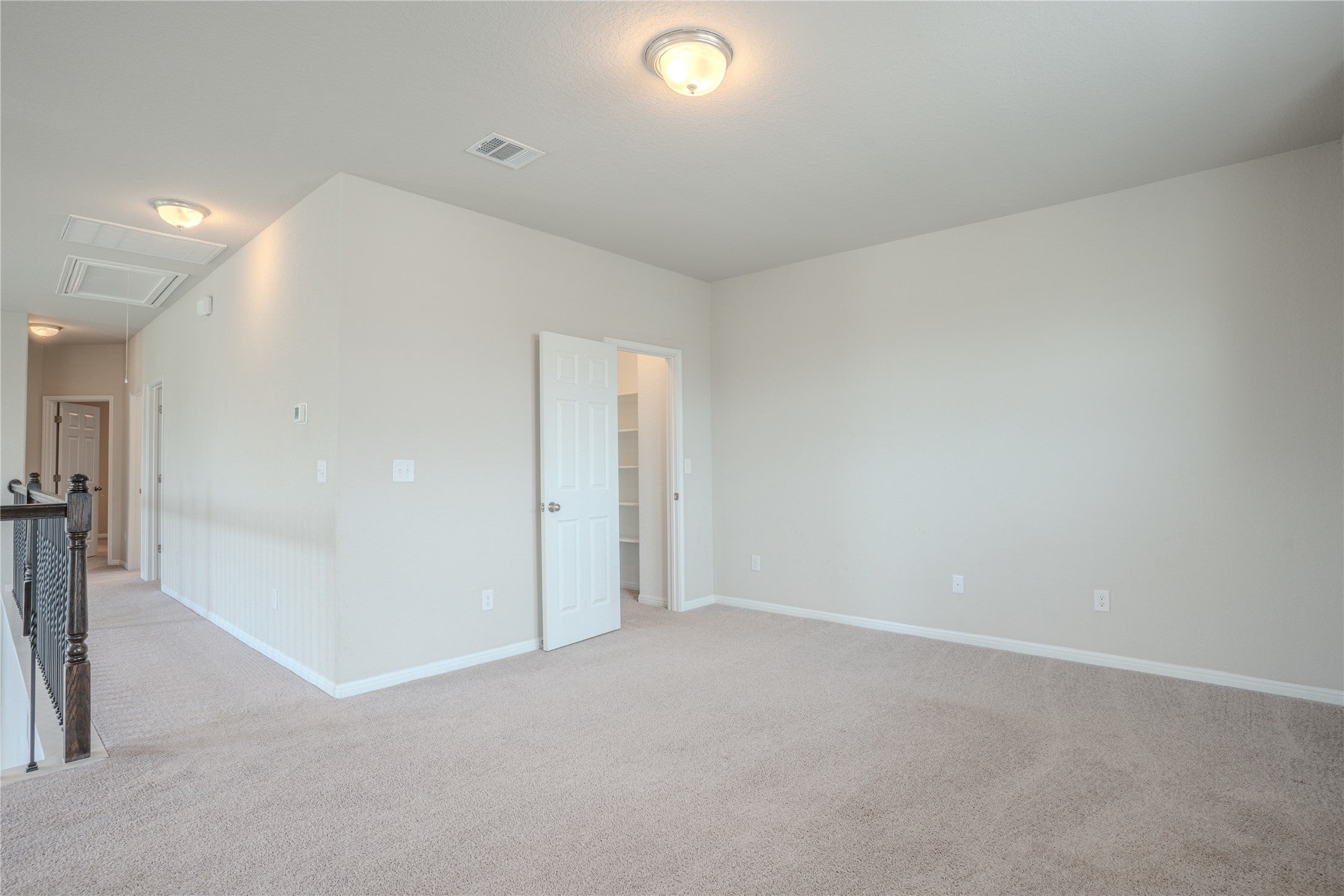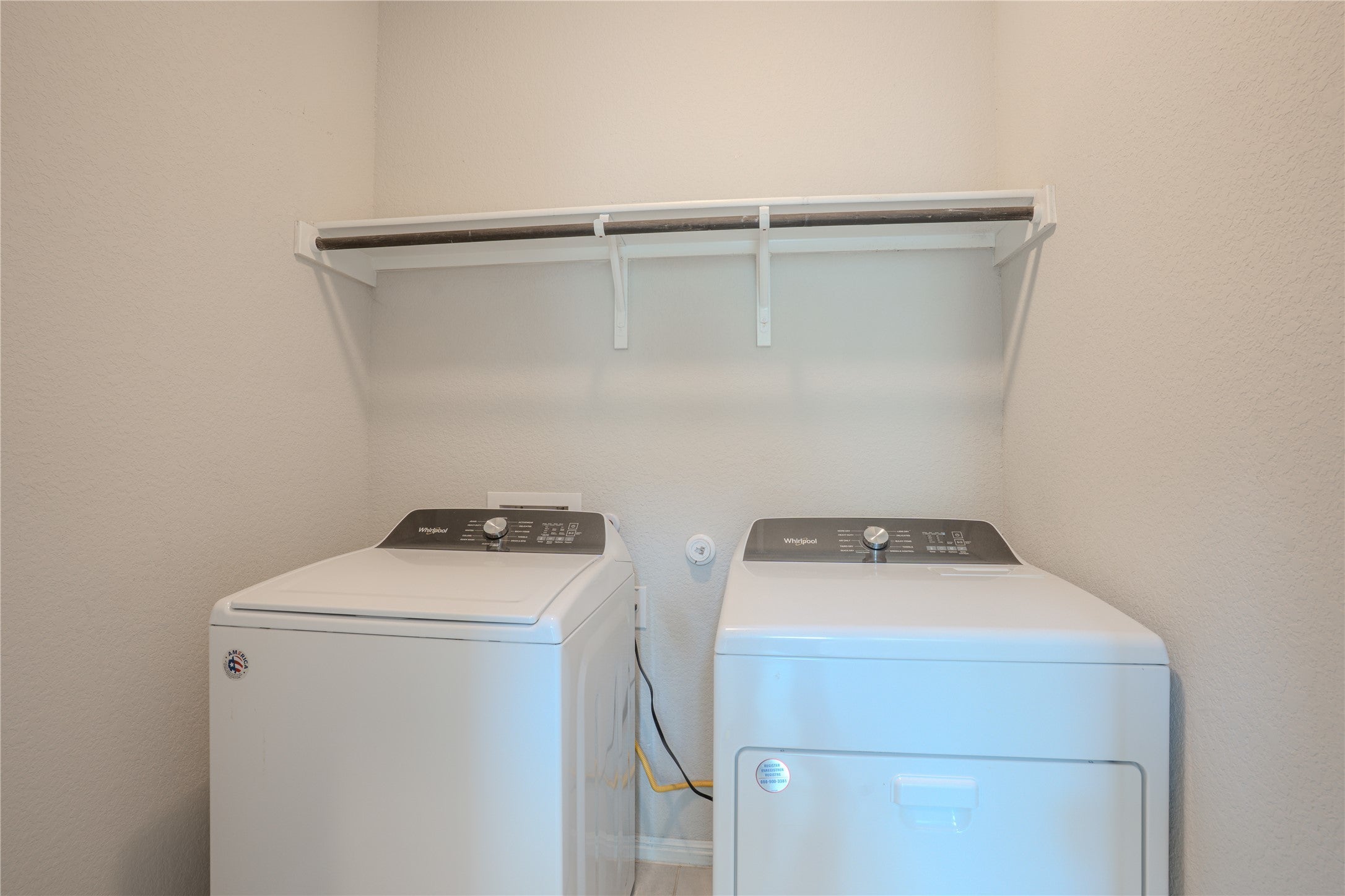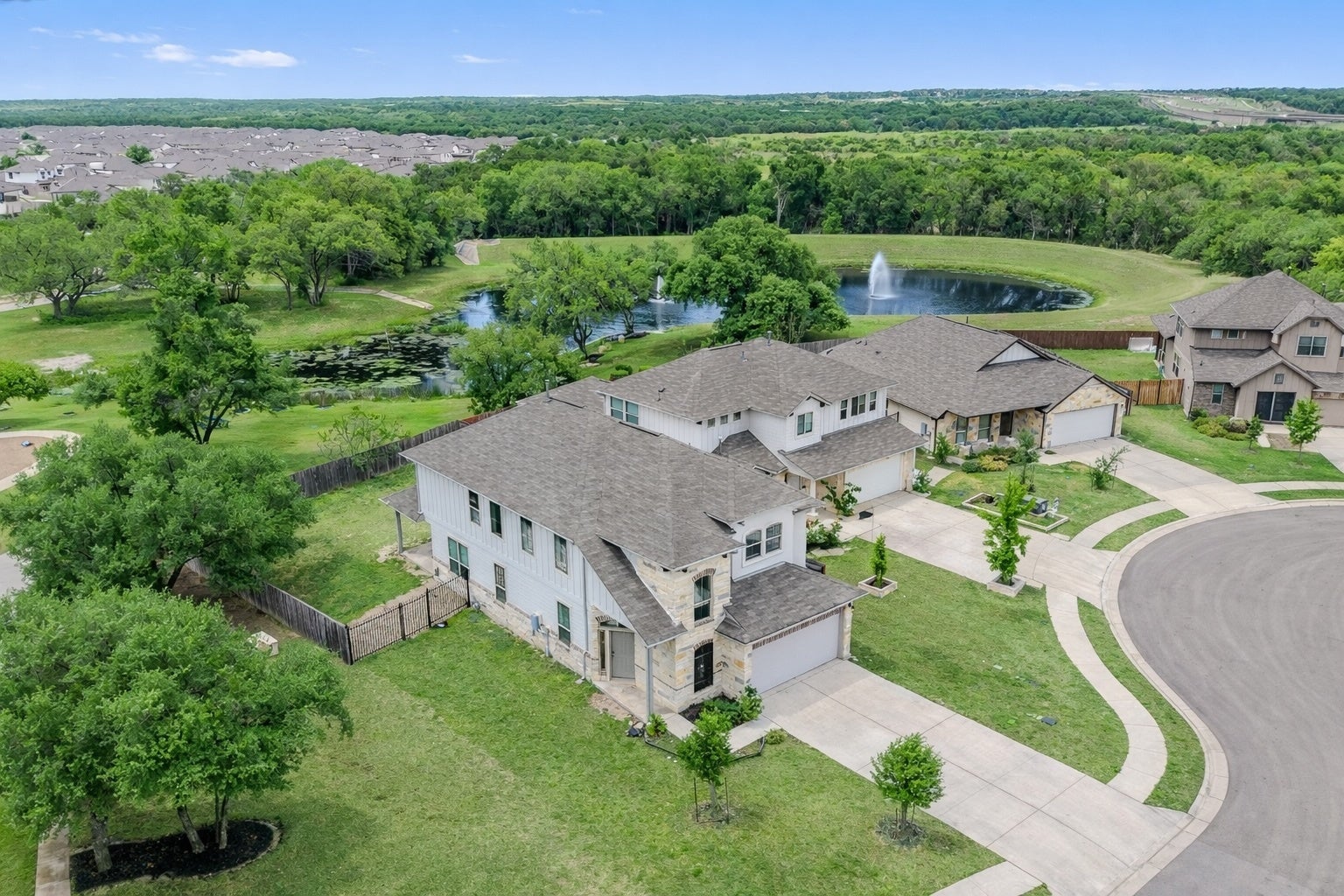 Tucked at the end of a cul-de-sac in booming Leander, this home offers added privacy with no direct neighbor on one side—bordering the community clubhouse with a pool on the other. Inside, soaring ceilings and an open-concept layout create an inviting space for both everyday living and entertaining, with a main-level primary suite featuring a walk-in closet, dual vanities, and a spacious walk-in shower. A versatile upstairs bonus room overlooks the living area below, perfect for a game room, office, or second living space. Enjoy a private, oversized backyard and quick access to 183, with a short drive to Georgetown and downtown Austin.