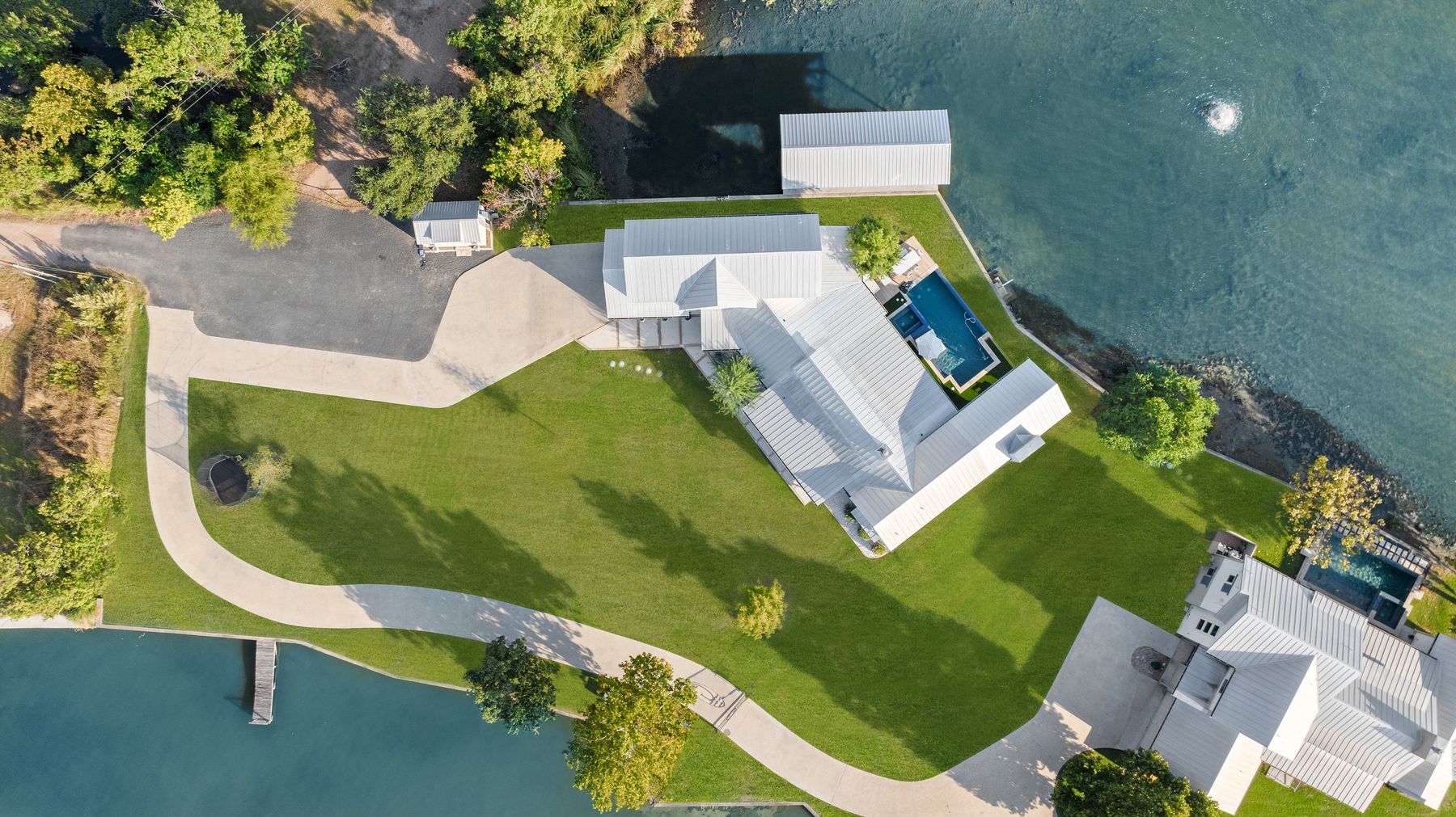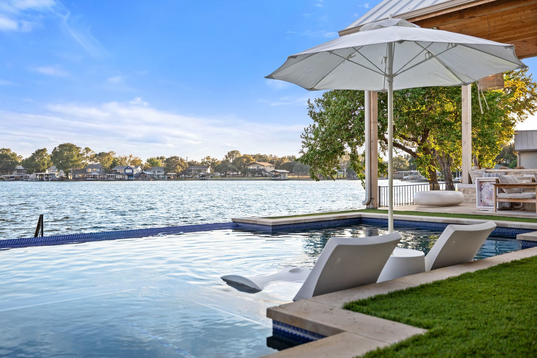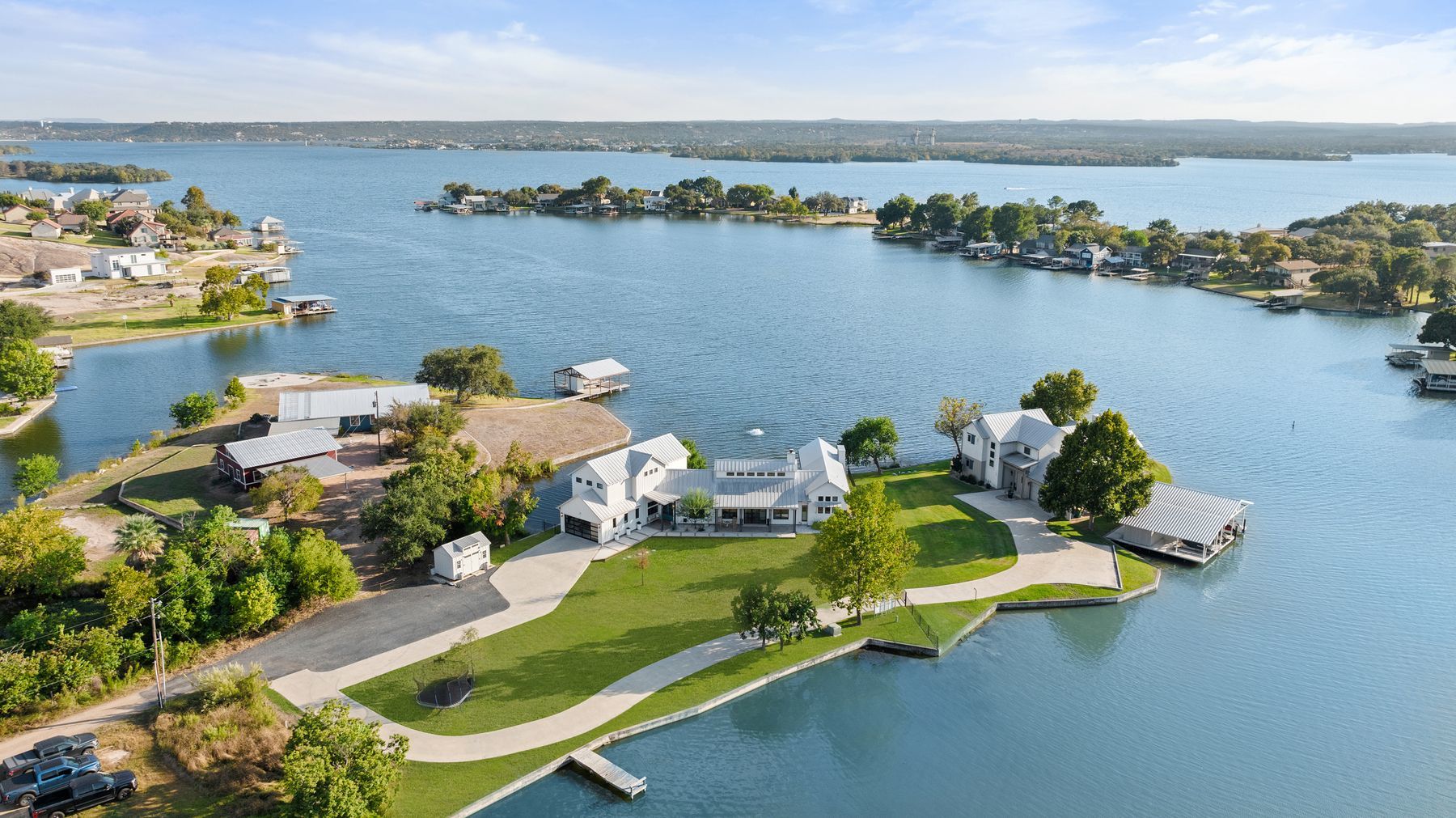 Nestled on a serene 0.60-acre peninsula on Lake LBJ, 703 Woodland Hills is a breathtaking waterfront estate, boasting an extraordinary 332’ of open waterfront enveloping both sides of the property. This meticulously reimagined 3,700 sq ft, 4-bedroom, 4.5-bath modern sanctuary exudes upscale elegance with soaring wood & beamed ceilings, expansive windows, & abundant natural light, framing mesmerizing Lake LBJ views from every angle. The gourmet kitchen, adorned with top-tier finishes, appliances and a spacious island, flows seamlessly into an open-concept living area, perfect for grand gatherings. A versatile bunkroom & upstairs living space offer flexibility, while the converted garage serves as a dedicated fitness haven. Step outside to an unparalleled outdoor oasis, featuring a sparkling pool, rejuvenating spa, state-of-the-art outdoor kitchen, and a cozy cabana with fireplace, all set against the lake’s tranquil beauty. Lake LBJ, is a Texas Hill Country jewel, inviting endless adventure with its constant-level waters, ideal for boating, fishing,kayaking, paddleboarding, & waterskiing. The property’s boathouse & jet ski lifts elevate your waterfront lifestyle, catering to both thrill-seekers and those craving serenity. Just minutes from the many world-class dining, luxurious spas, and championship golf courses inthe area, this home blends sophistication with leisure. Perfect for family retreats or the luxury of full time living on the lake. Life is Short //Buy the Lake House!