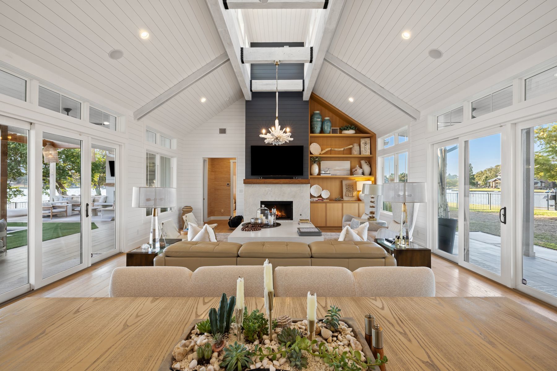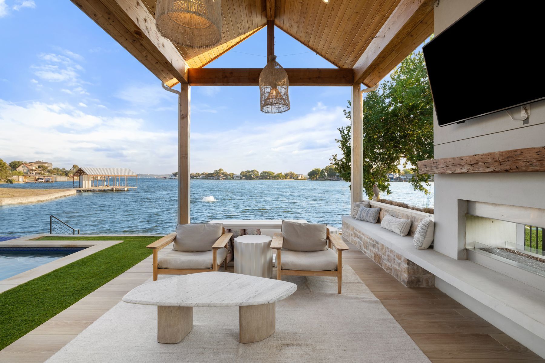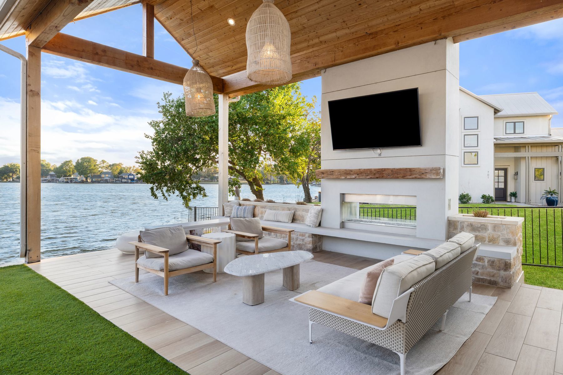 Nestled on a serene 0.60-acre peninsula on Lake LBJ, 703 Woodland Hills is a breathtaking waterfront estate, boasting an extraordinary 332’ of open waterfront enveloping both sides of the property. This meticulously reimagined 3,700 sq ft, 4-bedroom, 4.5-bath modern sanctuary exudes upscale elegance with soaring wood & beamed ceilings, expansive windows, & abundant natural light, framing mesmerizing Lake LBJ views from every angle. The gourmet kitchen, adorned with top-tier finishes, appliances and a spacious island, flows seamlessly into an open-concept living area, perfect for grand gatherings. A versatile bunkroom & upstairs living space offer flexibility, while the converted garage serves as a dedicated fitness haven. Step outside to an unparalleled outdoor oasis, featuring a sparkling pool, rejuvenating spa, state-of-the-art outdoor kitchen, and a cozy cabana with fireplace, all set against the lake’s tranquil beauty. Lake LBJ, is a Texas Hill Country jewel, inviting endless adventure with its constant-level waters, ideal for boating, fishing,kayaking, paddleboarding, & waterskiing. The property’s boathouse & jet ski lifts elevate your waterfront lifestyle, catering to both thrill-seekers and those craving serenity. Just minutes from the many world-class dining, luxurious spas, and championship golf courses inthe area, this home blends sophistication with leisure. Perfect for family retreats or the luxury of full time living on the lake. Life is Short //Buy the Lake House!