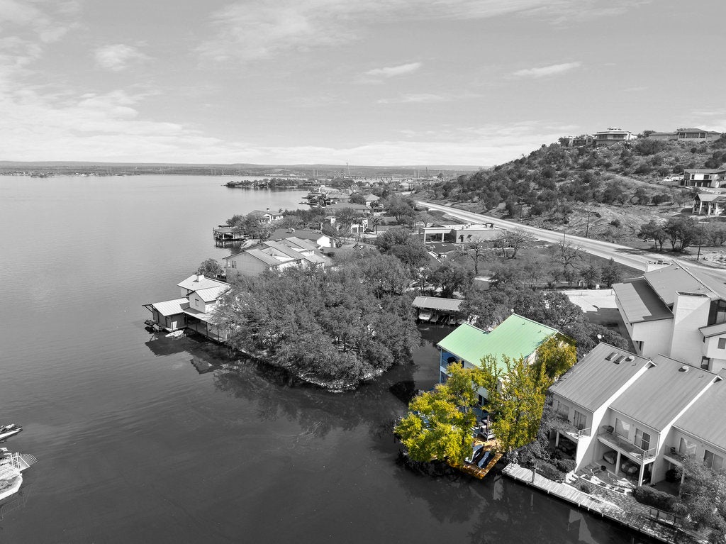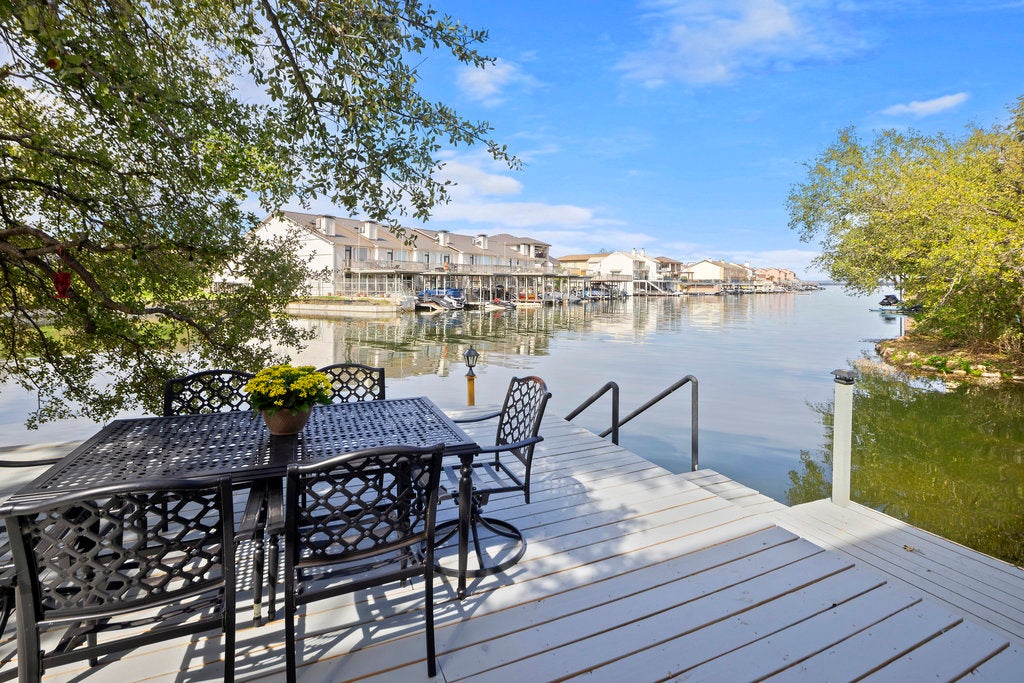 Make this detached waterfront townhome your own special hideaway on Lake LBJ! Lovingly maintained by the family that originally owned the home, it is perfect for gatherings of friends and family. Located on an unusually large cove with open water views, this home is perfect for all your favorite outdoor and water activities. The recently refreshed wooden deck boasts over 900 SF of space for relaxing and entertaining at water's edge. The primary bedroom with ensuite, a half-bath, laundry room, and several generous closets are on the ground floor. The primary bedroom has access to the deck, which can also be approached via the boat dock area. There is an electric dumb-waiter near the garage entrance so that groceries may be easily transported to the kitchen. Level 2 boasts a large living and dining space as well as the kitchen, guest bedroom #1, guest bathroom, and a balcony with plenty of room to sit and enjoy the view. There is also a grill on the balcony. Guest bedrooms #2 and #3 are located privately on the upper level with a Jack & Jill bathroom. This large cove boasts clear water - perfect for all your favorite water activities. The electric cover for the boat was added just last year. The dock area also has 2 private wave-runner ramps. You can sit and fish right on the deck edge in the shade of an enormous oak tree. Nothing could be more relaxing. The home is BEING SOLD FULLY FURNISHED. Boat and wave-runners are negotiable. Townhome group is the Hidden Cove at Horseshoe Creek. *This property is zoned AE by FEMA because it is waterfront. It has never flooded - even during the historic October 2018 floods.