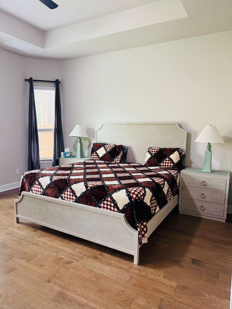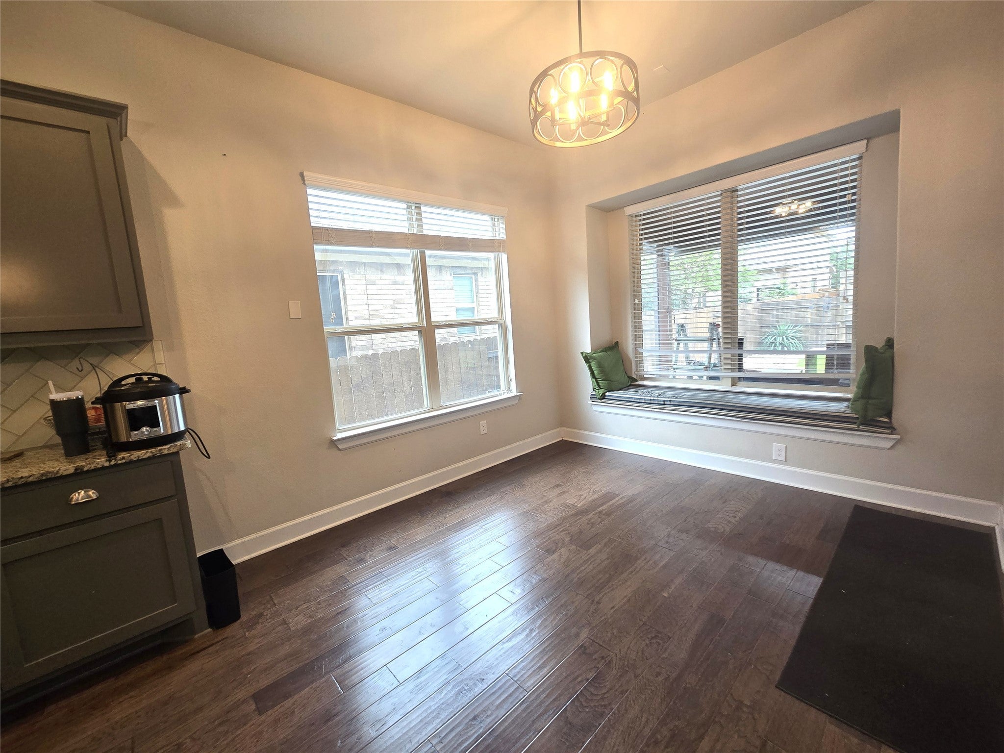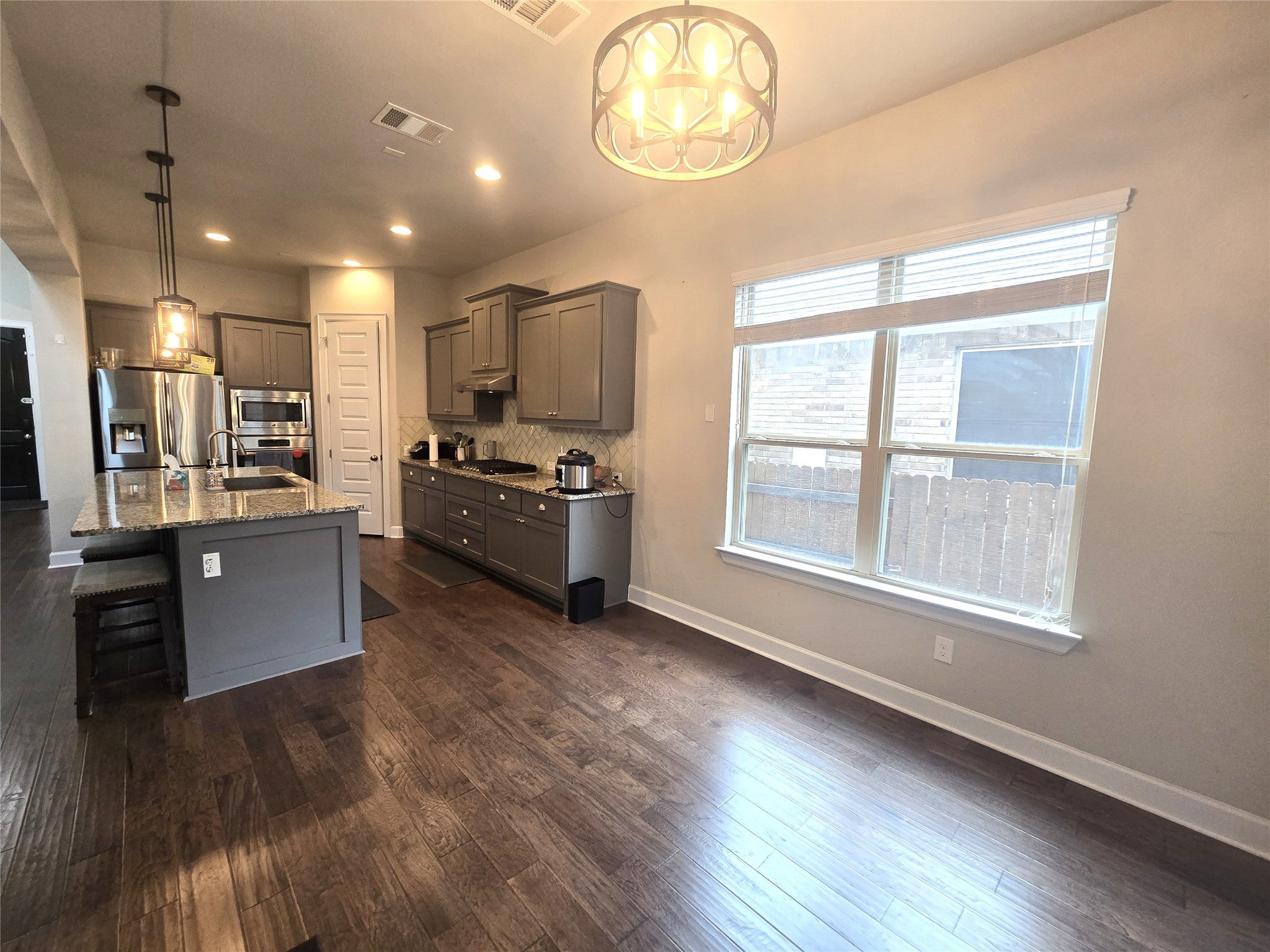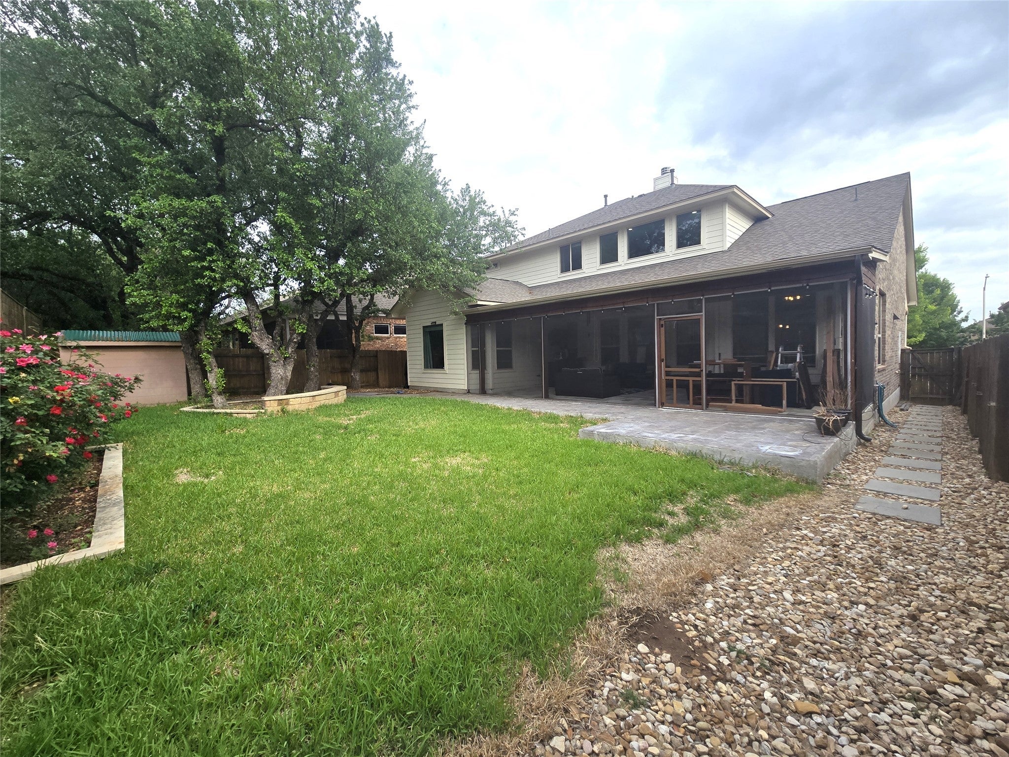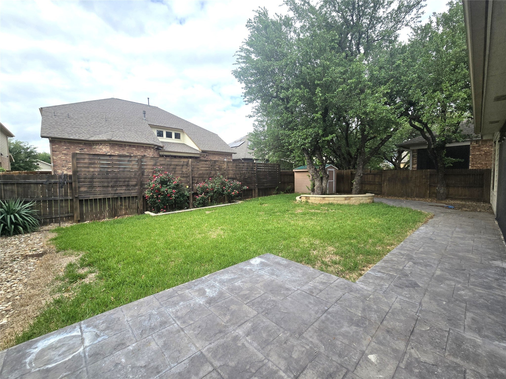 Beautiful 2-story home available for lease in the highly desirable Parkside at Mayfield Ranch community, located on a quiet street and zoned to exemplary Leander ISD schools. This well-maintained home offers 4 spacious bedrooms, 3 full bathrooms, and a powder room, along with a private study (with closet), a formal dining room featuring elegant wooden beams, and an oversized game room—perfect for family living and entertaining. The open-concept kitchen is a standout, featuring granite countertops, a gas cooktop, stainless steel appliances, a large single-bowl sink, pull-out drawers, and built-in trash and recycling bins. The oversized primary suite includes a luxurious bathroom and a huge walk-in closet with ample shelving for organized storage. Enjoy outdoor living on the extended covered patio with lighting and sun shades, overlooking a beautifully landscaped backyard with flowering trees and a storage shed. Additional highlights include wood flooring, a cozy gas fireplace, water softener, reverse osmosis drinking water system, designer Moen fixtures, and abundant storage throughout—including overhead garage storage and built-in shelving. The home also features a 2-car attached garage plus additional driveway parking. Parkside Elementary is within walking distance, and residents enjoy access to top-tier community amenities such as pools, parks, playgrounds, and scenic walking and biking trails. A direct biking trail leads to Williamson County Park, offering jogging paths and sports fields. This is a perfect home for families seeking comfort, space, and an active lifestyle in a premier community.