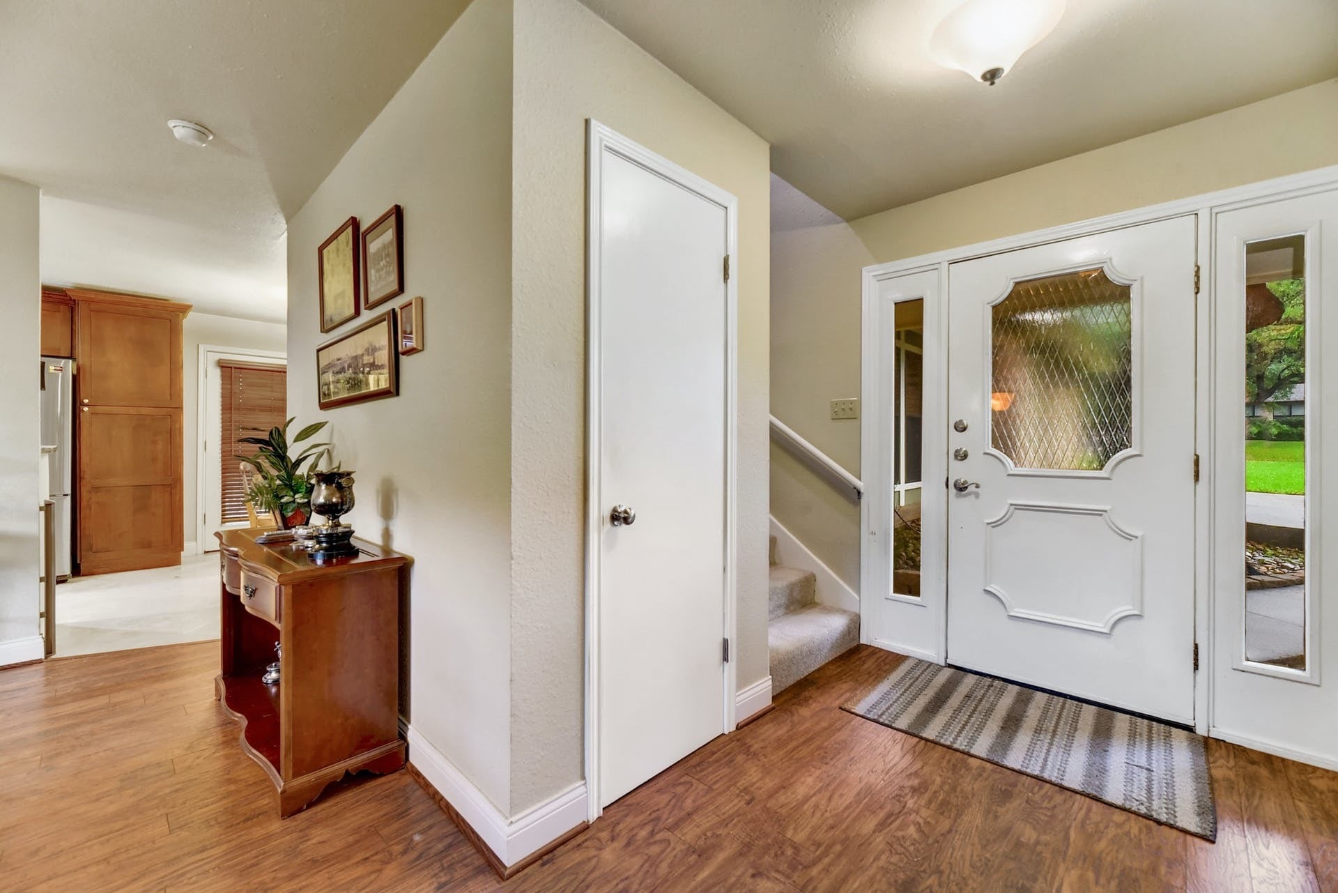 Fully Furnished Short Term 2-6 month rental home available in Shady Hollow. This home is located on one third of an acre that backs to a wet weather creek, has three gigantic live oak trees over 150 years old and several other large trees creating a private backyard oasis (you hear that a lot but look at the pictures!). With a 400 square foot partially covered deck, a 240 sq. ft. covered balcony and a 200 square foot flagstone patio the outdoor entertaining options are tremendous. The home itself has an open plan with the living, dining, kitchen and breakfast area all connected and open to each other. The living area has built in shelves and a 75" TV. Kitchen is very well equipped (but if you have any gourmet skills, you might need some specialty items). The large office downstairs has a desk as well as a 10' counter/workspace. Laundry room and a half bath are downstairs. All three bedrooms are upstairs with the primary bedroom and a guest room having queen beds and the third bedroom furnished with stackable twin beds. The primary bedroom and kids room open to the upstairs balcony overlooking the back yard. The primary bedroom has a 55" TV as well. The primary bath has two walk-in closets, double vanity, plenty of cabinets and a walk-in shower. Secondary bedrooms also have walk-in closets. The kitchen is well equipped and all linens are provided. Consumables (paper towels, TP, salt, pepper, etc.) are provided for a few days to help you settle in. Move in 5/16. Utilities and lawn service additional $600 and optional maid $100monthly for this Beautiful South Austin Home.