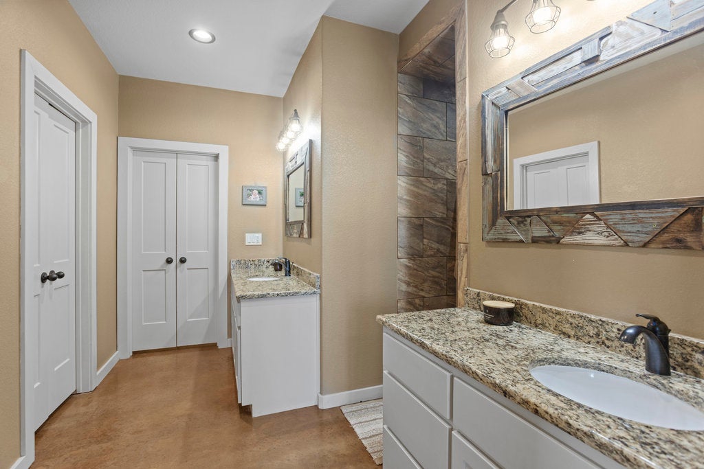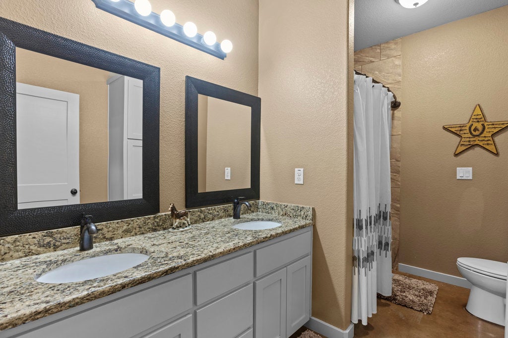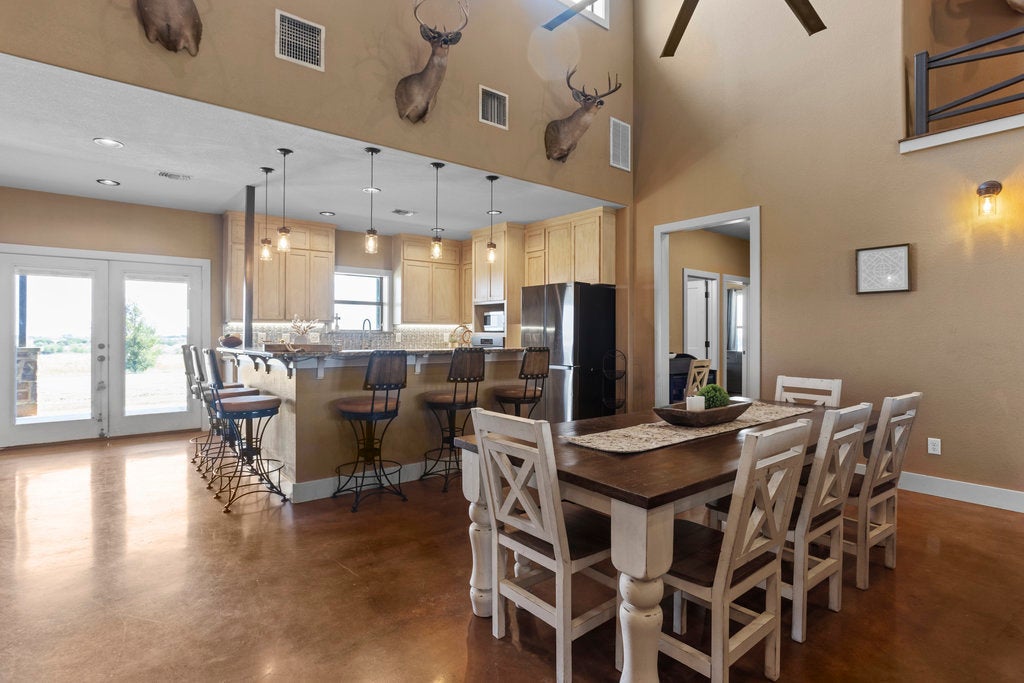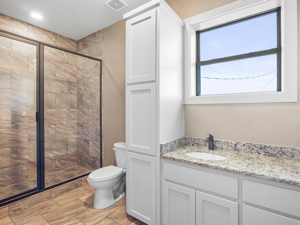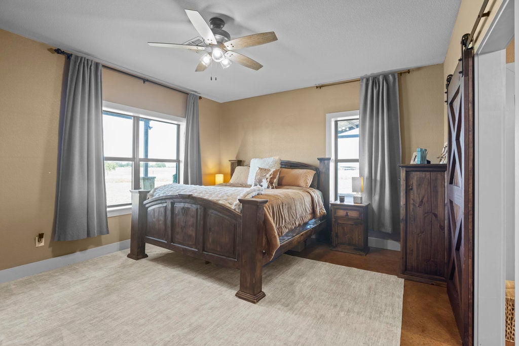 This stunning 5-bedroom, 4.5-bathroom home offers an open-concept floor plan that seamlessly connects the kitchen, dining, and living areas. Highlights include soaring cathedral ceilings, an expansive walk-in shower, open loft spaces, a built-in safe room, and beautiful ponderosa pine flooring upstairs. Ample storage is available throughout with multiple large closets and additional attic decking. Enjoy the outdoors from the spacious wraparound covered porch, or take advantage of the 21+/- acres perfectly suited for livestock and horses. The well-designed livestock barn is spray-foam insulated and features hot water, a built-in sink with cabinetry, and convenient roll-up doors. With 25x30 and 40x15 rooms make it ideal for ag projects of all kinds. The front of the property is cross-fenced with loafing sheds, making it an excellent setup for horses.